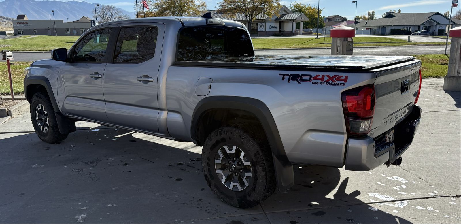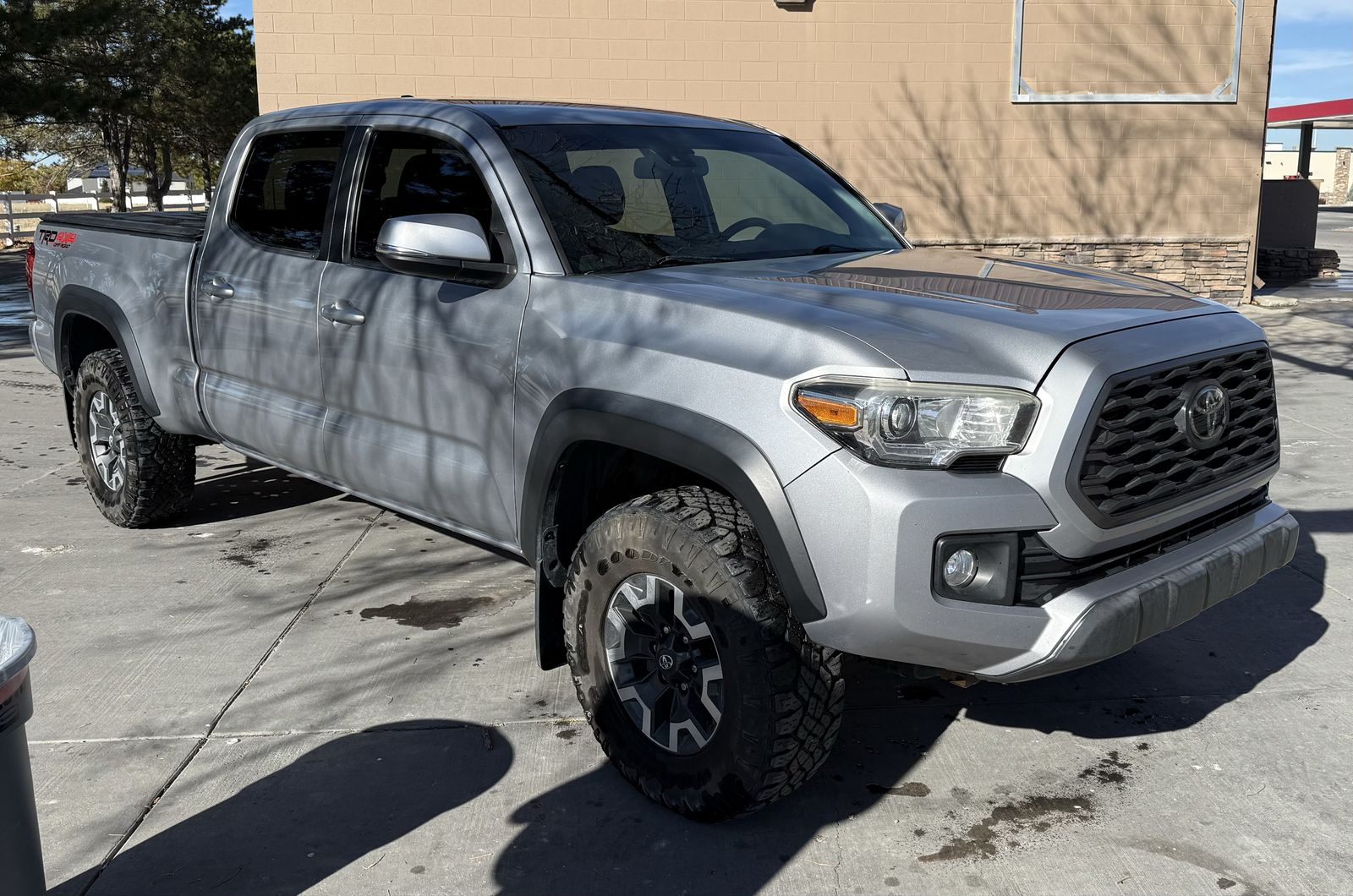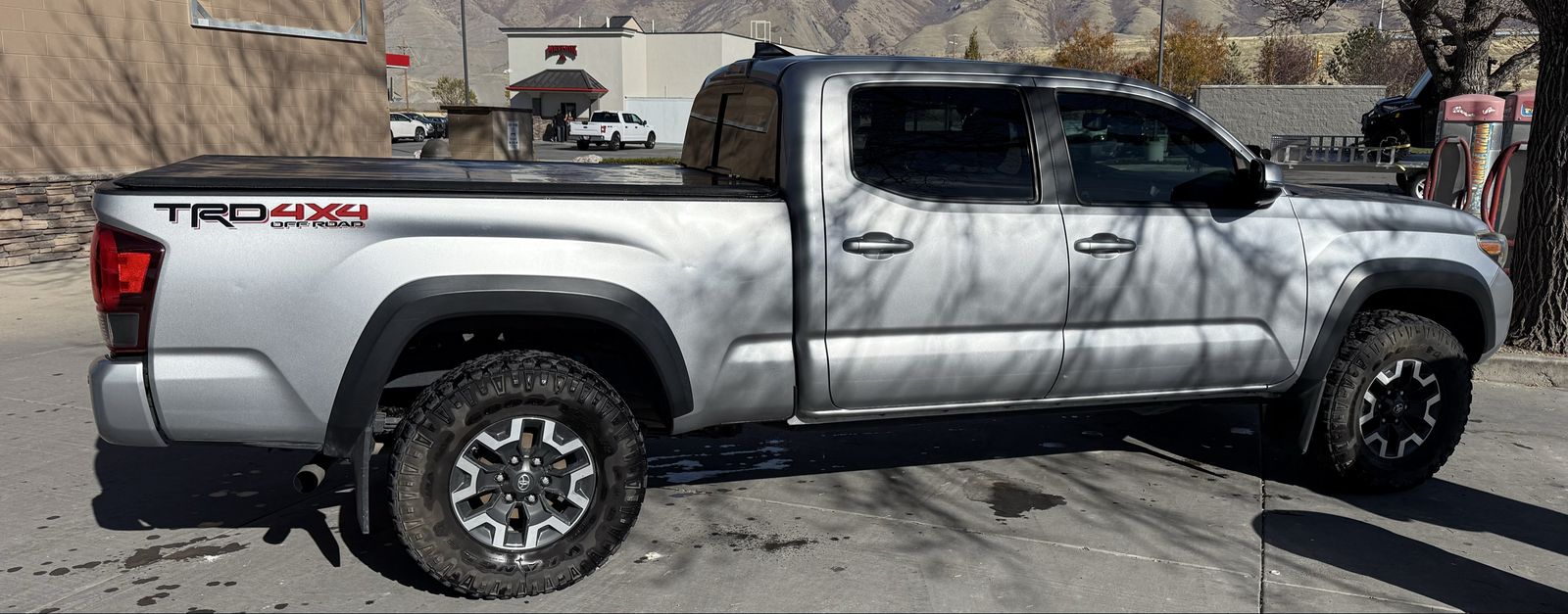 It has a leveling kit and tonneau cover.