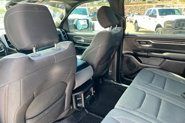 BLIND SPOT & CROSS PATH DETECTION -inc: LED Taillamps,QUICK ORDER PACKAGE 27Z BIG HORN -inc: Engine: 5.7L V8 HEMI MDS VVT eTorque Transmission: 8-Speed Automatic (8HP75) Big Horn Badge,PARKSENSE FRONT/REAR PARK ASSIST W/STOP,WHEELS: 18 X 8 CAST-ALUMINUM PAINTED (STD),9 AMPLIFIED SPEAKERS W/SUBWOOFER,MANUFACTURER'S STATEMENT OF ORIGIN,ENGINE: 5.7L V8 HEMI MDS VVT ETORQUE (STD),RADIO: UCONNECT 5 NAV W/12.0 DISPLAY -inc: Google Android Auto SiriusXM Radio Service USB Host Flip HD Radio For More Info Call 800-643-2112 Connectivity - US/Canada GPS Navigation 4G LTE Wi-Fi Hot Spot SiriusXM w/360L All Radio Equipped Vehicles Connected Travel & Traffic Services All R1 High Radios Apple CarPlay,DIESEL GRAY/BLACK CLOTH BENCH SEAT,115V AUXILIARY POWER OUTLET,TRANSMISSION: 8-SPEED AUTOMATIC (8HP75) (STD),MOPAR FRONT & REAR RUBBER FLOOR MATS,REMOTE START SYSTEM,TIRES: 275/65R18 BSW ALL SEASON LRR (STD),BIG HORN LEVEL B EQUIPMENT GROUP -inc: Rear Window Defroster ParkSense Front/Rear Park Assist w/Stop Rear View Auto Dim Mirror Power Adjustable Pedals Rear Power Sliding Window Rear Dome w/On/Off Switch Lamp Front Fog Lamps Glove Box Lamp Media Hub w/2 Charge Only USBs Power 8-Way Driver Seat Auto Dim Exterior Driver Mirror Heated Front Seats Heated Steering Wheel Class IV Receiver Hitch Security Alarm Black Premium Power Mirrors Big Horn IP Badge Remote Start System SiriusXM Satellite Radio 400W Inverter 9 Amplified Speakers w/Subwoofer Radio: Uconnect 5 Nav w/12.0 Display Google Android Auto SiriusXM Radio Service USB Host Flip HD Radio For More Info Call 800-643-2112 Connectivity - US/Canada GPS Navigation 4G LTE Wi-Fi Hot Spot SiriusXM w/360L All Radio Equipped Vehicles Connected Travel & Traffic Services All R1 High Radios Apple CarPlay Exterior Mirrors w/Supplemental Signals Exterior Mirrors Courtesy Lamps Air Conditioning ATC w/Dual Zone C,TRAILER BRAKE CONTROL,3.21 REAR AXLE RATIO (STD),FRONT LICENSE PLATE BRACKET,ANTI-SPIN DIFFERENTIAL REAR AXLE,PATRIOT BLUE PEARLCOAT,Four Wheel Drive,Tow Hitch,Power Steering,ABS,4-Wheel Disc Brakes,Brake Assist,Lithium Ion Traction Battery,Aluminum Wheels,Conventional Spare Tire,Power Mirror(s),Heated Mirrors,Privacy Glass,Intermittent Wipers,Variable Speed Intermittent Wipers,Power Door Locks,Daytime Running Lights,Automatic Headlights,AM/FM Stereo,Bluetooth Connection,MP3 Capability,Steering Wheel Audio Controls,Auxiliary Audio Input,Adjustable Steering Wheel,Trip Computer,Power Windows,Pass-Through Rear Seat,Rear Bench Seat,Leather Steering Wheel,Keyless Start,Keyless Entry,Power Door Locks,Cruise Control,A/C,Cloth Seats,Split Bench Seat,Passenger Vanity Mirror,Floor Mats,Bluetooth Connection,Power Windows,Power Door Locks,Trip Computer,Immobilizer,Traction Control,Stability Control,Traction Control,Front Side Air Bag,Telematics,Requires Subscription,Tire Pressure Monitor,Driver Air Bag,Passenger Air Bag,Front Head Air Bag,Rear Head Air Bag,Passenger Air Bag Sensor,Child Safety Locks,Back-Up Camera