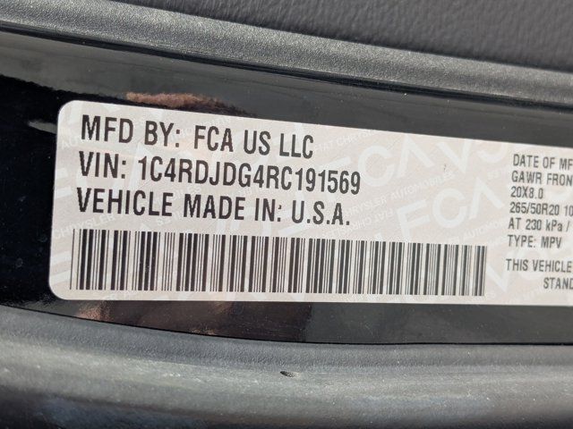 ENGINE: 3.6L V6 24V VVT UPG I W/ESS (STD),TRANSMISSION: 8-SPEED AUTOMATIC (850RE) (STD),TIRES: 265/50R20 BSW AS LRR (STD),DB BLACK CLEARCOAT,QUICK ORDER PACKAGE 2BG GT PLUS -inc: Engine: 3.6L V6 24V VVT UPG I w/ESS Transmission: 8-Speed Automatic (850RE) 7 & 4 Pin Wiring Harness For Details Visit DriveUconnect.com Integrated Roof Rail Crossbars Power Driver/Passenger 4-Way Lumbar Adjust Dual Remote USB Port - Charge Only Class IV Receiver Hitch Floor Console w/Leather Armrest Power 6x9 Multi-Function Foldaway Mirrors Power Tilt & Telescopic Steering Column Disassociated Touchscreen Display Power 8-Way Driver Memory 8-Way Passenger Seats Ventilated Front Seats SiriusXM Guardian - Included Trial (B) Full Speed Forward Collision Warning Plus 115V Auxiliary Power Outlet Adaptive Cruise Control w/Stop Rear Load Leveling Suspension GPS Navigation 4G LTE Wi-Fi Hot Spot LED Auxiliary Low Beam & Turn Signal Power Sunroof Auto Dim Exterior Driver Mirror SiriusXM w/360L Trailer Brake Control Global Telematics Box Module (subscription required) (TBM) Connected Travel & Traffic Services Heated,WHEELS: 20 X 8.0 FINE SILVER (STD),FRONT LICENSE PLATE BRACKET,BLACK LEATHER TRIMMED BUCKET SEATS,All Wheel Drive,Power Steering,ABS,4-Wheel Disc Brakes,Brake Assist,Aluminum Wheels,Tires - Front Performance,Tires - Rear Performance,Temporary Spare Tire,Heated Mirrors,Rear Defrost,Privacy Glass,Intermittent Wipers,Variable Speed Intermittent Wipers,Rear Spoiler,Remote Trunk Release,Power Liftgate,Power Door Locks,Daytime Running Lights,Automatic Headlights,LED Headlights,AM/FM Stereo,Navigation System,Satellite Radio,MP3 Capability,Auxiliary Audio Input,HD Radio,Smart Device Integration,Requires Subscription,Steering Wheel Audio Controls,Auxiliary Audio Input,Satellite Radio,Requires Subscription,Bluetooth Connection,Bluetooth Connection,Heated Front Seat(s),Pass-Through Rear Seat,Rear Bench Seat,Trip Computer,Power Windows,3rd Row Seat,Leather Steering Wheel,Heated Steering Wheel,Keyless Entry,Power Door Locks,Keyless Start,Keyless Entry,Power Door Locks,Universal Garage Door Opener,Cruise Control,Climate Control,Multi-Zone A/C,A/C,A/C,Rear A/C,Auto-Dimming Rearview Mirror,Driver Vanity Mirror,Passenger Vanity Mirror,Floor Mats,Remote Engine Start,Keyless Start,Remote Engine Start,Smart Device Integration,Requires Subscription,Smart Device Integration,Smart Device Integration,MP3 Capability,Smart Device Integration,Power Windows,Power Door Locks,Trip Computer,Immobilizer,Traction Control,Stability Control,Traction Control,Front Side Air Bag,Cross-Traffic Alert,Rear Parking Aid,Tire Pressure Monitor,Driver Air Bag,Passenger Air Bag,Front Head Air Bag,Rear Head Air Bag,Passenger Air Bag Sensor,Knee Air Bag,Child Safety Locks,Back-Up Camera