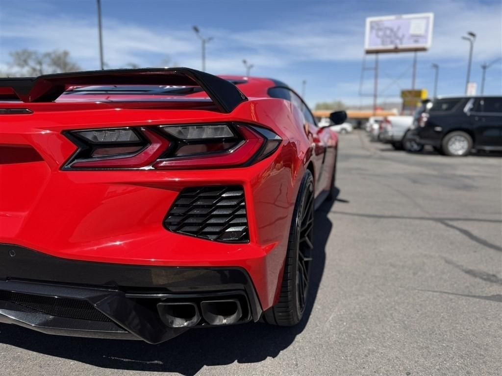 Engine- 6.2L V8 DI- high-output Variable Valve Timing (VVT)- Active Fuel Management (AFM) (490 hp [365.4 kW] @ 6450 rpm- 465 lb-ft of torque [627.8 N-m] @ 5150 rpm),Rear wheel drive,Frame- aluminum structure,Suspension- Corvette standard,Steering- power- electric speed-sensitive- rack-and-pinion- variable ratio,Brakes- 4-wheel antilock- 4-wheel disc 12.6"" (321 mm) front and 13.3"" (339 mm) rear brake rotors,Calipers- Black-painted,Exhaust- aluminized stainless-steel with stainless-steel tips,Carbon Flash Exterior Badge Package,Exterior accents- Carbon Flash- side vents and front/rear grille accents,Headlamps- LED,Mirrors- outside heated- power-adjustable- power-folding driver-side auto-dimming with turn signal indicators,Glass- Solar-Ray light-tinted,Wipers- front intermittent,Audio system feature- Bose Performance Series Sound System with 14 speakers,HD Radio,Near Field Communication (NFC) allows customers to quickly and easily pair their compatible phone to the infotainment system by simply holding it up to the vehicle's infotainment screen; also known as ""one-touch pairing"",Wi-Fi Hotspot capable (Terms and limitations apply. See onstar.com or dealer for details.),Performance data and video recorder,Antenna- integral front and rear,Seat belt color- Black,Seat adjuster- driver 8-way power,Seat adjuster- passenger 8-way power,Seat adjuster- power driver lumbar control,Seat adjuster- power passenger lumbar control,Seat adjuster- driver power bolster,Seat adjuster- passenger power bolster,Seats- heated and vented driver and passenger,Steering column- power tilt and telescopic,Steering wheel- leather-wrapped,Steering wheel- heated,Steering wheel controls- audio- voice recognition- cruise and Driver Information Center,Gauge cluster- 12"" diagonal color with driver information display with multiple selectable modes and gauge configurations,Compass- digital,Head-Up Display color display with 3 modes: tour- sport- track; can display speed- gear- tach- shift lights- turn signals- bright headlamps- turn-by-turn navigation- g-meter- speed limit- lap times,Vehicle health management provides advanced warning of vehicle issues,Oil life monitoring system,Windows- power with driver and passenger Express-Down/Up,Remote vehicle starter system,Cruise control- electronic with set and resume speed,Memory Driver and Passenger Convenience Package includes steering wheel and outside mirrors plus seat memory for both driver and passenger; key fob or door button activated,Universal Home Remote includes garage door opener- 3-channel programmable- located on driver visor,Hatch release- push button open,Wireless Charging for devices,Air conditioning- dual-zone automatic climate control individual climate settings for driver and passenger- with outside temperature display,Air filtration system with pollen filter,Defogger- rear-window- electric,Visors- driver and passenger illuminated vanity mirrors- covered,Lighting- interior- theater dimming,Plaque- 70th Anniversary,Cargo nets- 2,Chevrolet Connected Access (Subject to terms. See onstar.com or dealer for details.),Daytime running lamps,Rear Park Assist,Side Blind Zone Alert,Rear Cross Traffic Alert,Airbags- frontal and side-impact- driver and passenger with Passenger Sensing System (Always use seat belts and child restraints. Never place an infant or child restraint seat in the front seat- even if the airbag is off. See the Owner's Manual for more information.),Teen Driver a configurable feature that lets you activate customizable vehicle settings associated with a key fob- to help encourage safe driving behavior. It can limit certain available vehicle features- and it prevents certain safety systems from being turned off. An in-vehicle report card gives you information on driving habits and helps you to continue to coach your new driver,3 Years of Remote Access. The Remote Access Plan gives you simplified remote control of your properly equipped vehicle and unlocks a variety of great features in your myChevrolet mobile app. See dealer for details. (Remote Access Plan does not include emergency or security services. See onstar.com for details and limitations. Available on select Apple and Android devices. Service availability- features and functionality vary by vehicle- device- and the plan you are enrolled in. Terms apply. Device data connection required.)