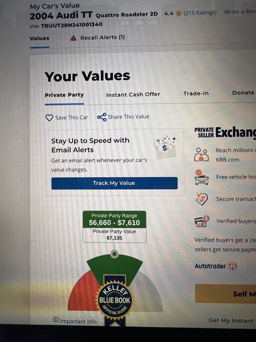 My daughter has a 2004 Audi TT Quattro for sale. This is a fun car great for summer. This car has an upgraded stere, aftermarket bucket seats, new breaks, both front cv axels, maf and map sensor,new wiring for the starter, all 5speed sensors car runs and drives great. The only issues I know of is the rear window doesn’t roll up and there is a check engine light for a speed sensor (the Shop said they don’t know why the check engine light is on) asking $5,500 which is what she bought it for and we have put $3,000 into it fixing everything and trying to figure out the check engine light. (Perfect car for someone living in a county that doesn’t have emission)