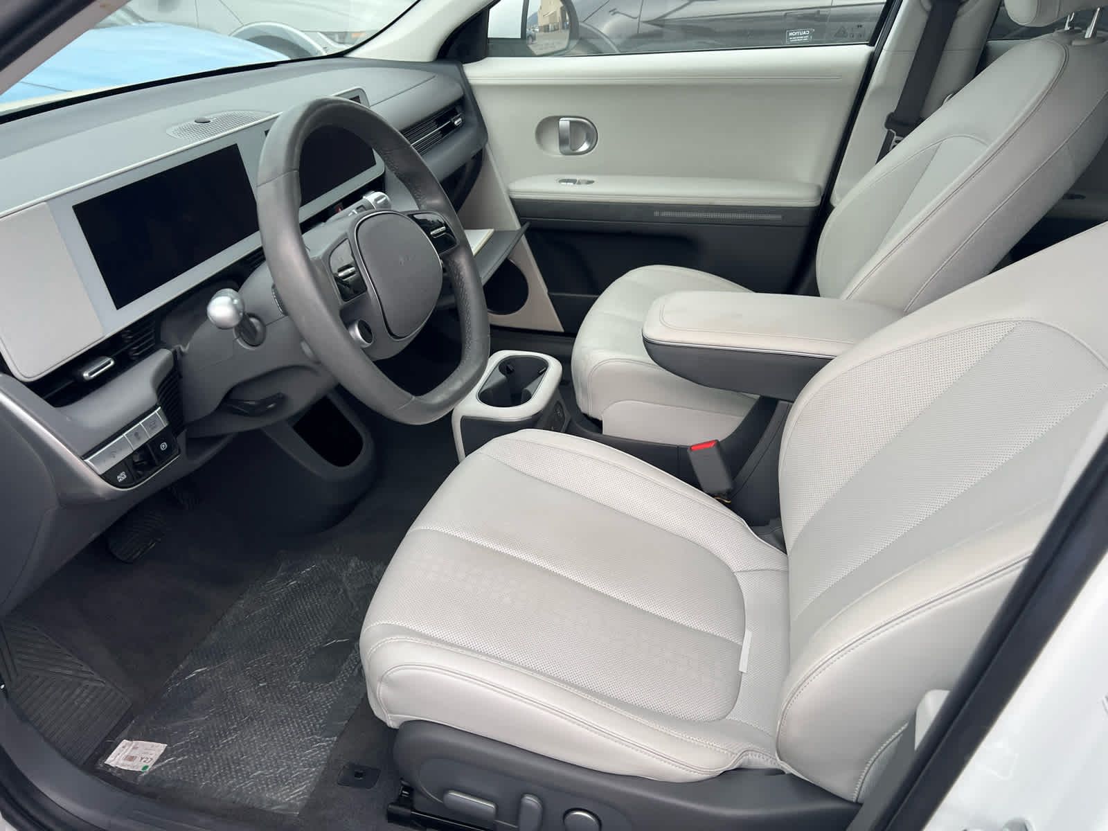 Navigation, Power Liftgate, Heated Driver Seat, Back-Up Camera, Satellite Radio, iPod/MP3 Input, Onboard Communications System, Aluminum Wheels. Rear Spoiler, MP3 Player, Remote Trunk Release, Privacy Glass. Hyundai SEL with Atlas White exterior and Gray interior features a Electric Motor.
