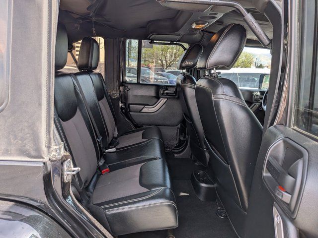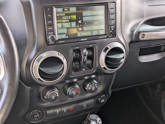 RADIO: 430 -inc: Remote USB Port,SIRIUS SATELLITE RADIO (subscription required),3.21 REAR AXLE RATIO (STD),BLACK LEATHER SEAT W/CLOTH (SEDOSO FABRIC) -inc: Driver Height Adjuster Seat,ENGINE: 3.6L V6 24V VVT (STD),BLACK 3-PIECE HARD TOP -inc: Freedom Panel Storage Bag Rear Window Defroster Rear Window Wiper/Washer Delete Sunrider Soft Top,MANUFACTURER'S STATEMENT OF ORIGIN,TRAILER TOW GROUP -inc: Class II Receiver Hitch Trailer Tow w/4-Pin Connector Wiring,BLACK CLEARCOAT,TRANSMISSION: 5-SPEED AUTOMATIC (W5A580) -inc: Tip Start Hill Descent Control,REMOTE START SYSTEM,QUICK ORDER PACKAGE 24F FREEDOM -inc: Engine: 3.6L V6 24V VVT Transmission: 5-Speed Automatic (W5A580) Mid Gloss Granite Crystal Appliques Power Convenience Group Freedom Edition Package Auto Dim Mirror w/Reading Lamp Front 1-Touch Down Power Windows Sunrider Soft Top Security Alarm Mid Gloss Granite Crystal Grille Oscar Mike Badge Black/Chrome Screws Fuel Filler Door MOPAR Black Tail Lamp Guards Deep Tint Sunscreen Windows MOPAR Coat Hooks & Grab Handles Silver Interior Accents Vehicle Information Center Remote USB Port Uconnect Voice Command w/Bluetooth Leather Wrapped Steering Wheel Chrome/Leather Wrapped Shift Knob Tire Pressure Monitoring Display Iron Gray Interior Accents Body Color Fender Flares 115V Auxiliary Power Outlet Power Heated Mirrors Freedom Package Decals Dana 44/226MM Rear Axle Bridgestone Brand Tires Pantone Trail Rated Badge Power Locks Remote Keyless Entry Granite Crystal Jeep Badge,Four Wheel Drive,Power Steering,ABS,4-Wheel Disc Brakes,Brake Assist,Brake Actuated Limited Slip Differential,Conventional Spare Tire,Convertible Soft Top,Tow Hooks,Tow Hooks,Intermittent Wipers,Variable Speed Intermittent Wipers,Rollover Protection Bars,Running Boards/Side Steps,Fog Lamps,AM/FM Stereo,MP3 Capability,Steering Wheel Audio Controls,Auxiliary Audio Input,Cloth Seats,Bucket Seats,Pass-Through Rear Seat,Rear Bench Seat,Adjustable Steering Wheel,Trip Computer,Power Windows,Cruise Control,A/C,Auto-Dimming Rearview Mirror,Driver Vanity Mirror,Passenger Vanity Mirror,Floor Mats,Power Windows,Trip Computer,Immobilizer,Traction Control,Stability Control,Traction Control,Driver Air Bag,Passenger Air Bag,Passenger Air Bag Sensor,Child Safety Locks