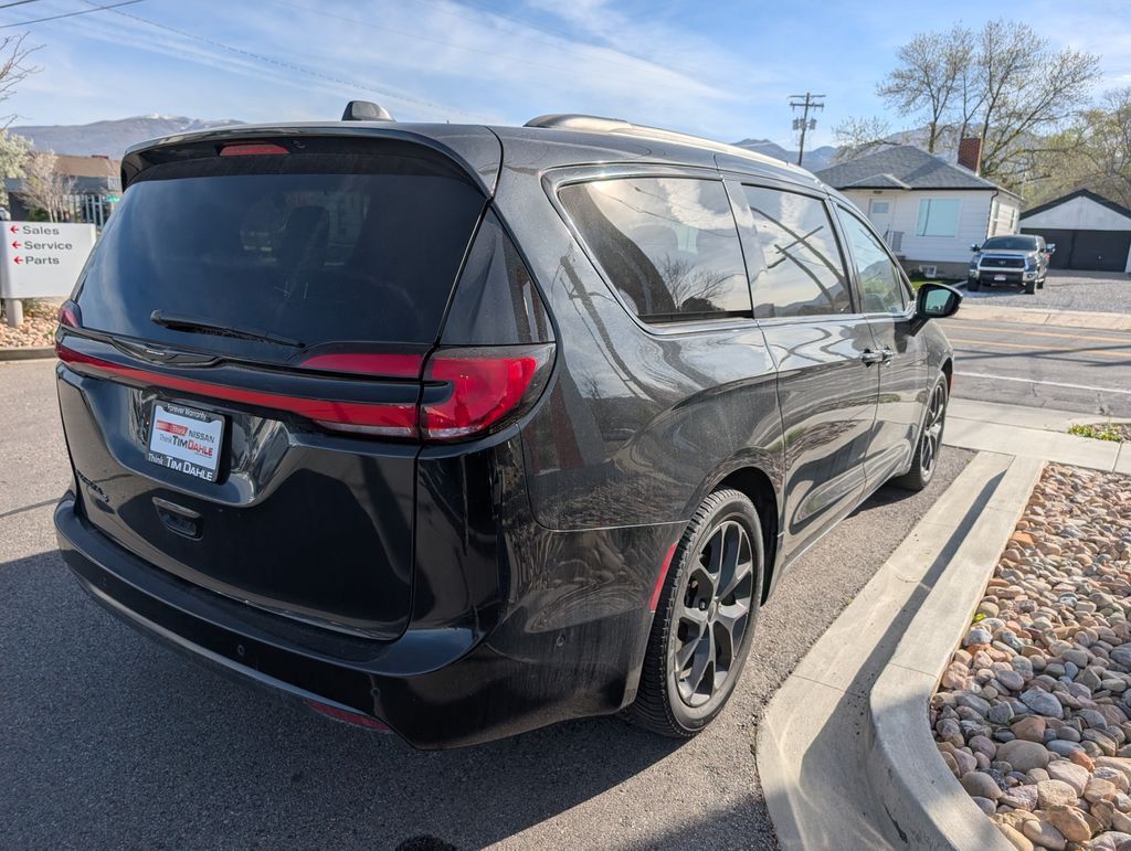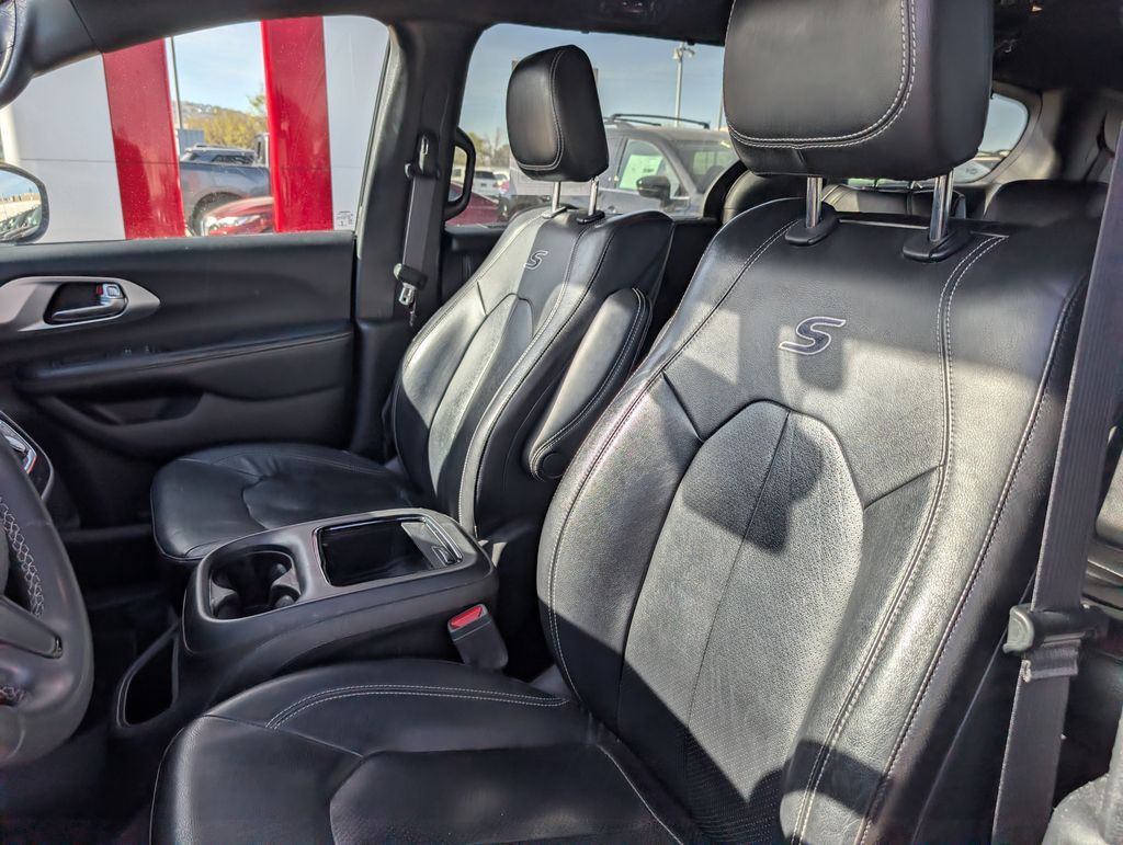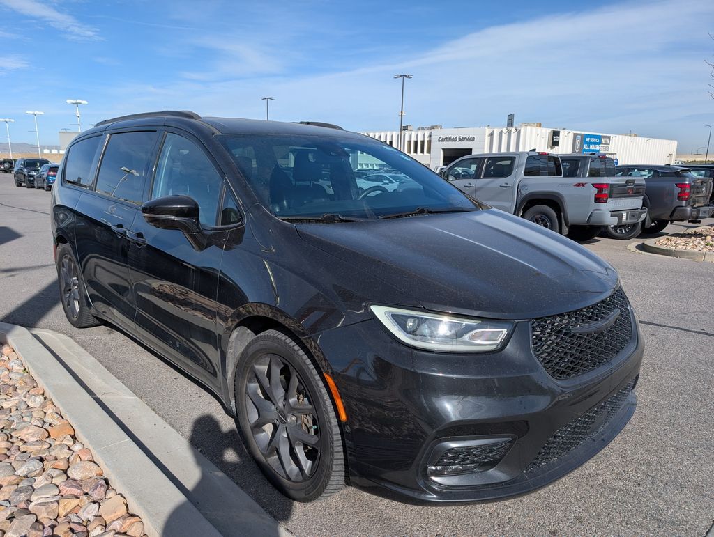 CARFAX One-Owner. Clean CARFAX. 2022 Chrysler Pacifica Touring L FWD 9-Speed 948TE Automatic 3.6L V6 24V VVT 10.1'' Touchscreen Display, 115V Auxiliary Power Outlet, 13 Alpine Speakers, 220 Amp Alternator, 3-Channel Video Remote Control, 3rd Row USB Charge Port, 4G LTE Wi-Fi Hot Spot, 506 Watt Amplifier, 8-Passenger Seating, Amazon Fire TV Built-In, Anodized Ice Cave Accents, Anodized Ink Badging, Apple CarPlay, Apple CarPlay/Android Auto, Auto-dimming Rear-View mirror, Automatic temperature control, Black Day Light Opening Moldings, Blu-Ray/DVD Player/USB Port, Brake assist, Connected Travel & Traffic Services, Disassociated Touchscreen Display, Electronic Stability Control, Famcam Interior Camera, For Details, Visit DriveUconnect.com, For More Info, Call 800-643-2112, Front dual zone A/C, Front fog lights, Front Passenger Auto Advance N Return, Front/Rear 1-Touch Up/Down Power Windows, Fully automatic headlights, Garage door transmitter, Global Telematics Box Module (TBM), Google Android Auto, GPS Antenna Input, GPS Navigation, Hands Free Sliding Doors, HD Radio, Heated door mirrors, Heated Second Row Seats, Heated steering wheel, High Definition Multimedia Interface, Integrated Active Noise Cancellation, Integrated Center Stack Radio, Integrated Voice Command w/Bluetooth, KeySense, Memory seat, Perforated Leather Bucket Seats w/S Logo, Piano Black Interior Accents, Power Adjust 8-Way Front Passenger Seat, Power driver seat, Power Liftgate, Power Passenger Lumbar Adjust, Premium Fascia Upper/Lower Grille w/Black Surround, Premium Rear Fascia Black, Quick Order Package 27L, Radio: Uconnect 5 Nav w/10.1'' Display, Rain sensing wipers, Remote keyless entry, S Appearance Package, S Badge, Seatback Video Screens, SiriusXM Guardian - Included Trial (B), SiriusXM Radio Service, SiriusXM Satellite Radio, Spoiler, Steering wheel mounted audio controls, Stow N Vac Integrated Vacuum, Touring Suspension, Turn signal indicator mirrors, Uconnect Theater Family Group, USB Host Flip, Video USB Port, Wheels: 20'' x 7.5'' S-Model Aluminum Design 1. While we make every effort to ensure the data listed here is correct, there may be instances where some of the options or vehicle features may be listed incorrectly as we get data from multiple data sources. PLEASE MAKE SURE to confirm the details of this vehicle with the dealer to ensure its accuracy. Dealer cannot be held liable for data that is listed incorrectly. See Dealer for details.