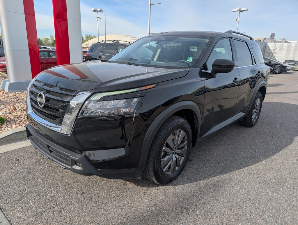 CARFAX One-Owner. Clean CARFAX. 2025 Nissan Pathfinder SV 4WD 9-Speed Automatic 3.5L V6 DOHC Recent Arrival! Auto High-beam Headlights, Automatic temperature control, Brake assist, Electronic Stability Control, Front dual zone A/C, Fully automatic headlights, Heated Front Bucket Seats, Low tire pressure warning, NissanConnect featuring Apple CarPlay and Android Auto, Occupant sensing airbag, Power driver seat, Power Liftgate, Radio: AM/FM Audio System with NissanConnect, Rear Parking Sensors, Remote keyless entry, Spoiler, Steering wheel mounted audio controls, Turn signal indicator mirrors, Wheels: 18'' x 8J Painted Alloy. While we make every effort to ensure the data listed here is correct, there may be instances where some of the options or vehicle features may be listed incorrectly as we get data from multiple data sources. PLEASE MAKE SURE to confirm the details of this vehicle with the dealer to ensure its accuracy. Dealer cannot be held liable for data that is listed incorrectly. See Dealer for details.