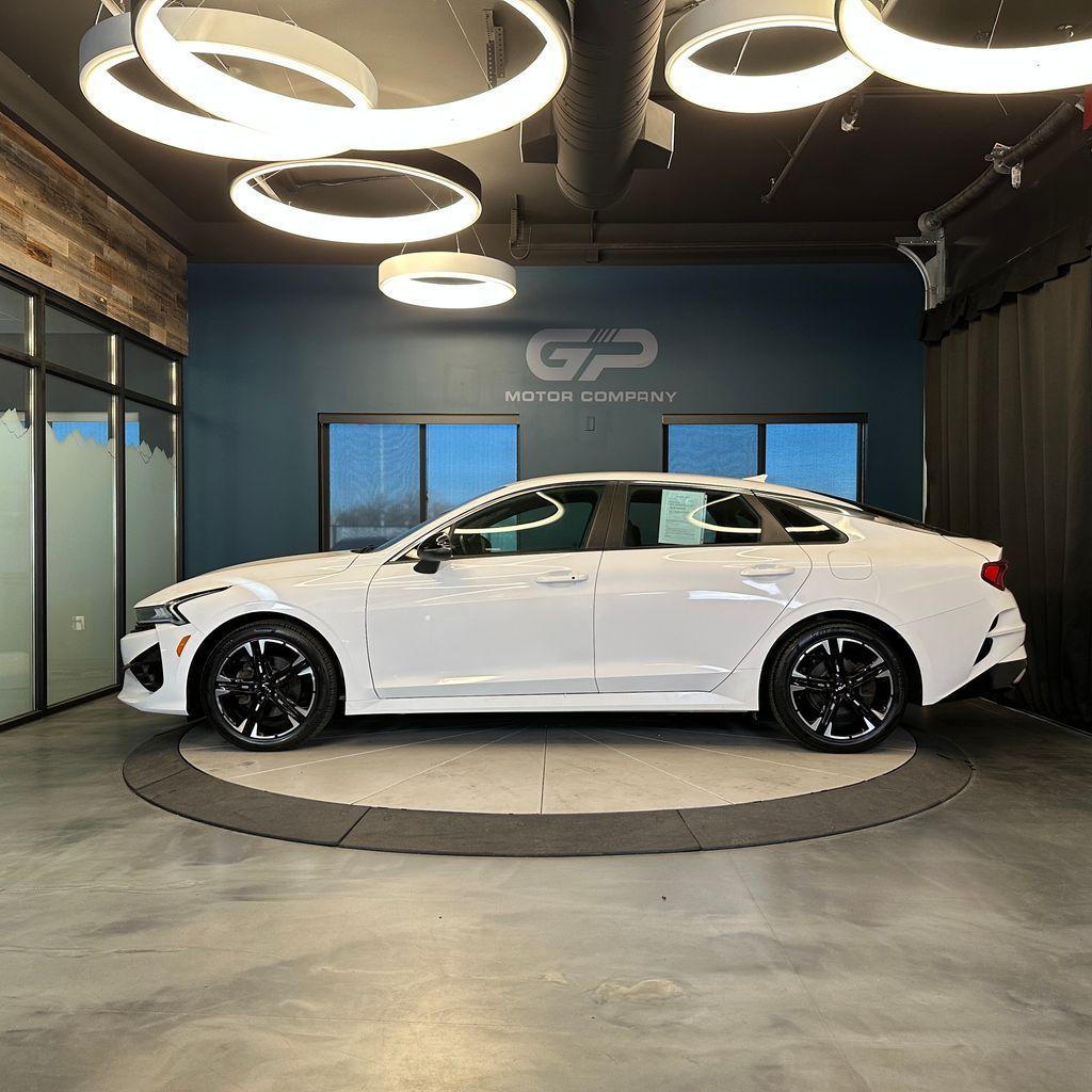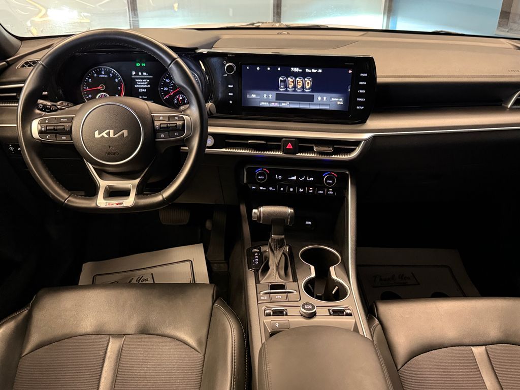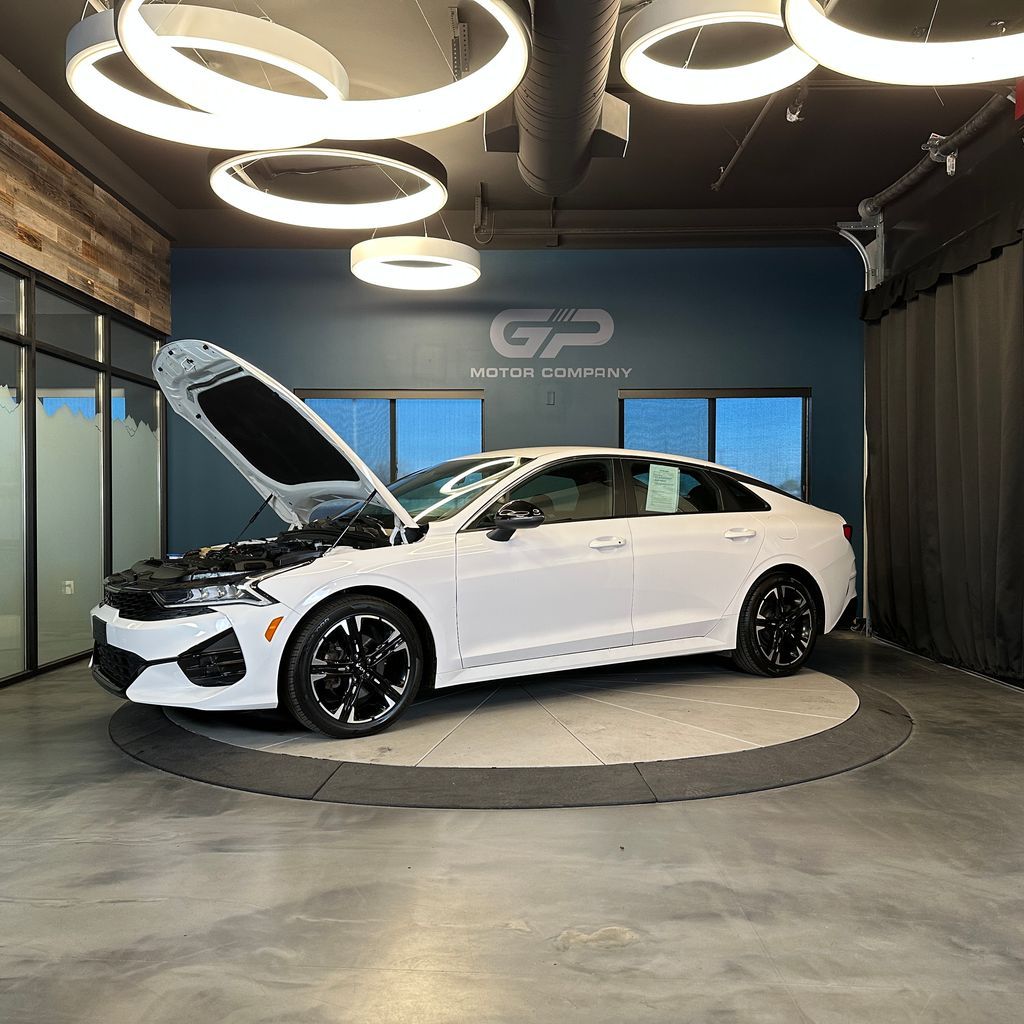 No accident history, low miles, AWD! GT-Line trim with heated front seats, front dual zone A/C, Apple CarPlay/Android Auto, heated door mirrors, and more! 2022 Kia K5 GT-Line AWD with branded title from hail. 8-Speed Automatic I4 25/33 City/Highway MPG