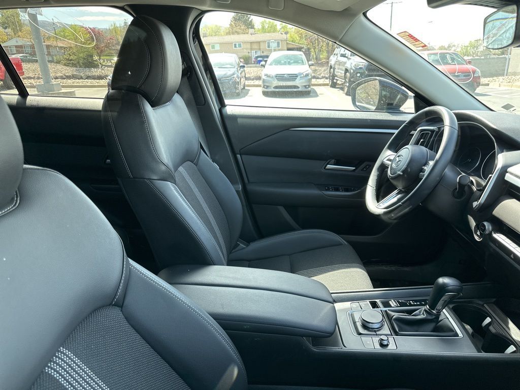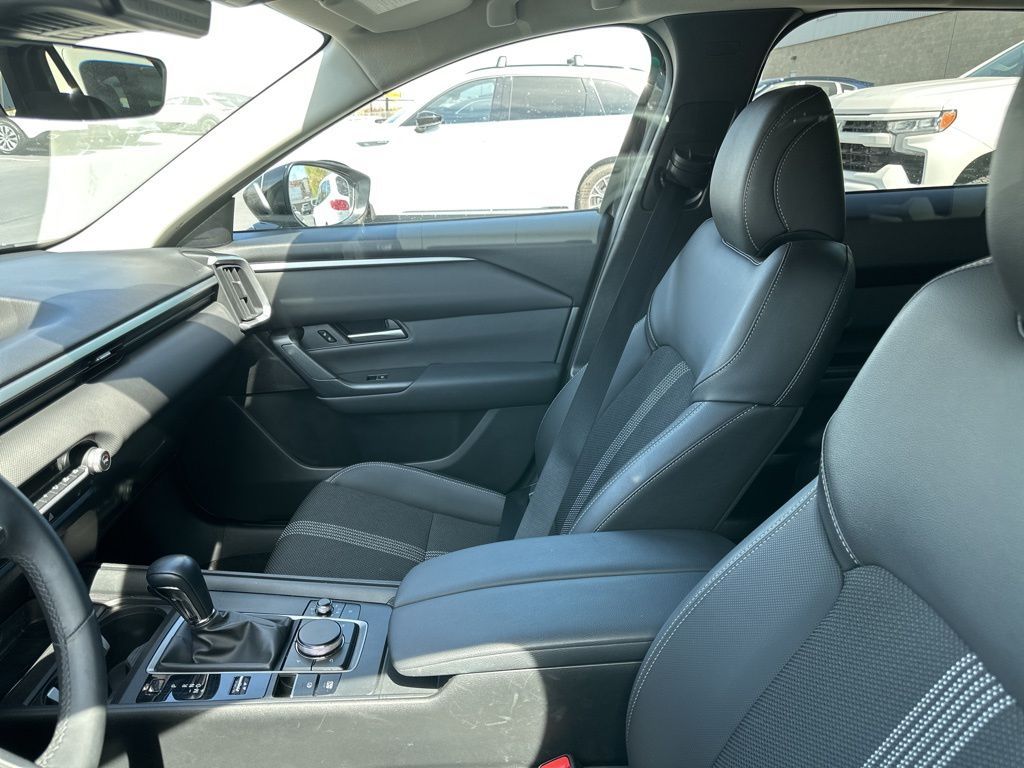 Mazda Certified Pre-Owned Certified, 4-Wheel Disc Brakes, 8 Speakers, ABS brakes, Air Conditioning, Alloy wheels, AM/FM radio, AppLink/Apple CarPlay and Android Auto, Auto High-beam Headlights, Automatic temperature control, Brake assist, Bumpers: body-color, Delay-off headlights, Driver door bin, Driver vanity mirror, Dual front impact airbags, Dual front side impact airbags, Electronic Stability Control, Emergency communication system: MAZDA CONNECT, Exterior Parking Camera Rear, Front anti-roll bar, Front Bucket Seats, Front Center Armrest, Front dual zone A/C, Front reading lights, Front wheel independent suspension, Fully automatic headlights, Half Leatherette Seat Trim, Heated door mirrors, Heated Front Bucket Seats, Heated front seats, Illuminated entry, Knee airbag, Leather Shift Knob, Leather steering wheel, Low tire pressure warning, Occupant sensing airbag, Outside temperature display, Overhead airbag, Overhead console, Panic alarm, Passenger door bin, Passenger vanity mirror, Power door mirrors, Power driver seat, Power Liftgate, Power steering, Power windows, Radio data system, Radio: AM/FM/HD 8-Speaker Audio Sound System, Rain sensing wipers, Rear seat center armrest, Rear window defroster, Rear window wiper, Remote keyless entry, Speed control, Speed-sensing steering, Split folding rear seat, Spoiler, Steering wheel mounted audio controls, Tachometer, Telescoping steering wheel, Tilt steering wheel, Traction control, Trip computer, Turn signal indicator mirrors, Variably intermittent wipers, Wheels: 17'' x 7J Aluminum Alloy Black Metallic Finish.