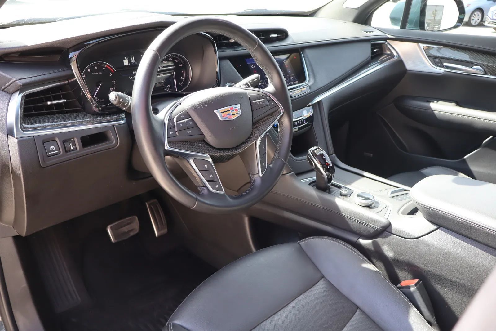 Front Pedestrian Automatic emergency braking, Front Automatic emergency braking, Lane keeping assist with blind spot integration, Lane keeping assist, Check rear seat reminder, Pedestrian Detection Pre-collision warning system, Pedestrian Detection Rear pre-collision warning system, Vibrating Driver Seat Pre-collision warning system, Audible Warning Pre-collision warning system, Visual Warning Pre-collision warning system, Sensor/alert Blind spot safety, Rear Cross traffic alert, Lane deviation sensors, Driver Knee airbags, Rearview Camera system, Front Side airbags, Rear Side curtain airbags, Front Side curtain airbags, Front Parking sensors, Rear Parking sensors, 4-wheel ABS, Interior Motion Sensor Anti-theft system, Anti-tow Sensor Anti-theft system, Anti-lockout Power door locks, Auto-locking Power door locks, Programmable safety key, Auto Off Electronic parking brake, Ventilated Disc Rear brake, Alarm Anti-theft system, Braking assist, Hill holder control, Ventilated Disc Front brake, Dual Front airbags, Vehicle Immobilizer Anti-theft system, Power brakes, LATCH System Child seat anchors, Electronic brakeforce distribution, Stability control, Traction control, In Dash Rearview monitor, Occupant Sensing Passenger Airbag deactivation, Front Seatbelt pretensioners, Front Emergency locking retractors, Rear Emergency locking retractors, Front Seatbelt warning sensor, Power Panoramic Moonroof / Sunroof, Aluminum Alloy Wheels, Sensor-activated Rear trunk/liftgate, LED Headlights, Power Operated Rear trunk/liftgate, Rain Sensing Front wipers, Auto High Beam Dimmer Headlights, LED Daytime running lights, Dual Tip Exhaust, Power Folding Side mirror adjustments, Power Sunshade Moonroof / Sunroof, Driver Side Auto-dimming Side mirrors, Safety Reverse Power windows, Power Side mirror adjustments, Heated Side mirrors, Acoustic Windshield Laminated glass, Tire Sealant Spare tire kit, Inflator Kit Spare tire kit, Black Roof rails, Intermittent Rear wiper, Rear Window defogger, Variable Intermittent Front wipers, Rear privacy glass, With Washer Rear wiper, Tire Pressure Monitoring System, Integrated Turn Signals Side mirrors, Roofline Rear spoiler, Chrome Body side moldings, Reverse Gear Tilt Side mirror adjustments, Tinted glass, Auto On/off Headlights, Auto Delay Off Headlights, Tilt/slide Moonroof / Sunroof, Integrated Exhaust, Front And Rear Wheel locks, One-touch Open/close Moonroof / Sunroof, Anti-trapping Moonroof / Sunroof, Chrome Exhaust tip color, Remotely Operated Power windows, Wiper Activated Headlights, Fixed Liftgate window, Liftgate Rear trunk/liftgate, Black Window trim, Black Grille color, Leather-trimmed Upholstery, Semi-aniline Leather Upholstery, Proximity Entry System Multi-function remote, Heated steering wheel, Automatic Climate Control Rear air conditioning, 10 Driver seat power adjustments, Leather Steering wheel trim, Automatic Climate Control Front air conditioning, Driver Seat Memorized settings, Steering Wheel Memorized settings, Side Mirrors Memorized settings, Dual Front air conditioning zones, Power Tilt And Telescopic Steering wheel, Front Wireless charging station, Push-button start, Heated Driver seat, Remote engine start, Heated Passenger seat, Garage Door Opener Universal remote transmitter, Auto-dimming Rearview mirror, Heated Rear seat, 8 Passenger seat power adjustments, Liftgate Memorized settings, Variable/speed-proportional Power steering, Cruise control, Bucket Front seat, Ambient lighting, Humidity/dewpoint sensors, Alloy Shift knob trim, 60-40 Split Bench Rear seat, Carpet Floor mat material, 2 Driver Memorized settings, Air filtration, Capless fuel filler system, Customizable instrument cluster, Flat Rear seat folding, In Floor Storage, Split Rear seat folding, Retractable Cargo cover, 5.7 In. Instrument cluster screen size, USB Front Power outlet(s), USB-C Rear Power outlet(s), 12V Cargo Area Power outlet(s), Rear Center Folding With Pass-thru Armrests, 12V Front Power outlet(s), Second Row Rear vents, Rear Floor mats, Front Floor mats, Multi-function display, Sliding Rear seat, Front Console With Armrest And Storage Center console, Compass, Rear Center With Cupholders Armrests, Illuminated Center console, 4 One-touch windows, External temperature display, Perforated Upholstery accents, MPG Fuel economy display, Range Fuel economy display, Front Reading lights, Tachometer Gauge, Reclining Rear seat manual adjustments, Door Courtesy lights, Rear Reading lights, Lumbar Driver seat power adjustments, Lumbar Passenger seat power adjustments, Reclining Passenger seat power adjustments, Reclining Driver seat power adjustments, Height Driver seat power adjustments, Height Passenger seat power adjustments, Front Cupholders, Maintenance Due Warnings and reminders, Front Overhead console, Dual Illuminating Vanity mirrors, Rear Cupholders, Cargo area light, Panic Alarm Multi-function remote, Audio Steering wheel mounted controls, Cargo Tie-down Anchors And Hooks Storage, Carpet Floor material, Cruise Control Steering wheel mounted controls, Phone Steering wheel mounted controls, Multi-function Steering wheel mounted controls, Front Seatback Storage, Voice Control Steering wheel mounted controls, Trunk Release Multi-function remote, Hotspot Wi-Fi, Hard Drive Navigation system, Touch Screen Display Navigation system, Voice Operated Navigation system, Bose Premium brand, Wireless Apple CarPlay Smartphone integration, Wireless Android Auto Smartphone integration, MyCadillac With Connected Access Smart device app compatibility, Bluetooth Wireless data link, Voice Operated Radio, Bluetooth Auxiliary audio input, HD Radio Radio, 8 In. Infotainment screen size, 8 Total speakers, Touch Screen Display Radio, With Read Function Electronic messaging assistance, SiriusXM Satellite radio, USB Auxiliary audio input, IPod/iPhone Auxiliary audio input, OnStar Satellite communications, Cadillac Infotainment System Infotainment, Maintenance Status Smart device app function, Jack A
