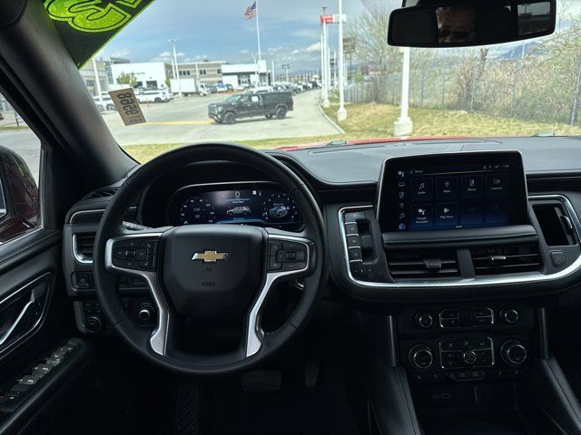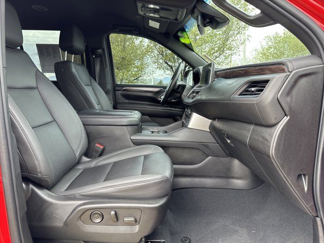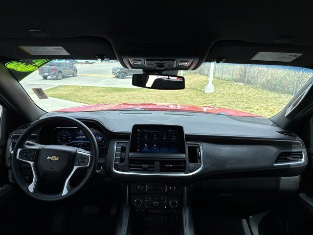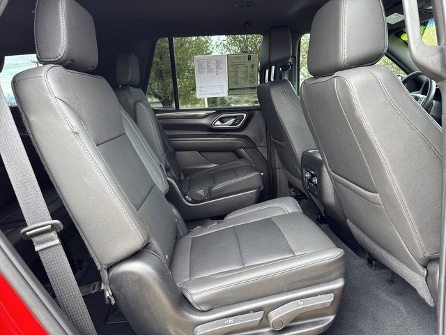 Navigation System,Driver Alert Package,License Plate Front Mounting Package,Luxury Package,Preferred Equipment Group 1LT,9 Speakers,AM/FM radio: SiriusXM with 360L,Bose 9-Speaker Stereo Audio System Feature,Premium audio system: Chevrolet Infotainment 3 Premium,Radio: Chevrolet Infotainment 3 Premium System,SiriusXM Radio w/360L,Air Conditioning,Automatic temperature control,Front dual zone A/C,Rear air conditioning,Rear window defroster,Enhanced Driver Information Center,Hands-Free Rear Power Programmable Liftgate,Memory seat,Memory Settings,Power driver seat,Power steering,Power windows,Remote keyless entry,Remote Start,Steering wheel mounted audio controls,Universal Home Remote,Four wheel independent suspension,Premium Smooth Ride Suspension,Speed-sensing steering,Traction control,Wrapped Steering Wheel,4-Wheel Disc Brakes,ABS brakes,Dual front impact airbags,Dual front side impact airbags,Emergency communication system: OnStar and Chevrolet connected services capable,Front anti-roll bar,Low tire pressure warning,Occupant sensing airbag,Overhead airbag,Rear anti-roll bar,Power Liftgate,Brake assist,Electronic Stability Control,Auto High-beam Headlights,Delay-off headlights,Fully automatic headlights,LED Daytime Running Lamps,Driver & Front Outboard Passenger Airbags,Panic alarm,Security system,Speed control,Bright Front & Rear Door Sill Plates,Bumpers: body-color,Heated door mirrors,Outside Heated Power-Adjustable Mirrors,Power door mirrors,Roof rack: rails only,Spoiler,1st & 2nd Row Color-Keyed Carpeted Floor Mats,Apple CarPlay/Android Auto,Auto-Dimming Inside Rear-View Mirror,Auto-dimming Rear-View mirror,Color-Keyed Carpeting Floor Covering,Compass,Driver door bin,Driver vanity mirror,Front reading lights,Garage door transmitter,HD Surround Vision,Heated Steering Wheel,Illuminated entry,Infotainment Display,Lane Change Alert w/Side Blind Zone Alert,Memory Settings for Driver,Outside temperature display,Overhead console,Passenger vanity mirror,Power Tilt & Telescopic Steering Column,Rear Cross Traffic Alert,Rear Pedestrian Alert,Rear reading lights,Rear seat center armrest,Tachometer,Telescoping steering wheel,Tilt steering wheel,Trip computer,Voltmeter,Wireless Charging,10-Way Power Driver & Passenger Seat Adjusters,2nd Row Pwr Release 60/40 Split-Folding Bench Seat,3rd Row 60/40 Power-Folding Split-Bench Seat,3rd row seats: split-bench,Floor Console w/Storage Area,Front Bucket Seats,Front Center Armrest,Front High-Back Reclining Bucket Seats,Heated 2nd Row Outboard Seats,Heated Driver & Front Passenger Seats,Heated front seats,Leather-Appointed Seat Trim,Power passenger seat,Power Release 2nd Row Bucket Seats,Split folding rear seat,Passenger door bin,Alloy wheels,Wheels: 18 x 8.5 Bright Silver Painted Aluminum,Wheels: 20 x 9 Painted Aluminum,Rain sensing wipers,Rear window wiper,Variably intermittent wipers,3.23 Rear Axle Ratio,Accident Free,SPECIAL PAINT ONE COLOR Required with any special paint selection. Refer to individual special paint SEO codes for details on body colored non-sheet metal parts.,WHEELS 20 X 9 (50.8 CM X 22.9 CM) PAINTED ALUMINUM WITH MACHINE FACE AND ARGENT METALLIC POCKETS,SPECIAL PAINT VICTORY RED WA 9260 Victory Red painted parts will be front fascia rear fascia tailgate applique liftgate handle and door handles. Black parts will be D-pillar applique rear spoiler mirrors ultrasonic park assist sensors and OnStar antenna.,REAR AXLE 3.23 RATIO,LANE CHANGE ALERT WITH SIDE BLIND ZONE ALERT,LT PREFERRED EQUIPMENT GROUP includes standard equipment,SEATS SECOND ROW BUCKET POWER RELEASE,JET BLACK LEATHER-APPOINTED SEATING SURFACES 1ST AND 2ND ROW,MEMORY SETTINGS RECALLS 2 DRIVER PRESETS FOR POWER DRIVER SEAT OUTSIDE REARVIEW MIRRORS AND POWER AND TILT AND TELESCOPIC STEERING COLUMN,SEATS THIRD ROW 60/40 SPLIT-BENCH POWER FOLDING,SEATS HEATED SECOND ROW OUTBOARD SEATS,SPECIAL PAINT,LUXURY PACKAGE includes (WPD) Driver Alert Package content (UV2) HD Surround Vision (UKK) Rear Pedestrian Alert (A45) memory settings (DXR) outside heated power-adjustable power-folding body-color mirrors with driver-side auto-dimming and integrated turn signal indicators (N38) power tilt and telescopic steering column (KI3) heated steering wheel (KA6) second row outboard heated seats (ATT) second row power 60/40 split-folding bench seats and (AS8) third row power 60/40 split-folding bench seats,AUDIO SYSTEM CHEVROLET INFOTAINMENT 3 PREMIUM SYSTEM WITH GOOGLE BUILT-IN 10.2 diagonal HD color touchscreen includes multi-touch display AM/FM stereo Bluetooth streaming audio for music and most phones; featuring wireless Android Auto and Apple CarPlay capability for compatible phones advanced voice recognition in-vehicle apps personalized profiles for infotainment and vehicle settings (STD),STEERING COLUMN POWER TILT AND TELESCOPIC,ENGINE 5.3L ECOTEC3 V8 with Dynamic Fuel Management Direct Injection and Variable Valve Timing includes aluminum block construction (355 hp [265 kW] @ 5600 rpm 383 lb-ft of torque [518 Nm] @ 4100 rpm) (STD),MIRRORS OUTSIDE HEATED POWER-ADJUSTABLE POWER-FOLDING DRIVER-SIDE AUTO-DIMMING integrated turn signal indicators and puddle lighting,HD SURROUND VISION,SEATS FRONT BUCKET (STD),REAR CROSS TRAFFIC ALERT,GVWR 7500 LBS. (3402 KG) (STD),STEERING WHEEL HEATED,TRANSMISSION 10-SPEED AUTOMATIC electronically controlled with overdrive includes Traction Select System including tow/haul (Standard with (L84) 5.3L EcoTec3 V8 engine only.) (STD),TIRES 275/60R20SL ALL-SEASON BLACKWALL,REAR PEDESTRIAN ALERT,DRIVER ALERT PACKAGE includes (UKC) Lane Change Alert with Side Blind Zone Alert and (UFG) Rear Cross Traffic Alert,LICENSE PLATE FRONT MOUNTING PACKAGE,Immobilizer,Keyless Start,Locking/Limited Slip Differential,Four Wheel Drive,Tow Hitch,Power Steering,ABS,4-Wheel Disc Brakes,Aluminum Wheels,Tires - Front All-Season,Tires - Rear All-Season,Conventional Spare Tire,Conventional Spare Tire,Luggage Rack,Running Boards/Side Steps,Automatic Highbeams,Heated Mirrors,Power Mirror(s