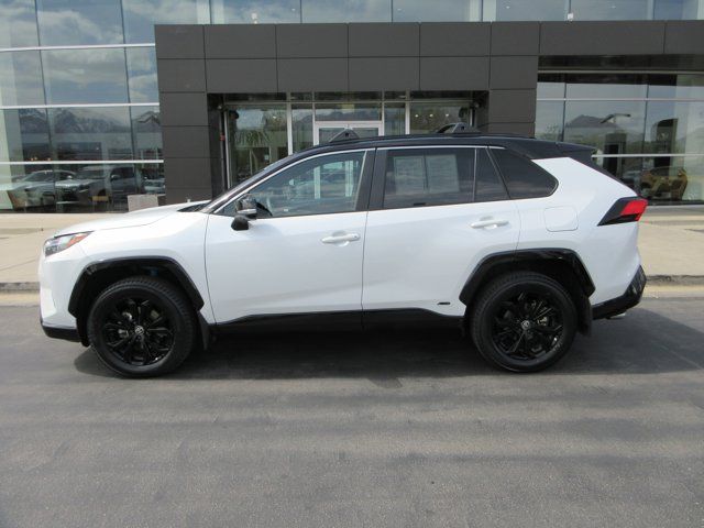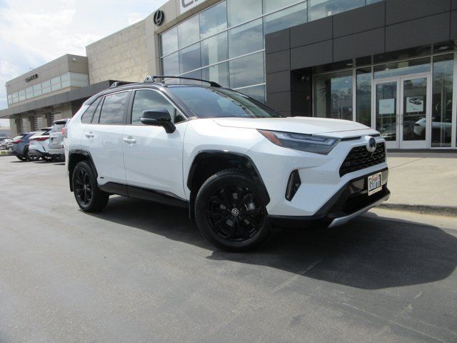 Recent Arrival!Wind Chill Pearl/Midnight Black Metallic 2023 Toyota RAV4 Hybrid XSE AWD eCVT 2.5L 4-Cylinder 2.5L 4-Cylinder, 12.3 Multi Information Display, 4-Wheel Disc Brakes, 6 Speakers, ABS brakes, All Weather Floor Liners & Cargo Tray (TMS), Auto-dimming Rear-View mirror, Automatic temperature control, Bird's Eye View Monitor, Blackout Emblem Overlays (TMS), Blind Spot Monitor, Console Safe (TMS), Driver Seat w/2-Position Memory Function, Electronic Inside Rear View Mirror, Electronic Stability Control, Front & Rear Parking Assist w/Automated Braking, Front dual zone A/C, Fully automatic headlights, Garage door transmitter: HomeLink, Heated 3-Spoke Leather Steering Wheel, Heated door mirrors, Heated Front Seats, Illuminated entry, Intelligent Clearance Sonar (ICS), Leather Shift Knob, Mudguard (TMS), Outside temperature display, Panoramic Glass Roof, Power Liftgate, Qi-Compatible Wireless Smartphone Charging, Radio data system, Radio: AM/FM/XM Audio System, Rear window wiper, Remote keyless entry, Roof Rack Cross Bars (TMS), Security system, Smart Key System w/Push Button Start, SofTex Seat Trim, Split folding rear seat, Spoiler, Steering wheel mounted audio controls, Traction control, Turn signal indicator mirrors, Variably intermittent wipers, Wheels: 18 x 7.0J Black-Painted Aluminum Alloy, XSE Advanced Technology Package, XSE Grade Weather Package.41/38 City/Highway MPG