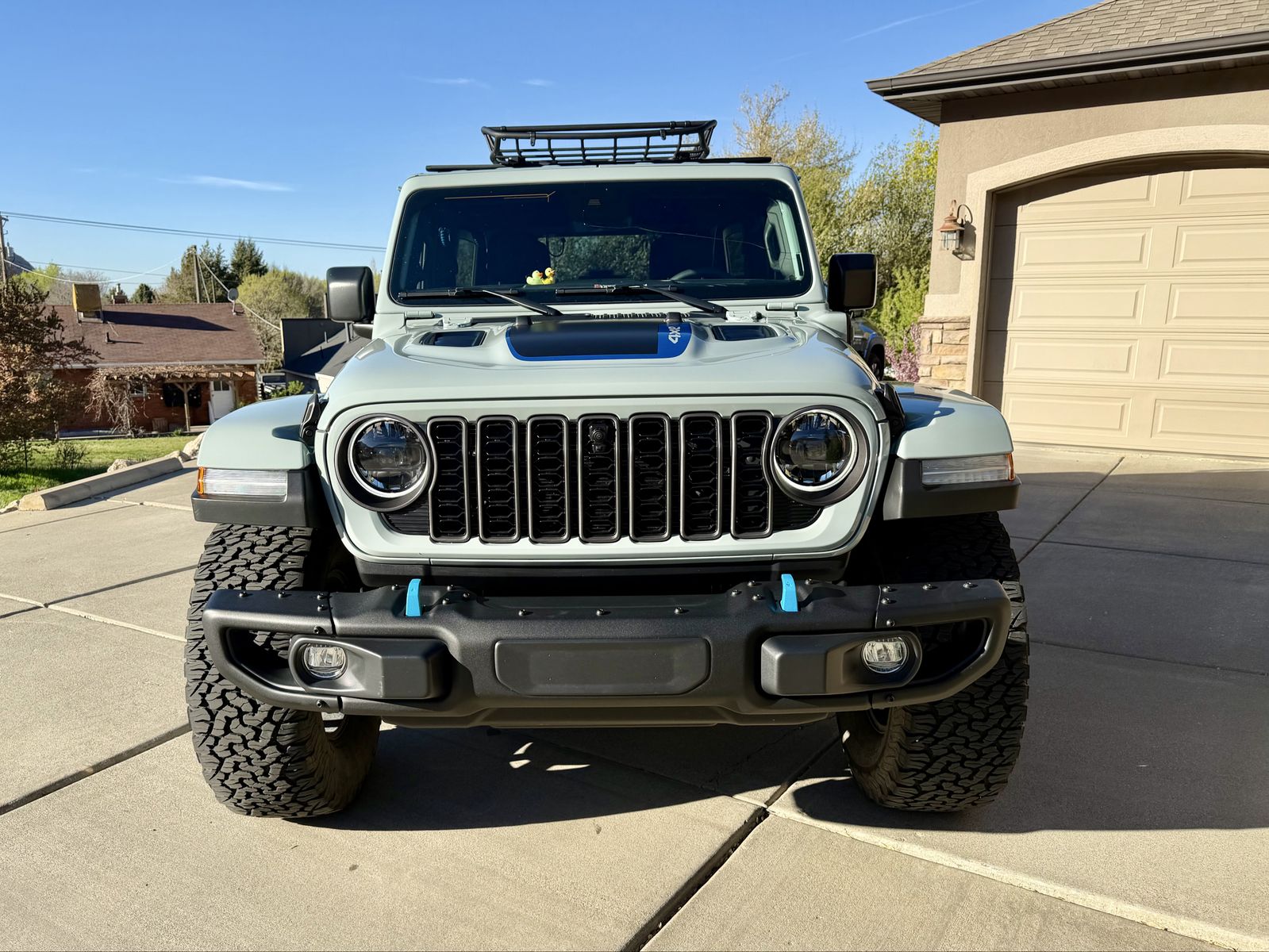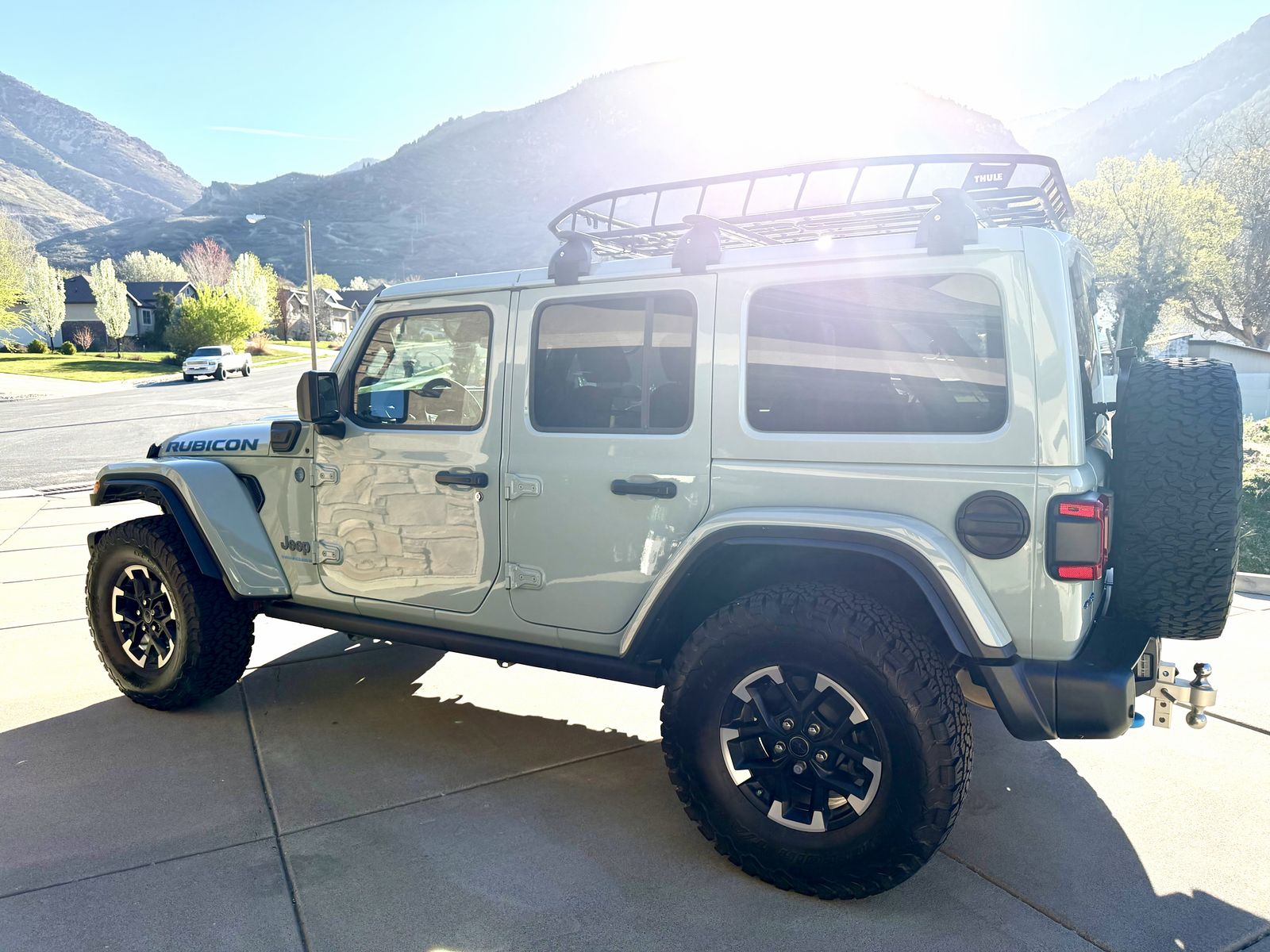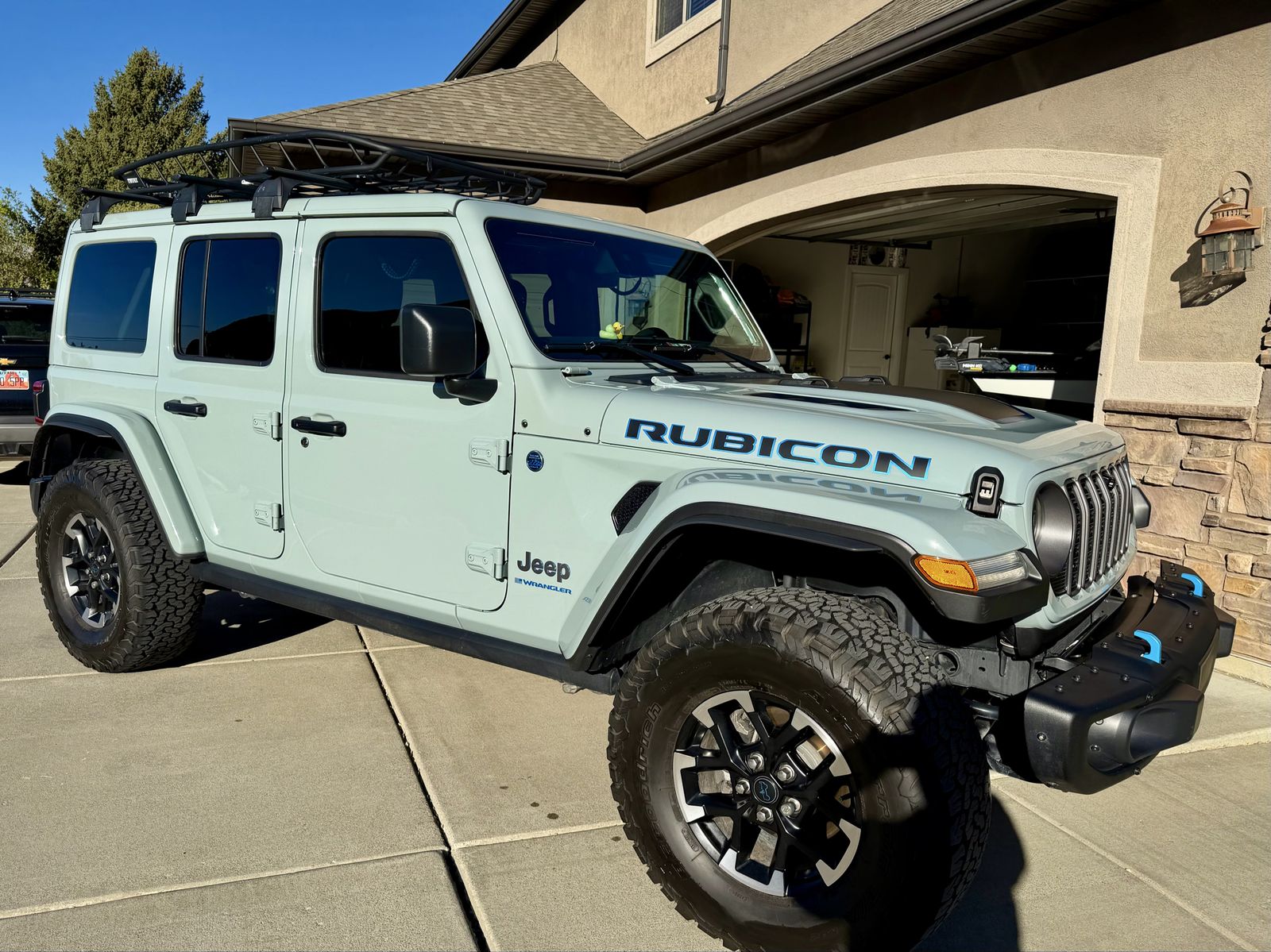 Beautiful 2024 Jeep Wrangler Rubicon X 4xe. Immaculate condition upgraded tires to 36 inch BFG. KO2, clear braon the front end.