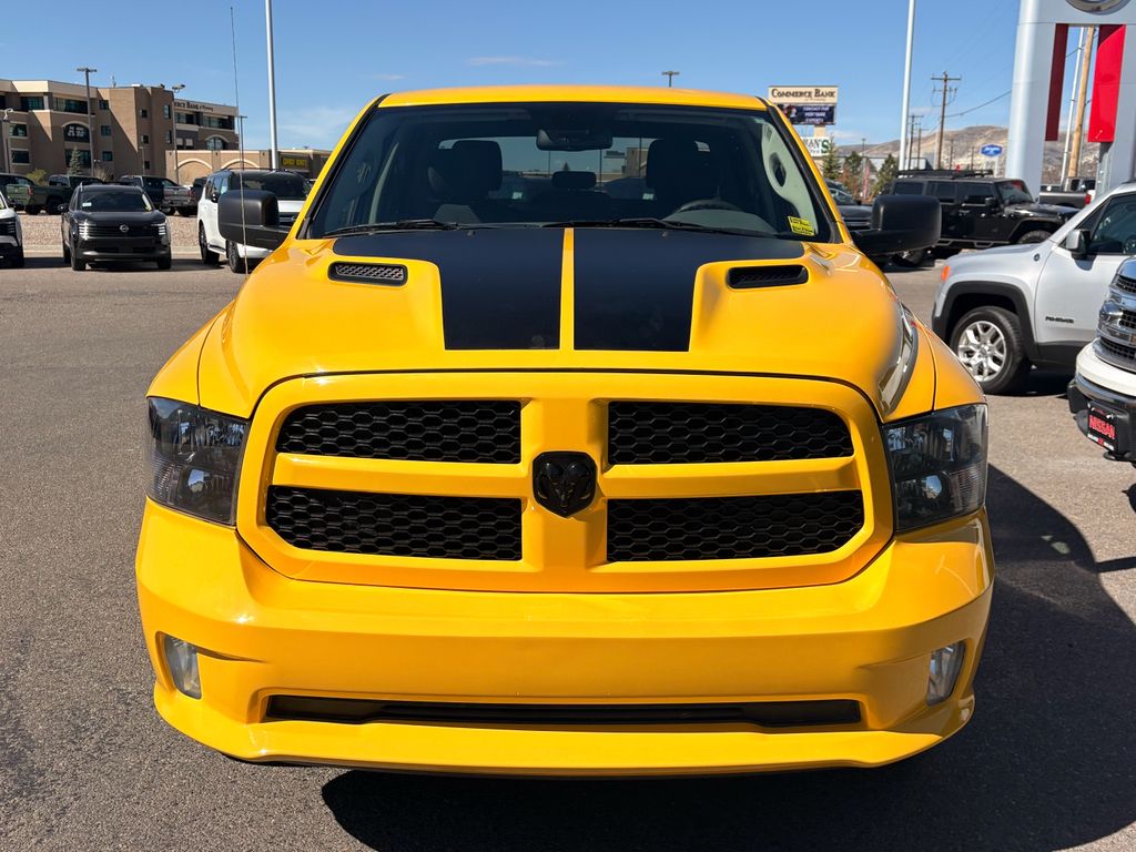 Electronics Convenience Group,Quick Order Package 27J Express: Power Heated Manual Folding Mirrors; Fog Lamps; Heated Exterior Mirrors; 3,129 Kgs (6,900 Lbs) GVWR; Rear Floor Mats; Front Floor Mats; Body-Colour Front Fascia; Body-Colour Grille; Black Exterior Mirrors; Carpet Floor Covering; Body-Colour Rear Bumper with Step Pads; Ram 1500 Express Group,Stinger Yellow Sport Package: MOPAR Sport Performance Hood Decal; Sport Performance Hood; Black Seats,Express Black Accents Package,Wheel and Sound Group,Quick Order Package 26J Express: Power Heated Manual Folding Mirrors; Fog Lamps; Heated Exterior Mirrors; 3,129 Kgs (6,900 Lbs) GVWR; Wheel Centre Hub; Rear Floor Mats; Front Floor Mats; Body-Colour Front Fascia; Body-Colour Grille; Black Exterior Mirrors; Carpet Floor Covering; Body-Colour Rear Bumper with Step Pads; Ram 1500 Express Group,Sport Performance Hood,Uconnect 4C with 8.4" Display Radio,Spray-In Bedliner,Anti-Spin Differential Rear Axle,SiriusXM Satellite Radio,Trailer Brake Control,121-Litre (26.6-Gallon) Fuel Tank,3.92 Rear Axle Ratio,LED Bed Lighting,Apple CarPlay/Android Auto smart device mirroring,Cloth front seat upholstery,Driver seat with 4-way directional controls,Front passenger seat with 4-way directional controls,Keyfob trunk control,8.4 inch primary display,ParkView rear mounted camera,Brake assist system,Cruise control with steering wheel mounted controls,Part-time 4WD,HEMI 5.7L V-8 variable valve control, regular unleaded, engine with cylinder deactivation and 395HP,HEMI 5.7L V-8,Mechanical,Dual-zone front climate control,Sentry Key immobilizer,SiriusXM Guardian vehicle integrated emergency SOS system,Trailer brake controller,Trailer sway control,External memory control,Internet radio capability,Configurable instrumentation gauges,Electronic stability control system,Hill start assist,Automatic climate control,Front fog lights,Active grille shutters,Manual rear child safety door locks,Mobile app access,Heated driver and passenger side door mirrors,Manual tilting steering wheel,20 x 8-inch front and rear black aluminum wheels,P275/60SR20 AS BSW 636 RPM front and rear tires,6 airbags,Driver front impact airbag,Seat mounted side impact driver airbag,Curtain first and second-row overhead airbags,Passenger front impact airbag,Seat mounted side impact front passenger airbag,Airbag occupancy sensor,Auto-locking doors,Valet key,TorqueFlite 8-speed automatic,Selectable mode transmission,Cloth rear seat upholstery,Rear under seat climate control ducts,Rear console climate control ducts,Exterior temperature display,Transmission electronic control,Automatic,Reflector headlights