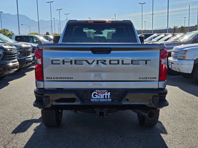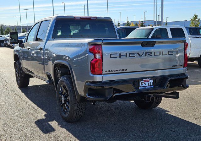 ADAPTIVE CRUISE CONTROL,POWER OUTLET INTERIOR 120-VOLT (400 watts shared with (KC9) bed mounted power outlet),TAILGATE GATE FUNCTION MANUAL WITH EZ LIFT includes power lock and release,REMOTE VEHICLE STARTER SYSTEM,LANE CHANGE ALERT WITH SIDE BLIND ZONE ALERT,MIRRORS OUTSIDE POWER-ADJUSTABLE VERTICAL TRAILERING WITH HEATED AND AUTO-DIMMING UPPER GLASS lower convex mirrors turn signal indicators puddle lamps (U12) perimeter lighting auxiliary lighting power folding/manual extending (extends 3.31 [84.25mm]) Includes (DD8) auto-dimming rearview mirror.,JET BLACK CLOTH SEAT TRIM,CUSTOM PREFERRED EQUIPMENT GROUP includes standard equipment,TRANSMISSION 10-SPEED AUTOMATIC,USB PORTS REAR DUAL CHARGE-ONLY (Included and only available with (KI4) 120-volt power outlet. Beginning with the start of production certain vehicles will be forced to include (RFO) Not Equipped with USB ports rear.),FRONT AND REAR PARK ASSIST ULTRASONIC,DEFOGGER REAR-WINDOW ELECTRIC,LPO BLACK TAILGATE LETTERING,SEATS FRONT 40/20/40 SPLIT-BENCH with covered armrest storage and under-seat storage (lockable) (STD),WINTER GRILLE COVER,WHEELS 20 (50.8 CM) HIGH GLOSS BLACK PAINTED WHEEL with Black center caps,ENGINE BLOCK HEATER,MIRROR INSIDE REARVIEW AUTO-DIMMING,CUSTOM BLACKOUT PACKAGE includes Black badging (SRI) 20 High gloss Black painted wheels Black steering wheel emblem (SB7) Black tailgate CHEVROLET lettering decal LPO with (QK1) tailgate or Black bowtie with available (QK2) Multi-flex tailgate,SEAT ADJUSTER DRIVER 10-WAY POWER including lumbar,LED CARGO AREA LIGHTING located in pickup bed activated with switch on center switch bank or key fob,CUSTOM CONVENIENCE PACKAGE includes (BTV) Remote Start with (UTJ) content theft alarm (KI4) 120-volt power outlet (KC9) 120-volt bed-mounted power outlet (UBI) 2 charge-only USB ports for second row (C49) rear-window defogger (A2X) 10-way power driver seat including power lumbar (UF2) bed LED cargo area lighting (QT5) EZ Lift power lock and release tailgate (Included with (PDX) Custom Value Package. Beginning with the start of production certain vehicles will be forced to include (RFO) Not Equipped with USB ports rear.),REAR AXLE 3.42 RATIO,REAR CROSS TRAFFIC ALERT,THEFT-DETERRENT SYSTEM UNAUTHORIZED ENTRY,STERLING GRAY METALLIC,EXHAUST BRAKE,POWER OUTLET BED MOUNTED 120-VOLT (400 watts shared with (KI4) interior power outlet),AUDIO SYSTEM CHEVROLET INFOTAINMENT 3 SYSTEM 7 diagonal HD color touchscreen AM/FM stereo Bluetooth audio streaming for 2 active devices voice command pass-through to phone Wireless Apple CarPlay and Wireless Android Auto compatibility (STD),ENGINE DURAMAX 6.6L TURBO-DIESEL V8 B20-Diesel compatible (470 hp [350.5 kW] @ 2800 rpm 975 lb-ft of torque [1322 Nm] @ 1600 rpm),ALTERNATOR 220 AMPS,GVWR 11 300 LBS. (5126 KG),CUSTOM VALUE PACKAGE includes (PCX) Custom Convenience Package (PQA) WT/CX Safety Package (DWI) outside power-adjustable vertical trailering mirrors with heated and auto-dimming upper glass lower convex spotter mirrors turn signal indicators puddle lamps perimeter lighting and (DD8) auto-dimming rearview mirror,WT/CX SAFETY PACKAGE includes (UD5) Front and Rear Park Assist (UKC) Lane Change Alert with Side Blind Zone Alert and (UFG) Rear Cross Traffic Alert,Tow Hitch,Keyless Start,Locking/Limited Slip Differential,Four Wheel Drive,Tow Hooks,Power Steering,ABS,4-Wheel Disc Brakes,Aluminum Wheels,Tires - Front All-Terrain,Tires - Rear All-Terrain,Conventional Spare Tire,Daytime Running Lights,Automatic Highbeams,Heated Mirrors,Power Mirror(s),Integrated Turn Signal Mirrors,Privacy Glass,AM/FM Stereo,MP3 Capability,Bluetooth Connection,Auxiliary Audio Input,Smart Device Integration,Requires Subscription,Satellite Radio,Requires Subscription,Bluetooth Connection,Smart Device Integration,Bluetooth Connection,WiFi Hotspot,Split Bench Seat,Cloth Seats,Pass-Through Rear Seat,Rear Bench Seat,Floor Mats,Floor Mats,Adjustable Steering Wheel,Power Windows,Power Windows,Power Door Locks,Keyless Entry,Power Door Locks,Cruise Control,MP3 Capability,Auxiliary Audio Input,Power Outlet,A/C,A/C,Rear A/C,Front Collision Mitigation,Front Collision Warning,Front Collision Mitigation,Traction Control,Stability Control,Daytime Running Lights,Driver Air Bag,Passenger Air Bag,Front Side Air Bag,Front Head Air Bag,Rear Head Air Bag,Passenger Air Bag Sensor,Telematics,Requires Subscription,Back-Up Camera,Lane Departure Warning,Front Collision Warning,Driver Restriction Features,Tire Pressure Monitor,Telematics,Navigation from Telematics,Requires Subscription