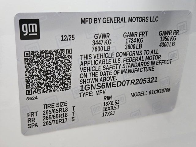 SEATS FRONT 40/20/40 SPLIT-BENCH,REAR AXLE 3.23 RATIO,GVWR 7600 LBS. (3447 KG) (STD),LPO BLACK BOWTIE EMBLEMS FRONT AND REAR (dealer-installed),LPO BLACK MIRROR CAPS (dealer-installed),ENGINE 5.3L ECOTEC3 V8 with Dynamic Fuel Management Direct Injection and Variable Valve Timing includes aluminum block construction (355 hp [265 kW] @ 5600 rpm 383 lb-ft of torque [518 Nm] @ 4100 rpm) (STD),SUMMIT WHITE,LS PREFERRED EQUIPMENT GROUP includes standard equipment,JET BLACK PREMIUM CLOTH SEAT TRIM,AUDIO SYSTEM 17.7 DIAGONAL ADVANCED COLOR LCD DISPLAY with Google built-in compatibility (select service plan required terms and limitations apply) including navigation capability connected apps personalized profiles for each driver's settings Natural Voice Recognition and Phone Integration (STD),TRANSMISSION 10-SPEED AUTOMATIC electronically controlled with overdrive includes Traction Select System including tow/haul (STD),LPO DARK ESSENTIALS PACKAGE includes (SFZ) Black bowtie emblems LPO (RIK) Black nameplates LPO and (S4X) Black mirror caps LPO (dealer-installed),AIRBAGS FRONTAL AIRBAGS FOR DRIVER AND FRONT OUTBOARD PASSENGER; Seat-mounted side-impact airbags for driver and front outboard passenger; Head-curtain airbags for all rows in outboard seating positions,WHEELS 18 X 8.5 (45.7 CM X 21.6 CM) BRIGHT SILVER PAINTED ALUMINUM (STD),LPO BLACK NAMEPLATES (dealer-installed),TIRES 265/65R18SL ALL-SEASON BLACKWALL (STD),Air Suspension,Immobilizer,Keyless Start,Locking/Limited Slip Differential,Four Wheel Drive,Tow Hitch,Power Steering,ABS,4-Wheel Disc Brakes,Aluminum Wheels,Tires - Front All-Season,Tires - Rear All-Season,Conventional Spare Tire,Conventional Spare Tire,Luggage Rack,Running Boards/Side Steps,Automatic Highbeams,Heated Mirrors,Power Mirror(s),Privacy Glass,Intermittent Wipers,Variable Speed Intermittent Wipers,Rain Sensing Wipers,Intermittent Wipers,Navigation System,Bluetooth Connection,WiFi Hotspot,WiFi Hotspot,Satellite Radio,Requires Subscription,Bluetooth Connection,Smart Device Integration,Cloth Seats,Power Driver Seat,Power Passenger Seat,Driver Adjustable Lumbar,Passenger Adjustable Lumbar,Pass-Through Rear Seat,Rear Bench Seat,3rd Row Seat,Floor Mats,Adjustable Steering Wheel,Cruise Control,Steering Wheel Audio Controls,Heated Steering Wheel,Adaptive Cruise Control,Front Collision Warning,Power Door Locks,Keyless Entry,Power Door Locks,Remote Engine Start,Power Windows,Power Windows,Power Windows,Cruise Control,Adaptive Cruise Control,Security System,MP3 Capability,Auxiliary Audio Input,MP3 Capability,Auxiliary Audio Input,Climate Control,Multi-Zone A/C,A/C,Rear A/C,A/C,Rear A/C,Rear Defrost,Driver Vanity Mirror,Passenger Vanity Mirror,Driver Illuminated Vanity Mirror,Passenger Illuminated Visor Mirror,Front Reading Lamps,Rear Reading Lamps,Front Collision Mitigation,Front Collision Warning,Brake Assist,Front Collision Mitigation,Front Collision Warning,Rear Collision Mitigation,Traction Control,Stability Control,Brake Assist,Driver Air Bag,Passenger Air Bag,Front Side Air Bag,Front Head Air Bag,Rear Head Air Bag,Passenger Air Bag Sensor,Blind Spot Monitor,Evasion Assist,Telematics,Requires Subscription,Rear Parking Aid,Automatic Parking,Back-Up Camera,Aerial View Display System,Cross-Traffic Alert,Lane Departure Warning,Lane Keeping Assist,Front Collision Warning,Child Safety Locks,Driver Restriction Features,Tire Pressure Monitor,Telematics,Navigation from Telematics,Requires Subscription