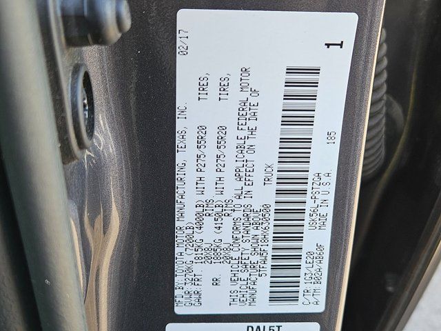 Ken Garff Chevrolet is pumped up to offer this rock solid 2017 Toyota Tundra. Experience fullsize capability wrapped in premium comfort with the 2017 Toyota Tundra Platinum 5.7L V8. Its powerful 5.7liter V8 and smooth automatic deliver strong towing and hauling performance, while the Platinum trim adds luxury touches like leather seating, heated/ventilated front seats, and advanced infotainment. Enjoy a spacious cabin, modern tech features, and Toyotas legendary reliability. With rugged durability and upscale amenities, this Tundra is perfect for work, daily driving, or weekend adventures.Includes GarffCare! (Complimentary Towing along Wasatch Front, Roadside Assistance, Complimentary Annual State Safety Inspection, Flat Tire Repair, and Car Wash with every Service Visit)Recent Arrival! White 2017 Toyota Tundra Platinum 5.7L V8Awards: * 2017 KBB.com Best Resale Value Awards * 2017 KBB.com 10 Most Awarded Brands