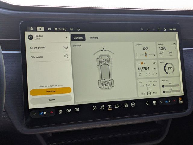Electric Motor,All Wheel Drive,Tow Hitch,Active Suspension,Power Steering,ABS,4-Wheel Disc Brakes,Brake Assist,Aluminum Wheels,Sun/Moonroof,Heated Mirrors,Power Mirror(s),Integrated Turn Signal Mirrors,Power Folding Mirrors,Rear Defrost,Privacy Glass,Intermittent Wipers,Variable Speed Intermittent Wipers,Rain Sensing Wipers,Power Liftgate,Daytime Running Lights,Automatic Headlights,Headlights-Auto-Leveling,LED Headlights,Fog Lamps,Automatic Highbeams,AM/FM Stereo,HD Radio,MP3 Capability,Steering Wheel Audio Controls,Rear Seat Audio Controls,Auxiliary Audio Input,Power Driver Seat,Power Passenger Seat,Bucket Seats,Heated Front Seat(s),Driver Adjustable Lumbar,Passenger Adjustable Lumbar,Cooled Front Seat(s),Pass-Through Rear Seat,Heated Rear Seat(s),Rear Bench Seat,Adjustable Steering Wheel,WiFi Hotspot,Heated Steering Wheel,Universal Garage Door Opener,Cruise Control,Adaptive Cruise Control,Climate Control,Multi-Zone A/C,Rear A/C,Premium Synthetic Seats,Auto-Dimming Rearview Mirror,Driver Vanity Mirror,Passenger Vanity Mirror,Driver Illuminated Vanity Mirror,Passenger Illuminated Visor Mirror,Floor Mats,Navigation System,Smart Device Integration,Immobilizer,Cruise Control Steering Assist,Stability Control,Front Side Air Bag,Telematics,Requires Subscription,Rear Parking Aid,Blind Spot Monitor,Lane Keeping Assist,Aerial View Display System,Front Collision Mitigation,Front Collision Warning,Driver Monitoring,Tire Pressure Monitor,Driver Air Bag,Passenger Air Bag,Front Head Air Bag,Rear Head Air Bag,Passenger Air Bag Sensor,Knee Air Bag,Child Safety Locks