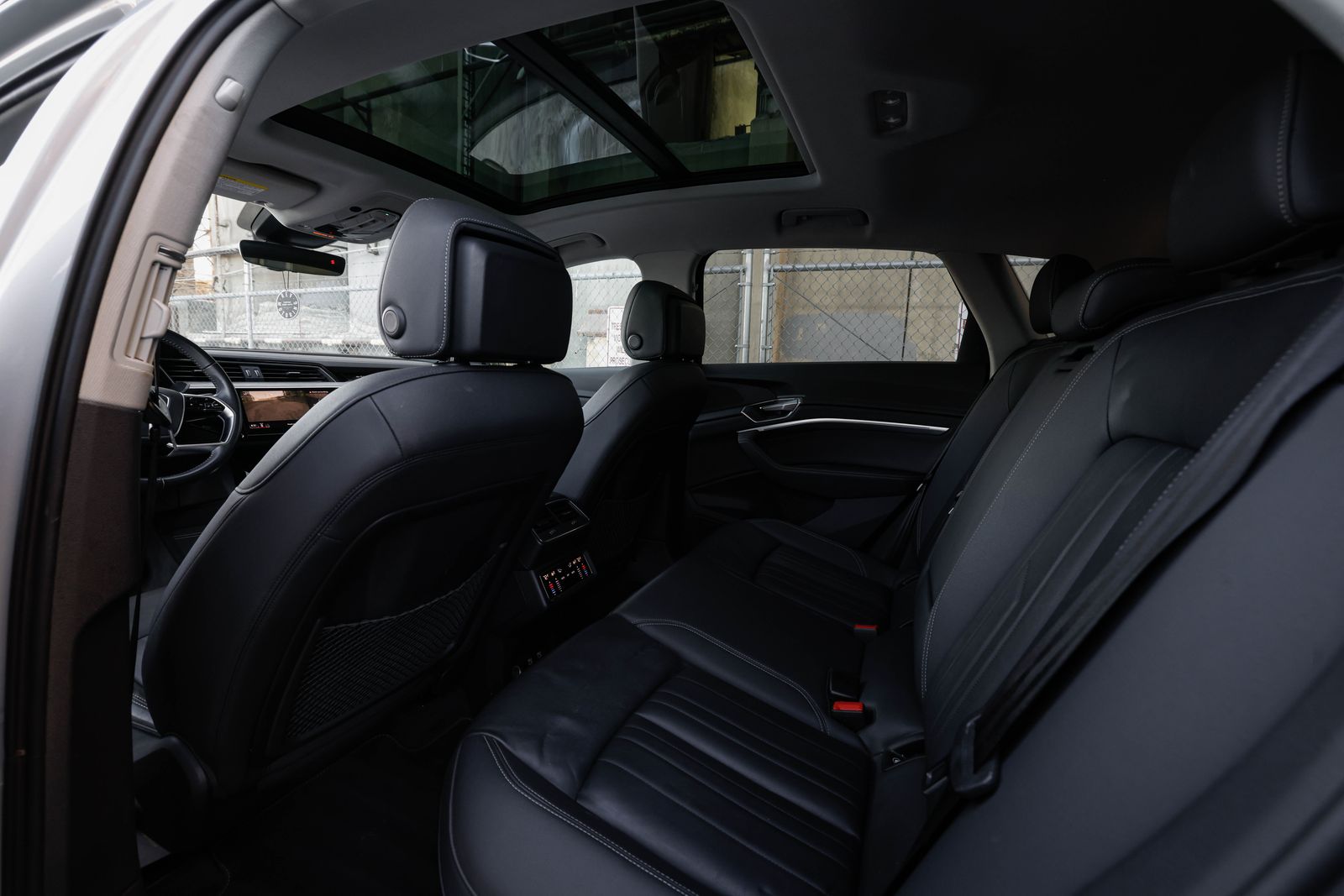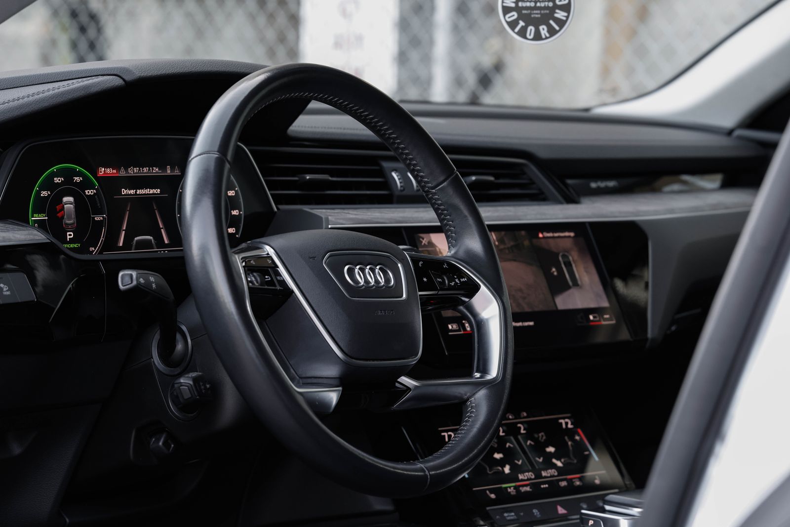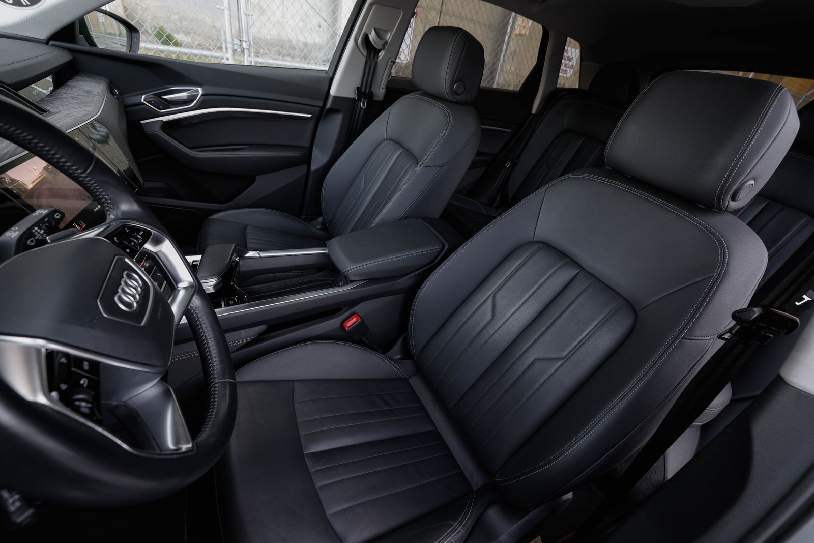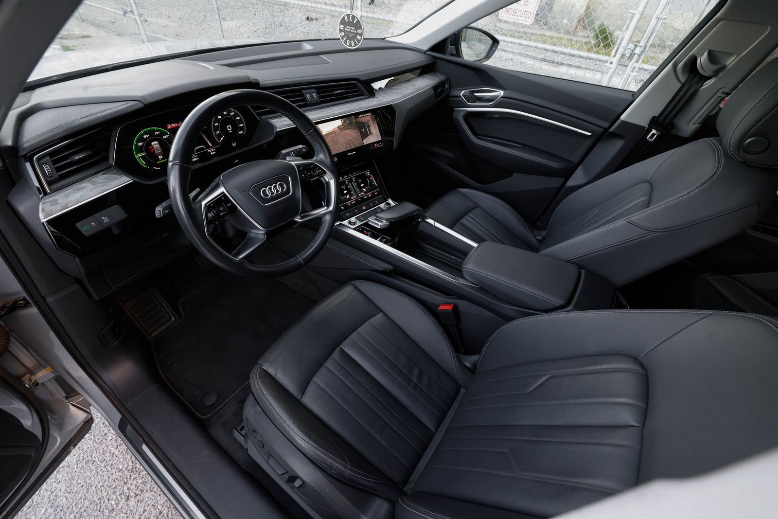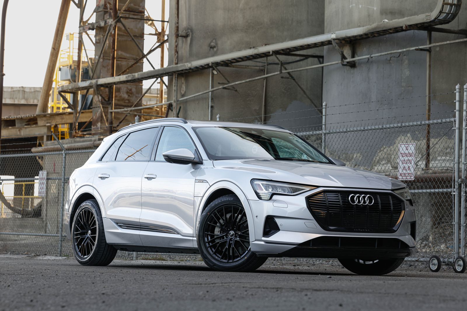 Clean title, single-owner e-tron quattro (AWD) in Florette Silver metallic with Black leather interior. 95 kWh battery w/ active liquid cooling and dual asynchronous electric motors w/ adjustable regenerative braking system, makes 402hp and 490ft. lbs. torque. 77 MPGe with estimated top range of 218 miles.