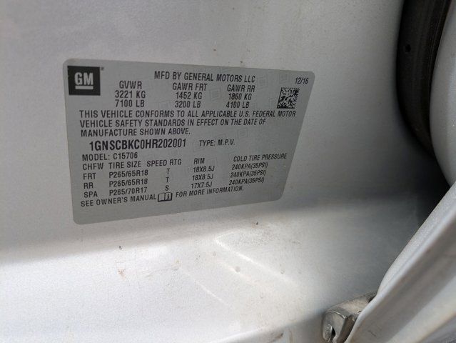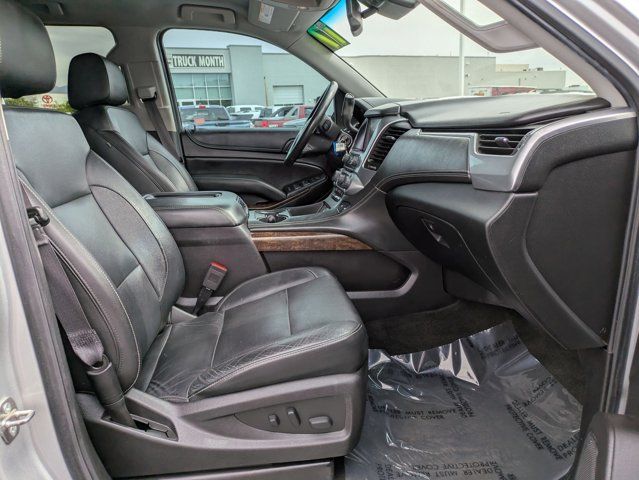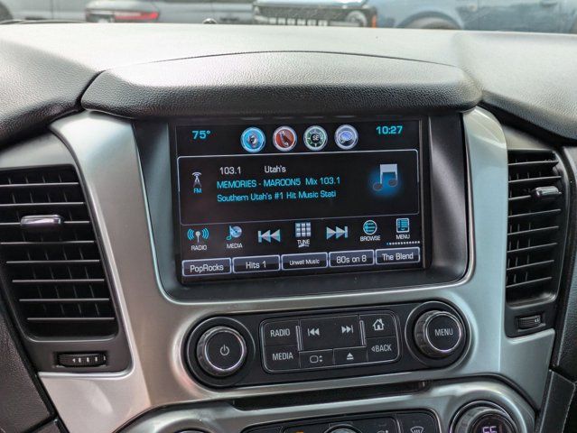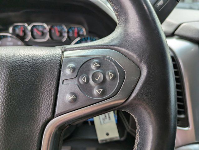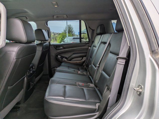 LICENSE PLATE FRONT MOUNTING PACKAGE,TIRES P265/65R18 ALL-SEASON BLACKWALL (STD),REAR AXLE 3.08 RATIO,SEATING FRONT BUCKET WITH LEATHER-APPOINTED SEATING heated seat cushions and seat backs 10-way power driver and passenger seat includes 6-way power cushions driver seat 2-position memory 2-way power lumbar control and power recline (STD),TRANSMISSION 6-SPEED AUTOMATIC ELECTRONICALLY CONTROLLED with overdrive and tow/haul mode (STD),SUSPENSION PACKAGE PREMIUM SMOOTH RIDE (STD),ENGINE 5.3L ECOTEC3 V8 WITH ACTIVE FUEL MANAGEMENT DIRECT INJECTION AND VARIABLE VALVE TIMING includes aluminum block construction (355 hp [265 kW] @ 5600 rpm 383 lb-ft of torque [518 N-m] @ 4100 rpm) (STD),PAINT SCHEME SOLID APPLICATION,SILVER ICE METALLIC,LT PREFERRED EQUIPMENT GROUP Includes Standard Equipment,DRIVER INFORMATION CENTER 4.2 DIAGONAL MULTI-COLOR,WHEELS 18 X 8.5 (45.7 CM X 21.6 CM) ALUMINUM WITH HIGH-POLISHED FINISH (STD),JET BLACK LEATHER-APPOINTED SEAT TRIM,E85 FLEXFUEL CAPABLE,AUDIO SYSTEM CHEVROLET MYLINK RADIO WITH NAVIGATION AND 8 DIAGONAL COLOR TOUCH-SCREEN AM/FM stereo with seek-and-scan and digital clock includes Bluetooth streaming audio for music and select phones; voice-activated technology for radio and phone; and Shop with the ability to browse select and install apps to your vehicle. You can customize your content with audio weather and more; featuring Apple CarPlay and Android Auto capability for compatible phone; 5 USB ports and 1 auxiliary jack,Lane Departure Warning,Lane Keeping Assist,Front Collision Mitigation,Front Collision Warning,Automatic Highbeams,Locking/Limited Slip Differential,Rear Wheel Drive,Tow Hitch,Power Steering,Aluminum Wheels,Tires - Front All-Season,Tires - Rear All-Season,Conventional Spare Tire,Conventional Spare Tire,Running Boards/Side Steps,Automatic Highbeams,Heated Mirrors,Power Mirror(s),Privacy Glass,Intermittent Wipers,Variable Speed Intermittent Wipers,Rain Sensing Wipers,Intermittent Wipers,Remote Trunk Release,Power Liftgate,AM/FM Stereo,MP3 Capability,Bluetooth Connection,Auxiliary Audio Input,Smart Device Integration,CD Player,MP3 Capability,Premium Sound System,HD Radio,Bluetooth Connection,Telematics,WiFi Hotspot,Requires Subscription,Power Driver Seat,Power Passenger Seat,Leather Seats,Bucket Seats,Heated Front Seat(s),Driver Adjustable Lumbar,Passenger Adjustable Lumbar,Seat Memory,Leather Seats,Power Passenger Seat,Seat Memory,Pass-Through Rear Seat,Rear Bench Seat,3rd Row Seat,Pass-Through Rear Seat,Auxiliary Audio Input,Floor Mats,Adjustable Steering Wheel,Leather Steering Wheel,Cruise Control,Steering Wheel Audio Controls,Power Door Locks,Keyless Entry,Power Door Locks,Remote Engine Start,Power Windows,Cruise Control,Universal Garage Door Opener,Adjustable Pedals,Climate Control,Multi-Zone A/C,A/C,Rear A/C,Rear Defrost,Auto-Dimming Rearview Mirror,ABS,4-Wheel Disc Brakes,Brake Assist,Brake Assist,Front Collision Mitigation,Front Collision Warning,Traction Control,Stability Control,Brake Assist,Daytime Running Lights,Automatic Headlights,Driver Restriction Features,Driver Air Bag,Passenger Air Bag,Front Side Air Bag,Front Head Air Bag,Rear Head Air Bag,Passenger Air Bag Sensor,Child Safety Locks,Telematics,Navigation from Telematics,Requires Subscription,Rear Parking Aid,Back-Up Camera,Front Collision Warning,Lane Departure Warning,Lane Keeping Assist,Tire Pressure Monitor,Security System