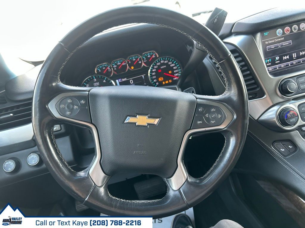 4WD, Jet Black Leather, 18'' x 8.5'' Aluminum Wheels, 1st & 2nd Row Color-Keyed Carpeted Floor Mats, 2nd Row 60/40 Split-Folding Manual Bench, 2nd Row Manual Bucket Seats, 3.08 Rear Axle Ratio, 3rd Row Manual 60/40 Split-Folding Fold Flat Bench, 3rd row seats: split-bench, 4-Wheel Antilock Disc Brakes w/Brake Assist, 4-Wheel Disc Brakes, 5 12-Volt Auxiliary Power Outlets, 9 Speakers, ABS brakes, Adjustable pedals, Air Conditioning, Alloy wheels, AM/FM radio: SiriusXM, Apple CarPlay/Android Auto, Auto High-beam Headlights, Auto-Dimming Inside Rear-View Mirror, Auto-dimming Rear-View mirror, Automatic temperature control, Black Assist Steps, Bluetooth® For Phone, Bose Premium 9-Speaker System, Brake assist, Bumpers: body-color, Cargo Net, CD player, Color-Keyed Carpeting Floor Covering, Compass, Delay-off headlights, Driver door bin, Driver Inboard & Front Passenger Airbags, Driver vanity mirror, Dual front impact airbags, Dual front side impact airbags, Electronic Cruise Control w/Set & Resume Speed, Electronic Stability Control, Emergency communication system: OnStar Guidance, Enhanced Driver Alert Package (Y86), Extended-Range Remote Keyless Entry, Exterior Parking Camera Rear, Floor Console, Forward Collision Alert, Front anti-roll bar, Front Bucket Seats, Front Center Armrest, Front dual zone A/C, Front Heated Reclining Bucket Seats, Front Passenger 6-Way Power Seat Adjuster, Front reading lights, Front wheel independent suspension, Fully automatic headlights, Garage door transmitter, HD Radio, Heated door mirrors, Heated front seats, Illuminated entry, IntelliBeam Headlamps, Lane Keep Assist w/Lane Departure Warning, Leather-Appointed Seat Trim, Leather-Wrapped Steering Wheel, License Plate Front Mounting Package, Low Speed Forward Automatic Braking, Low tire pressure warning, Memory seat, Memory Settings, Occupant sensing airbag, OnStar Basic Plan For 5 Years, Outside temperature display, Overhead airbag, Overhead console, Panic alarm, Passenger door bin, Passenger vanity mirror, Pedal memory, Power door mirrors, Power driver seat, Power Liftgate, Power passenger seat, Power steering, Power Sunroof, Power windows, Power-Adjustable Accelerator & Brake Pedals, Preferred Equipment Group 1LT, Premium audio system: Chevrolet MyLink, Premium Smooth Ride Suspension Package, Radio: Chevrolet MyLink AM/FM Stereo, Rain sensing wipers, Rear air conditioning, Rear anti-roll bar, Rear Park Assist w/Audible Warning, Rear reading lights, Rear seat center armrest, Rear window defroster, Rear window wiper, Remote keyless entry, Remote Vehicle Start, Roof rack: rails only, Roof-Mounted Luggage Rack Side Rails, Security system, Single-Slot CD/MP3 Player, SiriusXM Satellite Radio, Speed control, Speed-sensing steering, Split folding rear seat, Spoiler, Steering wheel mounted audio controls, Tachometer, Telescoping steering wheel, Tilt steering wheel, Traction control, Trip computer, Universal Home Remote, Variably intermittent wipers, Voltmeter, 4WD, Jet Black Leather.
