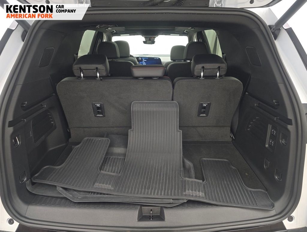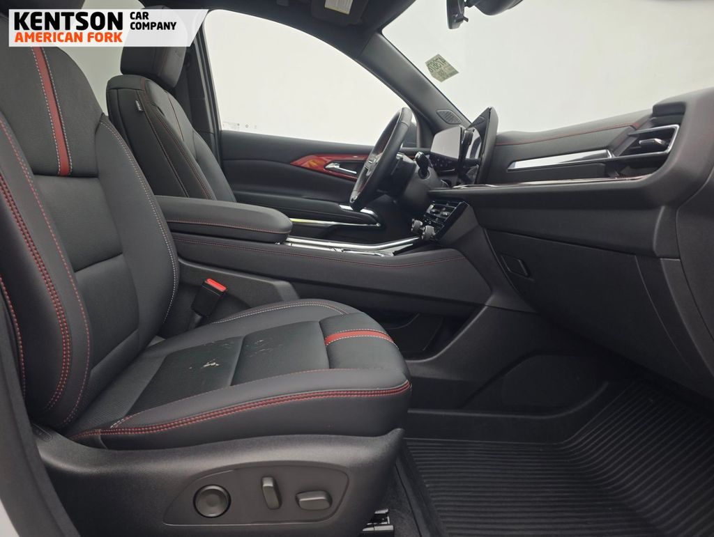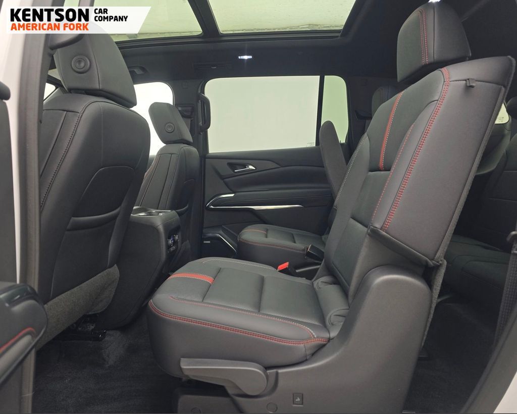 12 Speakers, 3rd row seats: split-bench, 4-Wheel Disc Brakes, 6-Way Power Front Passenger Seat Adjuster, 8-Way Power Driver Seat Adjuster, ABS brakes, Air Conditioning, Alloy wheels, AM/FM radio: SiriusXM with 360L, Apple CarPlay/Android Auto, Auto High-beam Headlights, Auto tilt-away steering wheel, Auto-dimming door mirrors, Automatic temperature control, Bose Premium 12-Speaker Audio System Feature, Brake assist, Bumpers: body-color, Child-Seat-Sensing Airbag, Compass, Delay-off headlights, Driver 4-Way Power Lumbar Seat Adjuster, Driver door bin, Driver vanity mirror, Dual front impact airbags, Dual front side impact airbags, Electronic Stability Control, Emergency communication system: OnStar, Exterior Parking Camera Rear, Four wheel independent suspension, Front anti-roll bar, Front Bucket Seats, Front Center Armrest, Front dual zone A/C, Front Passenger 4-Way Power Lumbar Seat Adjuster, Front reading lights, Fully automatic headlights, Garage door transmitter, Heated door mirrors, Heated front seats, Heated rear seats, Heated steering wheel, Illuminated entry, Low tire pressure warning, Memory seat, Navigation System, Occupant sensing airbag, Outside temperature display, Overhead airbag, Overhead console, Panic alarm, Passenger door bin, Passenger vanity mirror, Perforated Leather-Appointed Seat Trim, Power door mirrors, Power driver seat, Power Liftgate, Power passenger seat, Power steering, Power windows, Radio data system, Radio: : Audio System w/17.7'' Diagonal Display, Rain sensing wipers, Rear air conditioning, Rear anti-roll bar, Rear reading lights, Rear window defroster, Rear window wiper, Remote keyless entry, Security system, SiriusXM with 360L Trial Subscription, Speed control, Speed-sensing steering, Spoiler, Sport steering wheel, Steering wheel memory, Steering wheel mounted audio controls, Tachometer, Telescoping steering wheel, Tilt steering wheel, Traction control, Trip computer, Turn signal indicator mirrors, Variably intermittent wipers, Ventilated front seats, Voltmeter, and Wheels: 22'' High Gloss Black Painted Aluminum.
