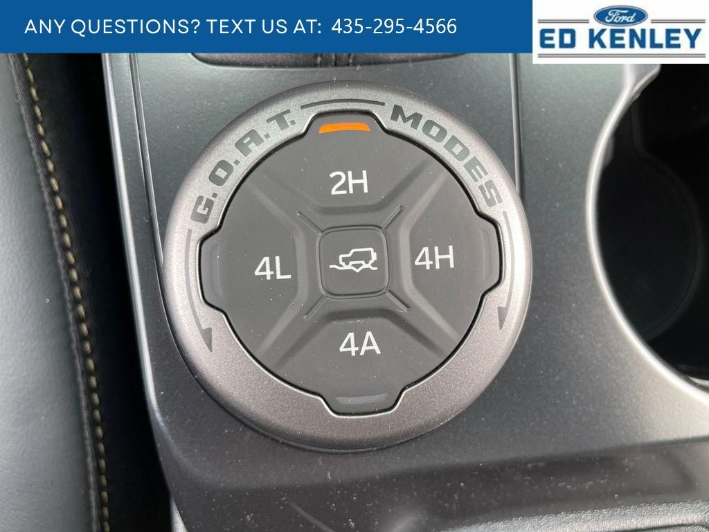 SYNC 4 AppLink/Apple CarPlay/Android Auto smart device wireless mirroring,Pre-Collision Assist with Pedestrian Detection,Pre-Collision Assist with Pedestrian Detection,Ford Connect mobile hotspot internet access,Rear mounted camera,Predictive brake assist system,Cruise control with steering wheel mounted controls,Heated driver and front passenger seats,Manual convertible roof,Primary monitor touchscreen,Automatic full-time 4WD,EcoBoost 2.7L V-6 port/direct injection, DOHC, Ti-VCT variable valve control, twin turbo, regular unleaded, engine with 315HP,EcoBoost 2.7L V-6 DOHC,SYNC 4 with Enhanced Voice Recognition (Alexa-Built-In) built-in virtual assistant,MyKey restricted driving mode/alerts,Intelligent Access with hands-free access and push button start,Smart device remote start,Push-button,Bluetooth wireless audio streaming,Gauge cluster display size: 12.00,Full gauge cluster screen,Remote reservoir shock absorbers,Auto High Beam auto high-beam headlights,Selectable Terrain Modes,SYNC 4 handsfree wireless device connectivity,Trailer sway control,SYNC 4 external memory control,Internet radio capability,Digital/analog instrumentation display,Configurable instrumentation gauges,AdvanceTrac w/Roll Stability Control electronic stability control system with anti-roll,Hill Descent Control,Hill Start Assist,Rear seat check warning,LED daytime running lights,LED brake lights,LED front fog lights,Leather and metal-look steering wheel,Post Collision Braking automatic post-collision braking system,Manual reclining rear seats,Active grille shutters,911 Assist emergency SOS system via mobile device,Manual rear child safety door locks,FordPass App mobile app access,Heated driver and passenger side door mirrors,Driver selectable steering effort,Manual tilting steering wheel,Manual telescopic steering wheel