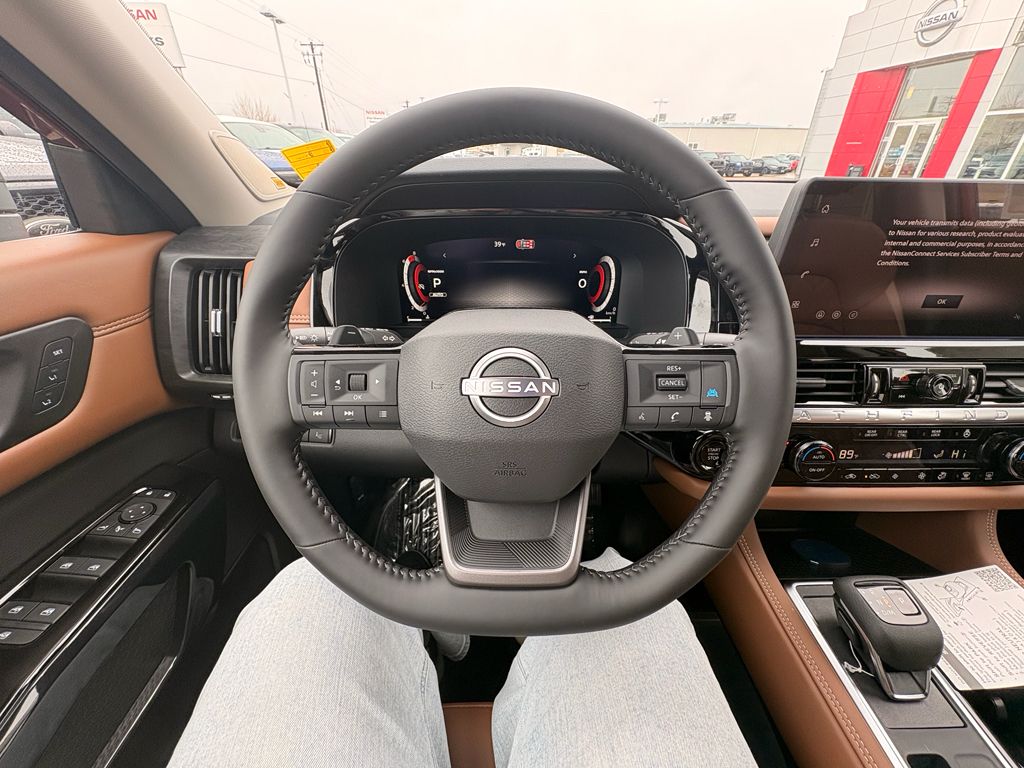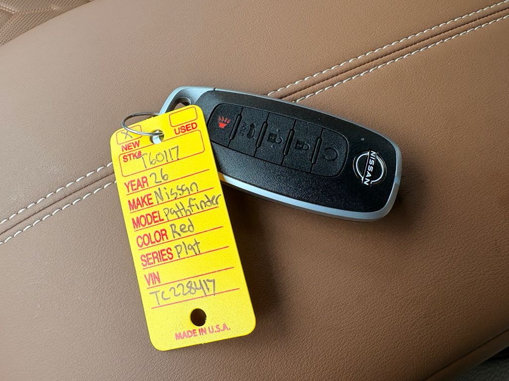 It features a hands-free Bluetooth phone system. This mid-size suv offers Android Auto for seamless smartphone integration. See what's behind you with the back up camera on this vehicle. This vehicle offers Apple CarPlay for seamless connectivity. Never get into a cold vehicle again with the remote start feature on the vehicle. This 2026 Nissan Pathfinder is pure luxury with a heated steering wheel. The leather seats in this mid-size suv are a must for buyers looking for comfort, durability, and style. Load groceries and much more with ease into the Nissan Pathfinder thanks to the power liftgate. It is equipped with all wheel drive. This 2026 Nissan Pathfinder has a V6, 3.5L high output engine. Set the temperature exactly where you are most comfortable in this unit. The fan speed and temperature will automatically adjust to maintain your preferred zone climate. This 2026 Nissan Pathfinder excites both driver and bystanders with a polished red exterior with racy lines.