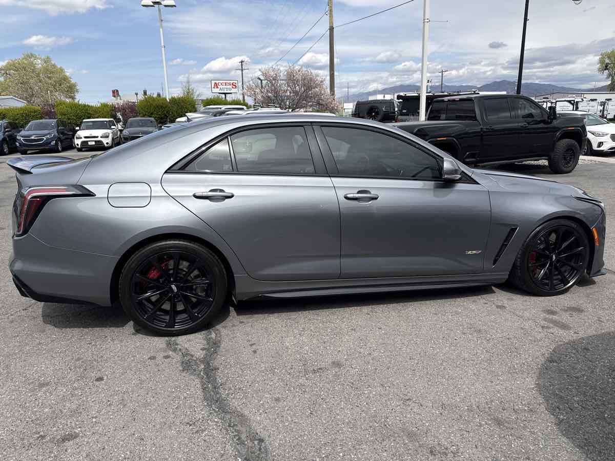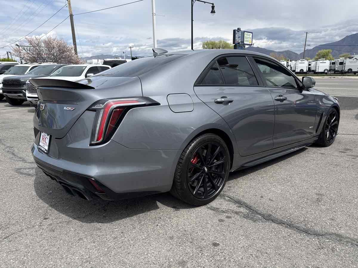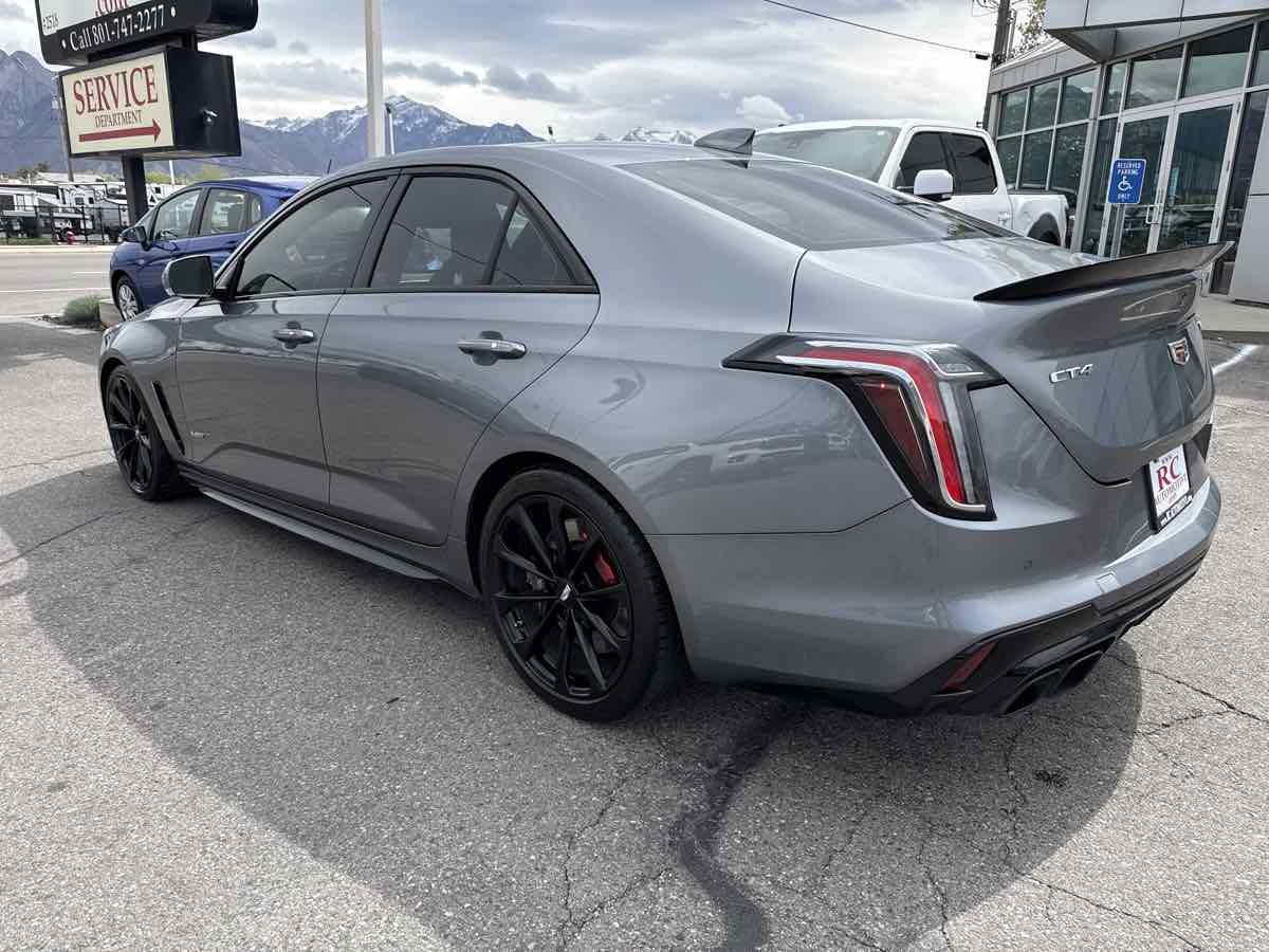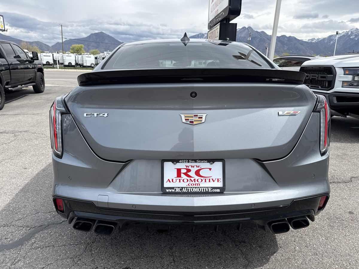 CLEAN VEHICLE HISTORY- MOONROOF- BLUETOOTH HANDSFREE- GPS NAVIGATION- APPLE CAR PLAY- LOCAL TRADE-IN- REAR BACK UP CAMERA- LEATHER INTERIOR- HEATED/COOLED SEATS- THIS VEHICLE QUAILIFES FOR AN EXTENDED WARRANTY UP TO ADDITIONAL 100K MILES- WE TAKE ALL TRADES AND WORK WITH ALL CREDIT UNIONS TO ENSURE THE BEST INTEREST RATE POSSIBLE- CALL US AT 801-268-9911 AND ONE OF OUR FRIENDLY STAFF WILL TAKE CARE OF ALL OF YOUR NEEDS- VISIT US AT WWW.RCAUTOMOTIVE.COM FOR A STRESS FREE AND ENJOYABLE PURCHASE ON YOUR FUTURE VEHICLE- $74-015.00 MSRP- 18" Aluminum Alloy Wheels- 3.73 Axle Ratio- Adaptive Cruise Control- Adaptive Remote Start- Air Conditioning- Air Ionizer- AKG Audio System Feature- Automatic Emergency Braking- Automatic temperature control- Black Wheel Locks (LPO) (DISC)- Black Wheel Lug Nuts (LPO) (DISC)- Climate Package- Driver Assist Package- Driver Power Lumbar Massage Seat- Electronic Cruise Control w/Set & Resume Speed- Enhanced Automatic Emergency Braking- Exterior Parking Camera Rear- Front dual zone A/C- Front Passenger Power Lumbar Massage Seat- HD Radio- Head-Up Display- Heated Driver & Front Passenger Seats- Heated Steering Wheel- High Performance Steering Wheel- LED Reflective Windshield Collision Alert- Memory seat- Navigation System- Panic alarm- Power driver seat- Power Sunroof w/Express Open & Venting- Power windows- Preferred Equipment Group 1SP- Radio: Cadillac User Experience w/Embedded Nav- Rear window defroster- Red Front & Rear Calipers- Remote keyless entry- Reverse Automatic Braking- SiriusXM w/360L- Steering wheel mounted audio controls- Sueded Microfiber-Wrapped Interior Trim Package- Technology Package- Ventilated Driver & Front Passenger Seats. Clean CARFAX. 2022 Cadillac CT4 V-Series Satin Steel Metallic RWD 10-Speed Automatic 3.6L V6
