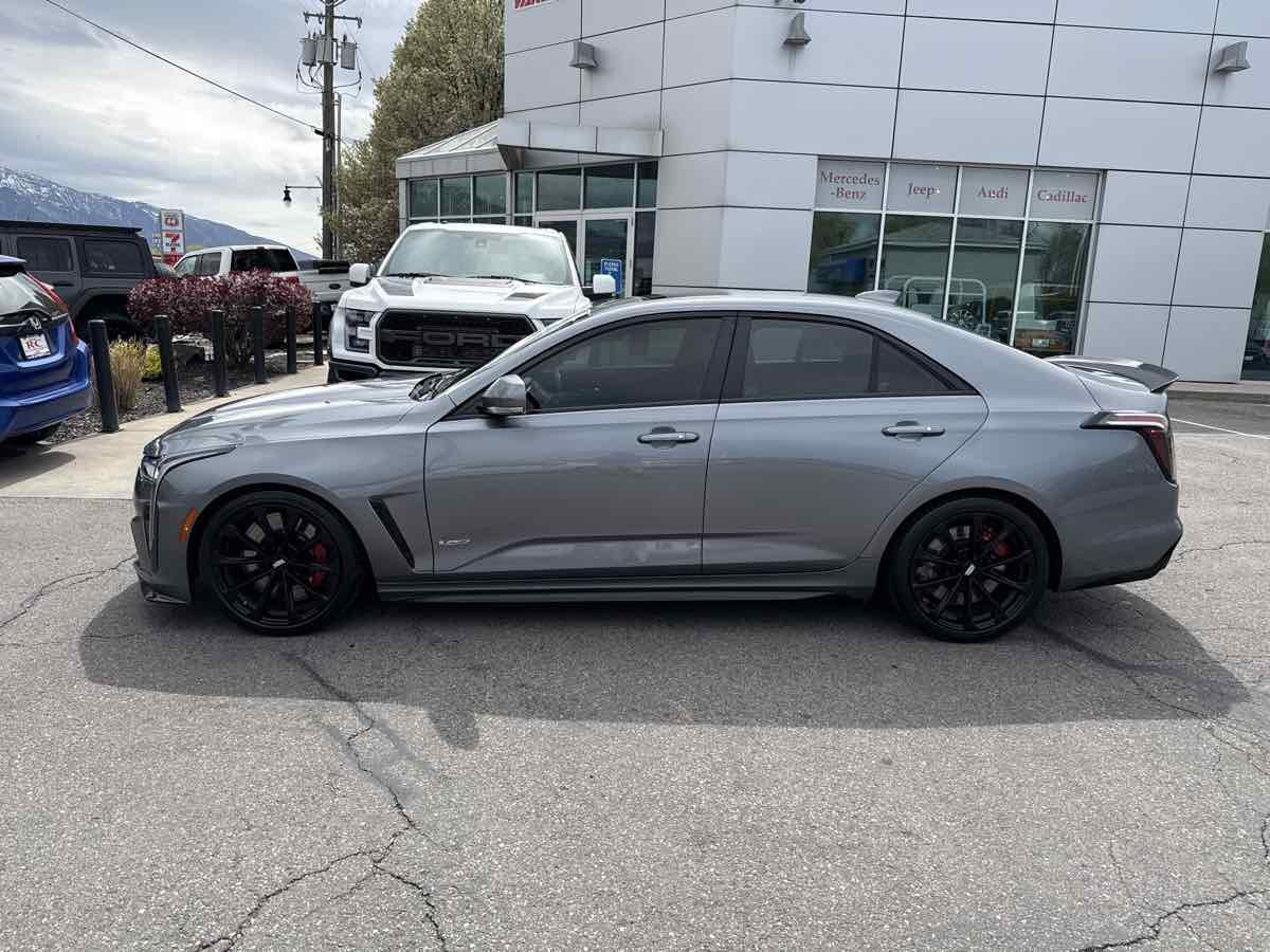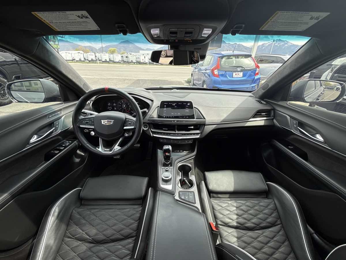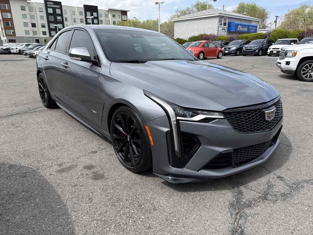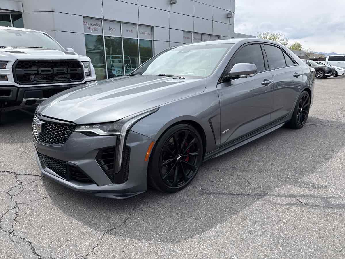 CLEAN VEHICLE HISTORY- MOONROOF- BLUETOOTH HANDSFREE- GPS NAVIGATION- APPLE CAR PLAY- LOCAL TRADE-IN- REAR BACK UP CAMERA- LEATHER INTERIOR- HEATED/COOLED SEATS- THIS VEHICLE QUAILIFES FOR AN EXTENDED WARRANTY UP TO ADDITIONAL 100K MILES- WE TAKE ALL TRADES AND WORK WITH ALL CREDIT UNIONS TO ENSURE THE BEST INTEREST RATE POSSIBLE- CALL US AT 801-268-9911 AND ONE OF OUR FRIENDLY STAFF WILL TAKE CARE OF ALL OF YOUR NEEDS- VISIT US AT WWW.RCAUTOMOTIVE.COM FOR A STRESS FREE AND ENJOYABLE PURCHASE ON YOUR FUTURE VEHICLE- $74-015.00 MSRP- 18" Aluminum Alloy Wheels- 3.73 Axle Ratio- Adaptive Cruise Control- Adaptive Remote Start- Air Conditioning- Air Ionizer- AKG Audio System Feature- Automatic Emergency Braking- Automatic temperature control- Black Wheel Locks (LPO) (DISC)- Black Wheel Lug Nuts (LPO) (DISC)- Climate Package- Driver Assist Package- Driver Power Lumbar Massage Seat- Electronic Cruise Control w/Set & Resume Speed- Enhanced Automatic Emergency Braking- Exterior Parking Camera Rear- Front dual zone A/C- Front Passenger Power Lumbar Massage Seat- HD Radio- Head-Up Display- Heated Driver & Front Passenger Seats- Heated Steering Wheel- High Performance Steering Wheel- LED Reflective Windshield Collision Alert- Memory seat- Navigation System- Panic alarm- Power driver seat- Power Sunroof w/Express Open & Venting- Power windows- Preferred Equipment Group 1SP- Radio: Cadillac User Experience w/Embedded Nav- Rear window defroster- Red Front & Rear Calipers- Remote keyless entry- Reverse Automatic Braking- SiriusXM w/360L- Steering wheel mounted audio controls- Sueded Microfiber-Wrapped Interior Trim Package- Technology Package- Ventilated Driver & Front Passenger Seats. Clean CARFAX. 2022 Cadillac CT4 V-Series Satin Steel Metallic RWD 10-Speed Automatic 3.6L V6