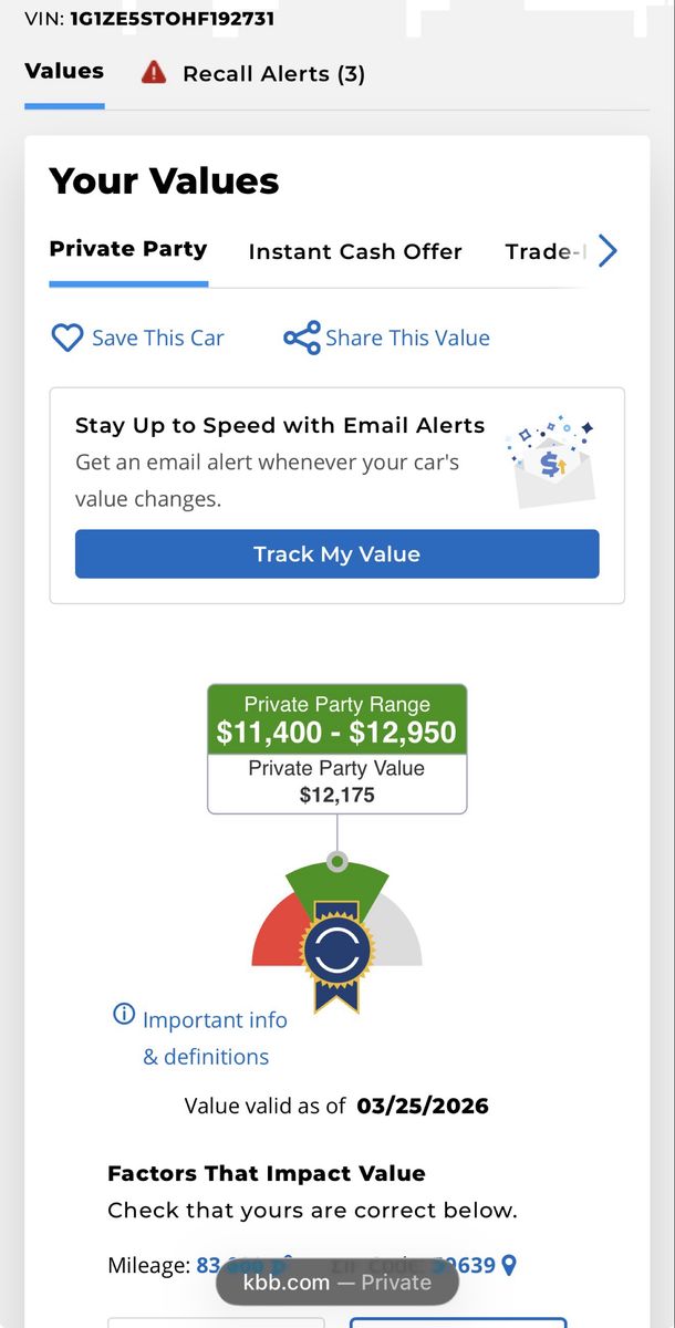 📊 KBB Private Party Range: $11,400 – $12,950
