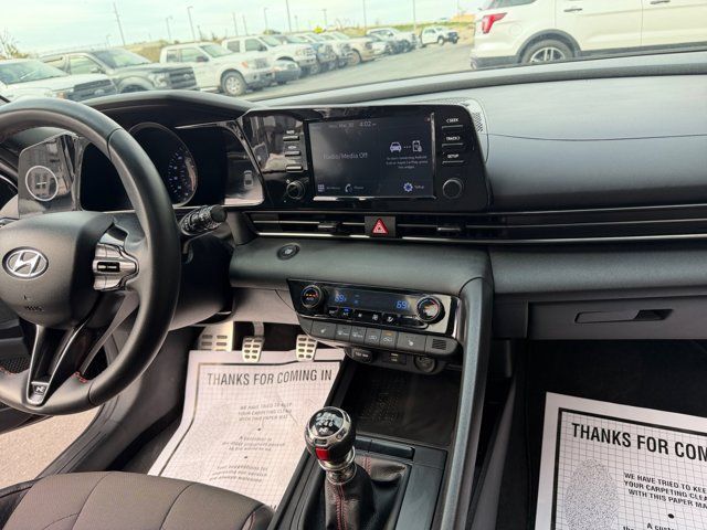 Recent Arrival!Odometer is 1325 miles below market average!2021 Hyundai Elantra N Line25/34 City/Highway MPGCall (801) 563-4011 today to schedule your test drive!Awards:* NACTOY 2021 North American Car of the YearOption Group 01, Preferred Accessory Package (Cargo Hook, Cargo Side Bins, and First Aid Kit), 18 x 7.5J Alloy Wheels, 4-Wheel Disc Brakes, 6 Speakers, ABS brakes, Air Conditioning, Alloy wheels, AM/FM radio: SiriusXM, Apple CarPlay & Android Auto, Auto High-beam Headlights, Automatic temperature control, Brake assist, Bumpers: body-color, Carpeted Floor Mats, Combination Cloth & Leather Seating Surfaces, Delay-off headlights, Driver door bin, Driver vanity mirror, Dual front impact airbags, Dual front side impact airbags, Electronic Stability Control, Emergency communication system: Blue Link Connected Car Service (3-year complimentary subscription), Exterior Parking Camera Rear, Four wheel independent suspension, Front anti-roll bar, Front Bucket Seats, Front Center Armrest, Front dual zone A/C, Front reading lights, Fully automatic headlights, Heated door mirrors, Heated front seats, Heated Front Sport Seats, Illuminated entry, Leather Shift Knob, Leather steering wheel, Low tire pressure warning, Occupant sensing airbag, Outside temperature display, Overhead airbag, Overhead console, Panic alarm, Passenger door bin, Passenger vanity mirror, Power door mirrors, Power driver seat, Power moonroof, Power steering, Power windows, Radio: AM/FM/HD/SiriusXM Display Audio, Rear anti-roll bar, Rear Bumper Applique, Rear seat center armrest, Rear window defroster, Remote keyless entry, Security system, Speed control, Speed-sensing steering, Split folding rear seat, Spoiler, Sport steering wheel, Steering wheel mounted audio controls, Tachometer, Telescoping steering wheel, Tilt steering wheel, Traction control, Trip computer, Variably intermittent wipers, and Wheel Locks.
