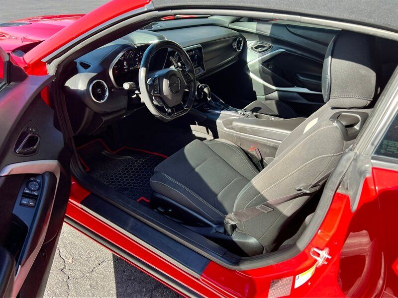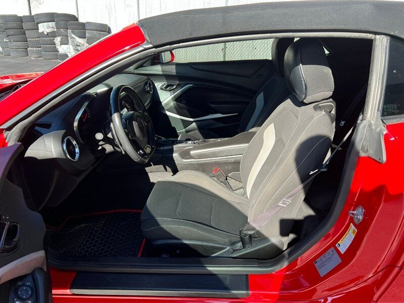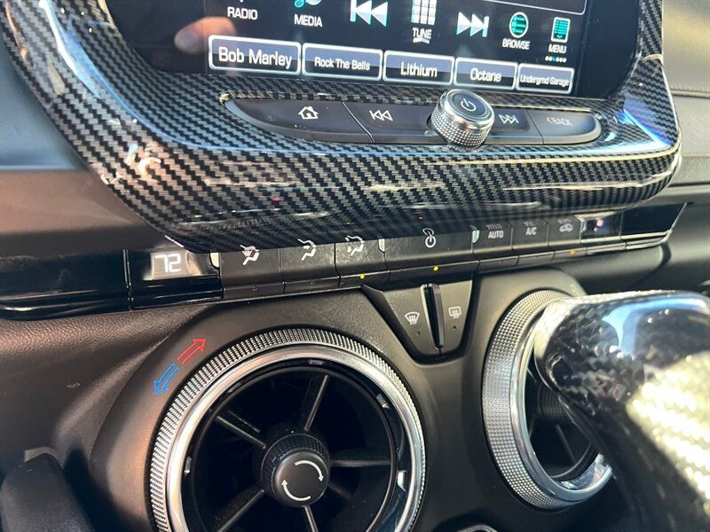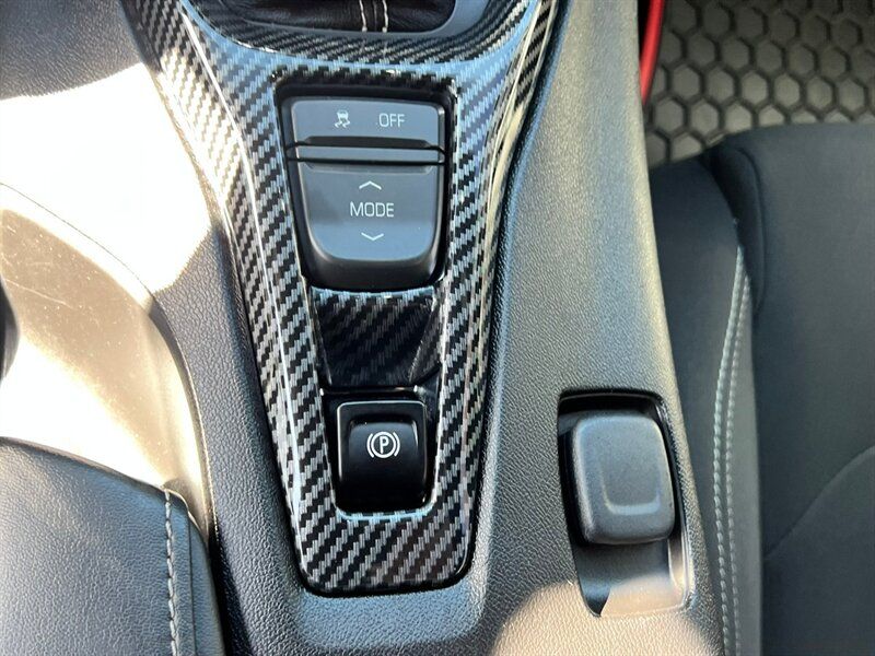 INSTALLED FEATURES: Air filtration, Front air conditioning: automatic climate control, Front air conditioning zones: single, Airbag deactivation: occupant sensing passenger, Front airbags: dual, Knee airbags: dual front, Side airbags: front / head protection chambers, Antenna type: diversity / mast, Auxiliary audio input: Bluetooth / iPod/iPhone / jack / USB, Internet radio app: iHeartRadio / Pandora, Radio: AM/FM / touch screen display / voice operated, Radio data system, Satellite radio: SiriusXM, Speed sensitive volume control, Total speakers: 6, ABS: 4-wheel, Braking assist, Electronic brakeforce distribution, Electronic parking brake, Front brake type: ventilated disc, Power brakes, Premium brakes: Brembo, Rear brake type: ventilated disc, Floor mat material: carpet, Floor material: carpet, Floor mats: front, Shift knob trim: leather, Steering wheel trim: leather, Capless fuel filler system, Center console: front console with armrest and storage, Cruise control, Cupholders: 2 / front, Multi-function remote: panic alarm / proximity entry system / trunk release, One-touch windows: 2, Power outlet(s): 12V front, Power steering: variable/speed-proportional, Push-button start, Reading lights: front, Rearview mirror: manual day/night, Steering wheel: tilt and telescopic, Steering wheel mounted controls: audio / cruise control / voice control, Storage: door pockets, Vanity mirrors: dual illuminating, Door handle color: body-color, Exhaust: dual tip, Exhaust tip color: stainless steel, Front bumper color: body-color, Grille color: black, Mirror color: body-color, Rear bumper color: body-color, Rear spoiler: wing, Rear spoiler color: body-color, Window trim: black, Connected in-car apps: app marketplace integration / Google POIs / Google search, Infotainment: MyLink, Infotainment screen size: 8 in., Smartphone integration: Android Auto / Apple CarPlay, Clock, Compass, Customizable instrument cluster, Digital odometer, Fuel economy display: MPG, Gauge: oil pressure / tachometer, Instrument cluster screen size: 8 in., Multi-function display, Trip odometer, Warnings and reminders: low fuel level / low oil level / maintenance due, Daytime running lights: LED, Headlights: auto delay off / auto on/off / HID/Xenon, Side mirror adjustments: power, Auxiliary oil cooler, Battery: maintenance-free, Battery saver, Drive mode selector, Limited slip differential: rear, Convertible rear window: glass, Convertible roof: power / remote operation / soft top, Camera system: rearview, Child seat anchors: LATCH system, Crumple zones: front / rear, Emergency interior trunk release, Programmable safety key, Rearview monitor: in dash, Front seatbelts: 3-point, Rear seatbelts: 3-point, Seatbelt pretensioners: front, Seatbelt warning sensor: front, Driver seat power adjustments: 8 / height / reclining, Front headrests: 2 / adjustable, Front seat type: sport bucket, Passenger seat power adjustments: 6 / height / reclining, Rear seat type: bench, Upholstery: cloth, Anti-theft system: alarm, Power door locks: anti-lockout, Stability control, Traction control, Front shock type: twin-tube gas, Front spring type: coil, Front stabilizer bar, Front struts: MacPherson, Front suspension classification: independent, Front suspension type: double ball joint, Rear shock type: twin-tube gas, Rear spring type: coil, Rear stabilizer bar, Rear suspension classification: independent, Rear suspension type: multi-link, Tuned suspension: sport, Driver assistance app: roadside assistance, Electronic messaging assistance: voice operated / with read function, Hands-free phone call integration: voice operated, Satellite communications: OnStar / voice guided directions, Smart device app function: horn/light operation / lock operation / maintenance status, Wi-Fi: hotspot, Wireless data link: Bluetooth, Run flat tires, Tire Pressure Monitoring System, Wheels: painted aluminum alloy, Front wipers: variable intermittent, Power windows: safety reverse, Window defogger: rear