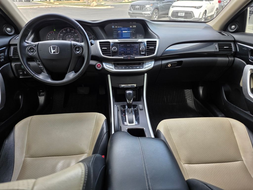 Experience the perfect blend of performance, comfort, and sophistication with the 2014 Honda Accord EX-L. Powered by a responsive yet fuel-efficient engine, this midsize sedan delivers a smooth, confident drive whether you're commuting or cruising the open road. Inside, youll find premium leather-trimmed seating, a power moonroof, and advanced technology like a touchscreen display, Bluetooth connectivity, and a premium audio system. With its sleek design, spacious interior, and Hondas legendary reliability, the Accord EX-L is built to elevate every journey!