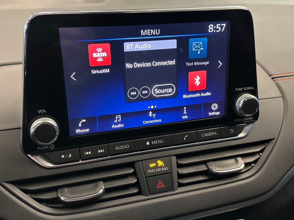 CVT with Xtronic, 19'' Alloy Wheels, 4-Wheel Disc Brakes, 6 Speakers, ABS brakes, Air Conditioning, Blind Spot Warning, Brake assist, Dual front impact airbags, Dual front side impact airbags, Electronic Stability Control, Four wheel independent suspension, Front anti-roll bar, Fully automatic headlights, Heated Front Seats, Heated Outside Mirrors, Knee airbag, NissanConnect featuring Apple CarPlay and Android Auto, Occupant sensing airbag, Overhead airbag, Panic alarm, Power driver seat, Power steering, Power windows, Radio: AM/FM Audio System, Rear anti-roll bar, Rear side impact airbag, Rear window defroster, Remote keyless entry, Security system, Single Panel Moonroof, Speed control, Speed-sensing steering, SR Premium Package, Steering wheel mounted audio controls, TPMS Sensors, Traction control.