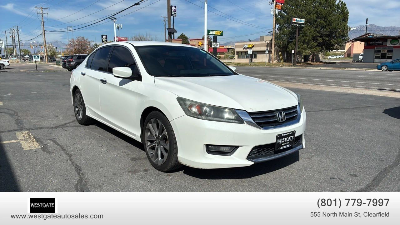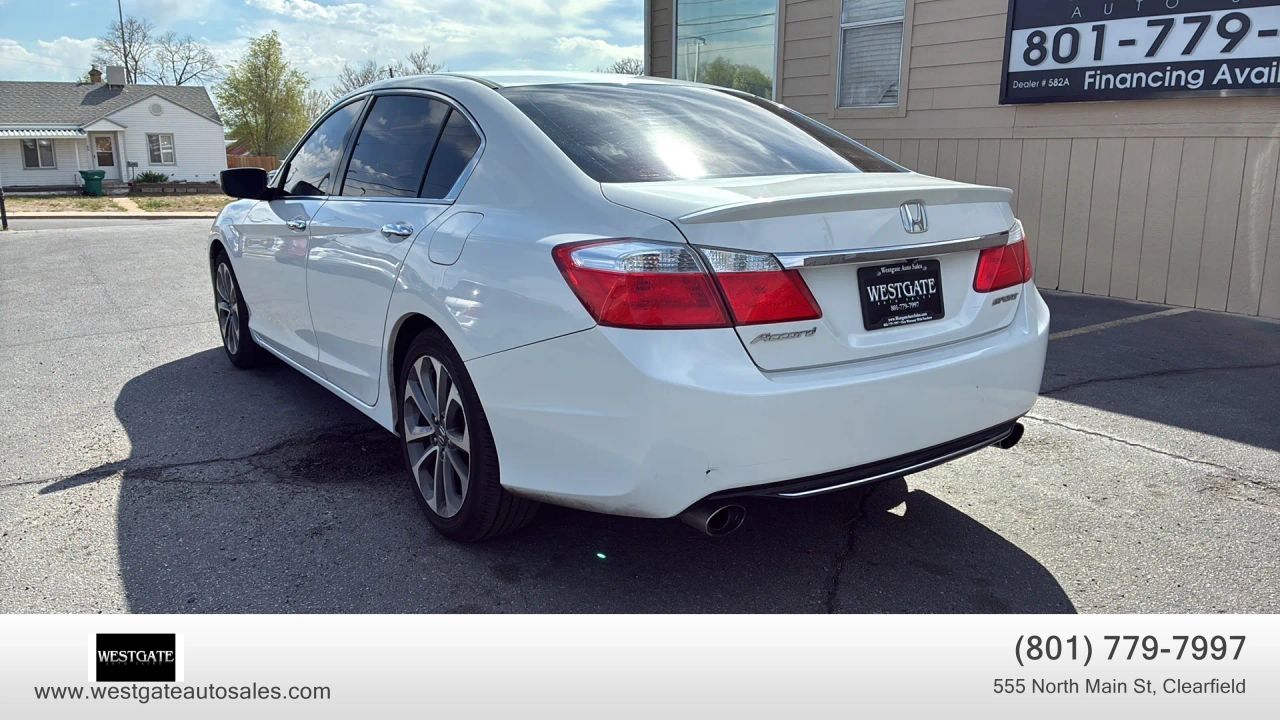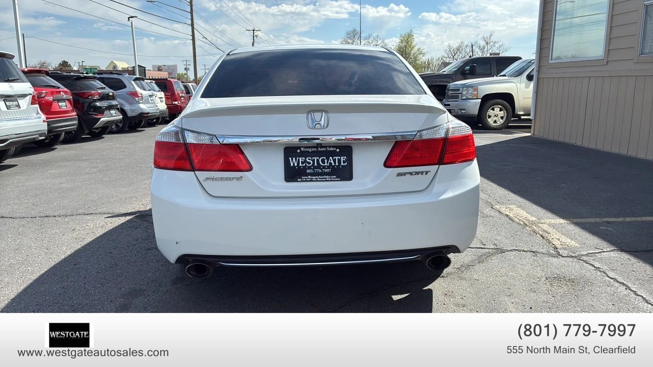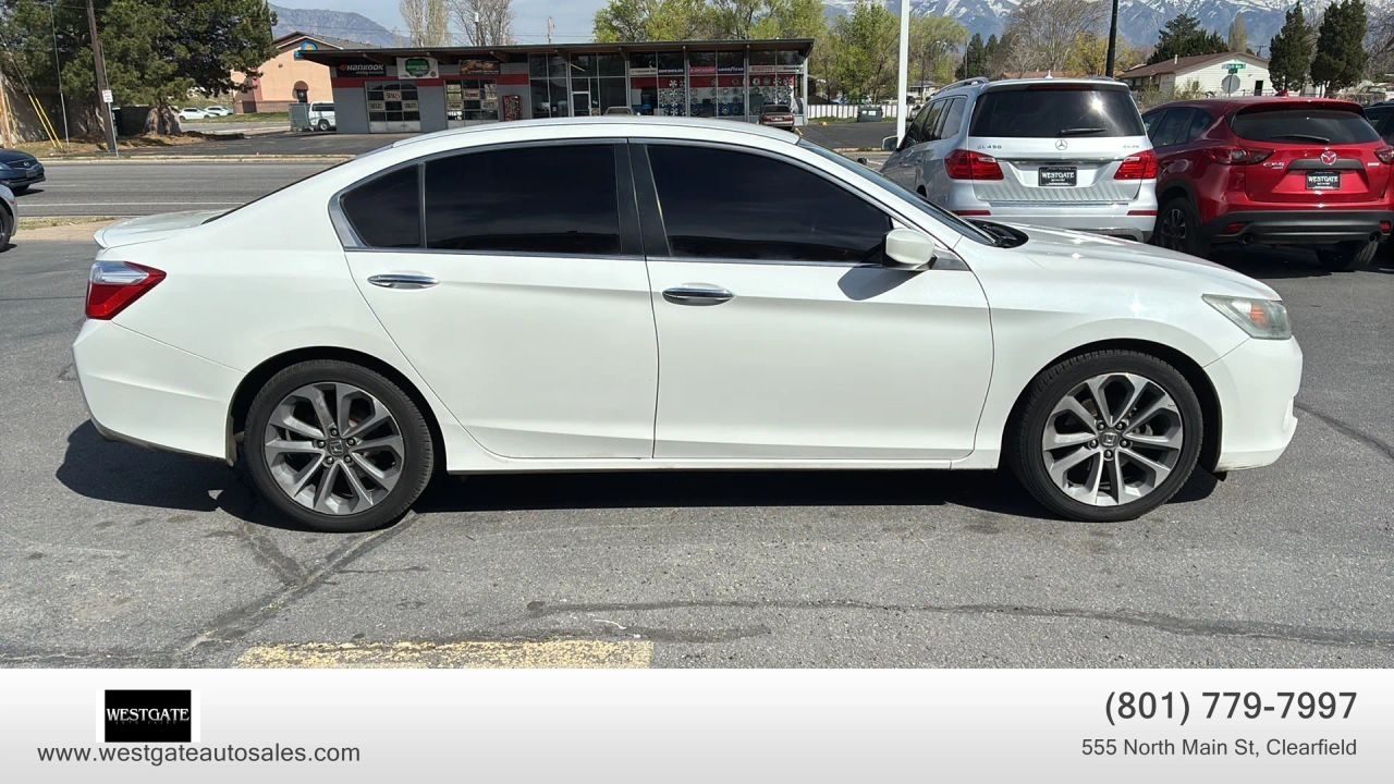 This clean title 2015 Honda Accord Sedan Sport with 146,000 miles is a premier choice for drivers seeking a reliable and stylish 4-door midsize car with a reputation for long-term value. Dressed in a sophisticated White Orchid Pearl exterior with a refined Black cloth interior, this Accord Sport stands out with its 18-inch alloy wheels and sleek chrome grille. This vehicle is powered by an efficient 4-cylinder engine that delivers an impressive 35 highway MPG and 26 city MPG, making it an ideal commuter car for those prioritizing fuel economy without sacrificing performance. The exterior is further enhanced by front fog lamps, auto-on/off projector beam halogen headlights, and a quasi-dual stainless steel exhaust with chrome finishers that provide a sporty aesthetic.