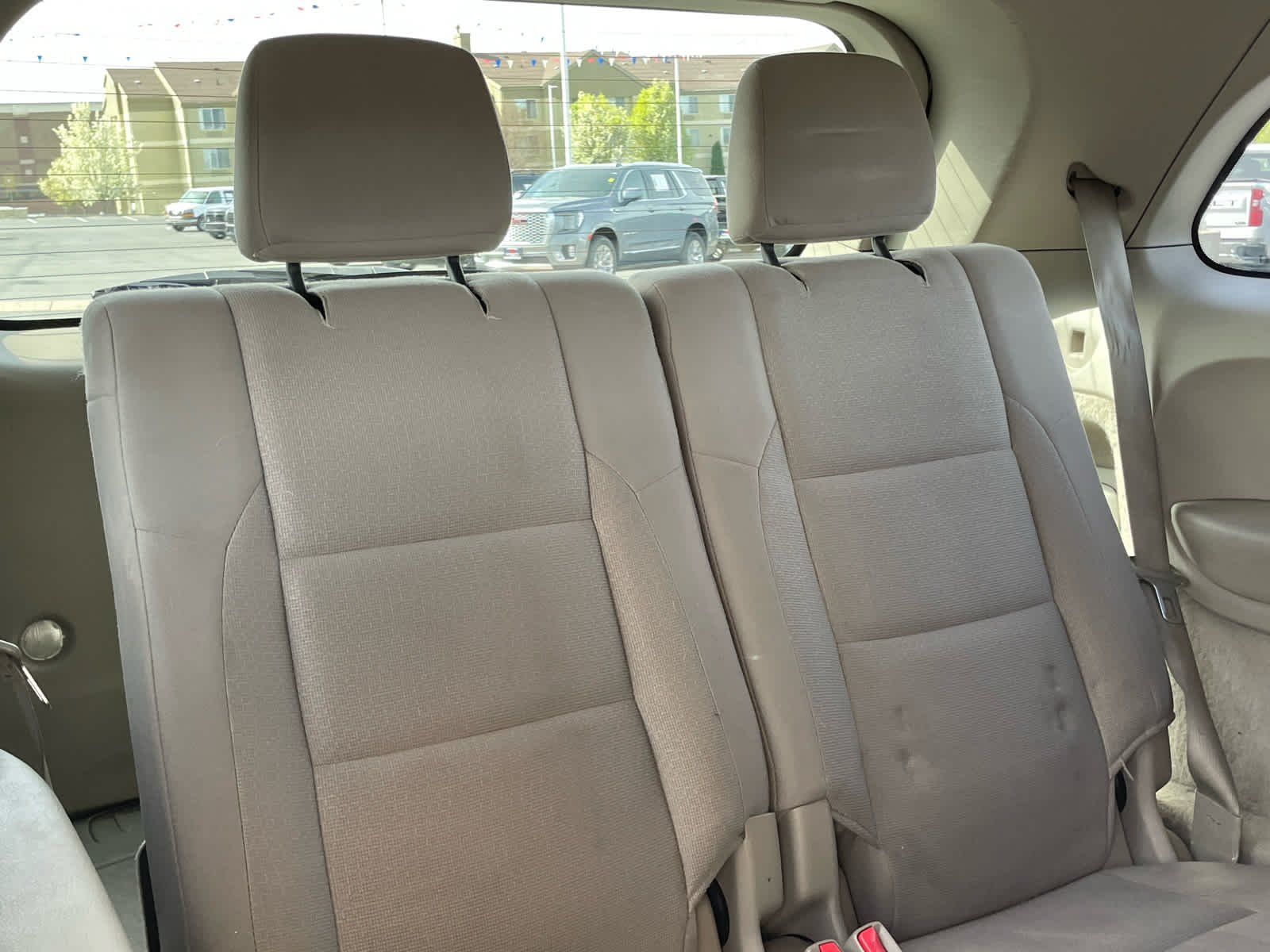 Third Row Seat, Rear Air, Satellite Radio, CD Player, Dual Zone A/C. Keyless Entry, Privacy Glass, Steering Wheel Controls, Child Safety Locks. Dodge SXT with Bright White exterior and Dark Graystone/Medium Graystone Interior interior features a V6 Cylinder Engine with 290 HP at 6400 RPM*.