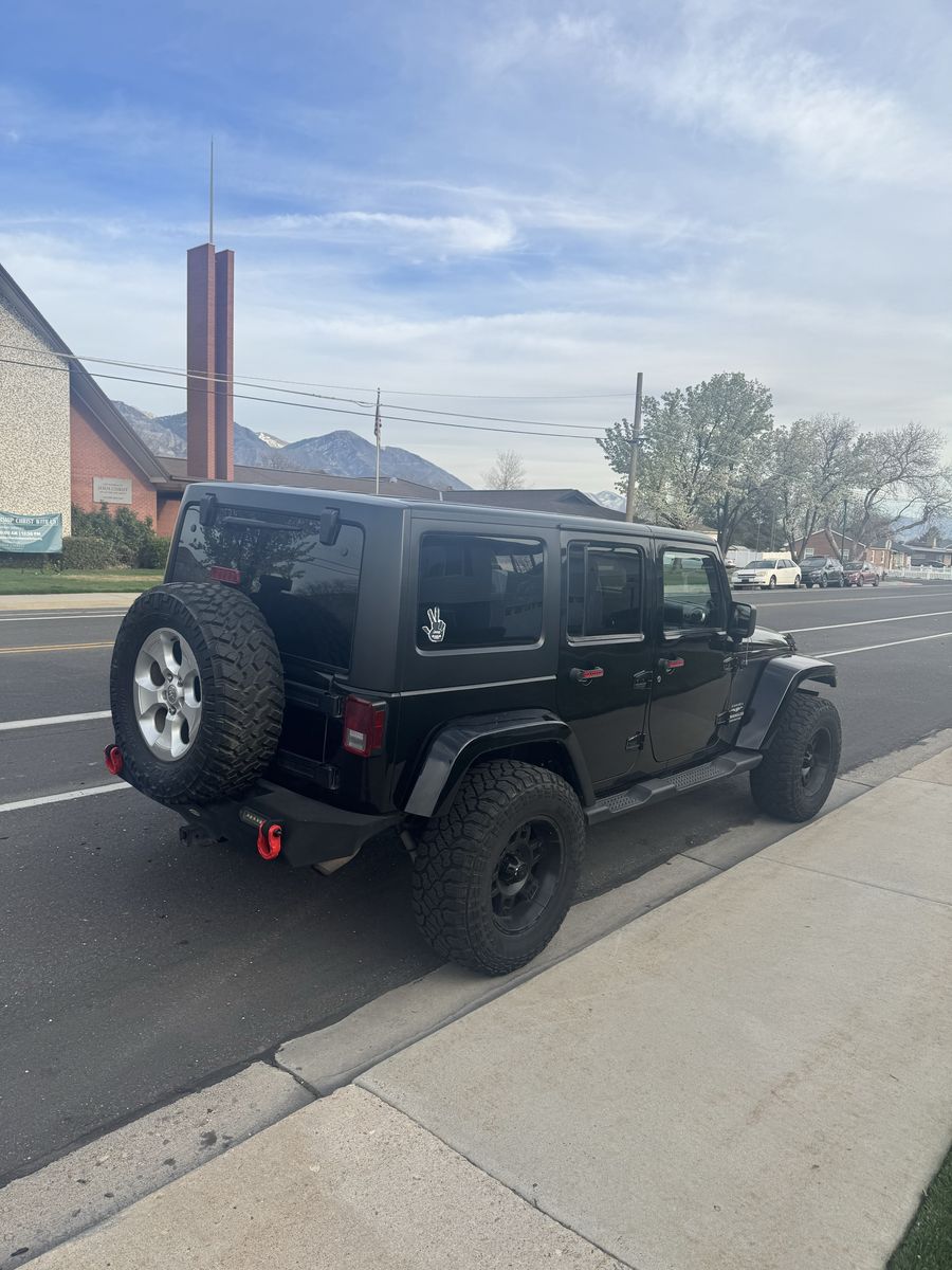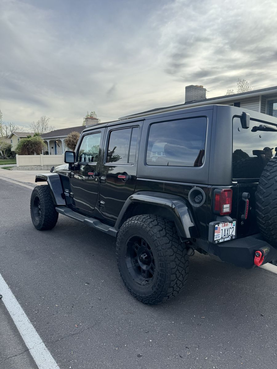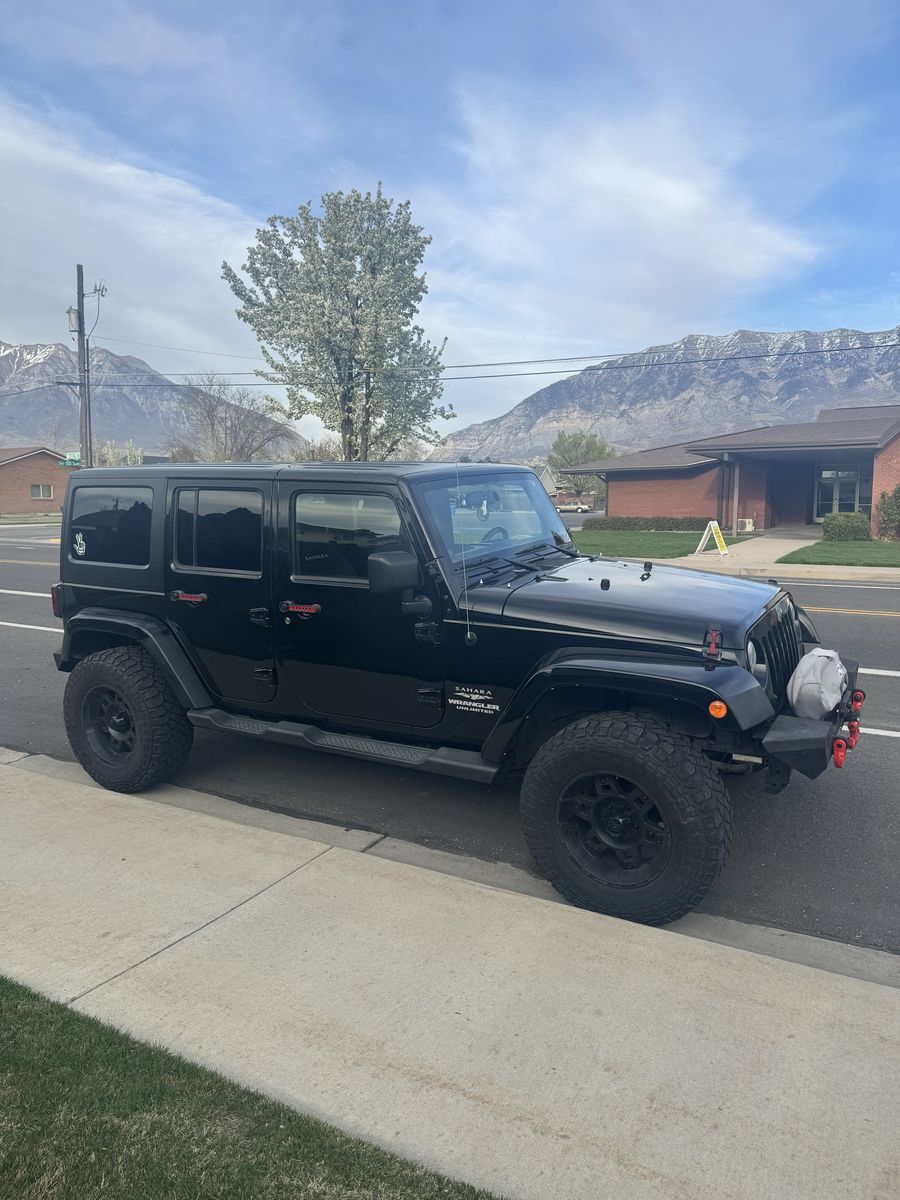 2013 Jeep Wrangler Unlimited Sahara 4x4 has power windows, locks, cruise, cold air conditioning, auto climate control, custom front bumper with winch and led lights, custom rear bumper with hitch.