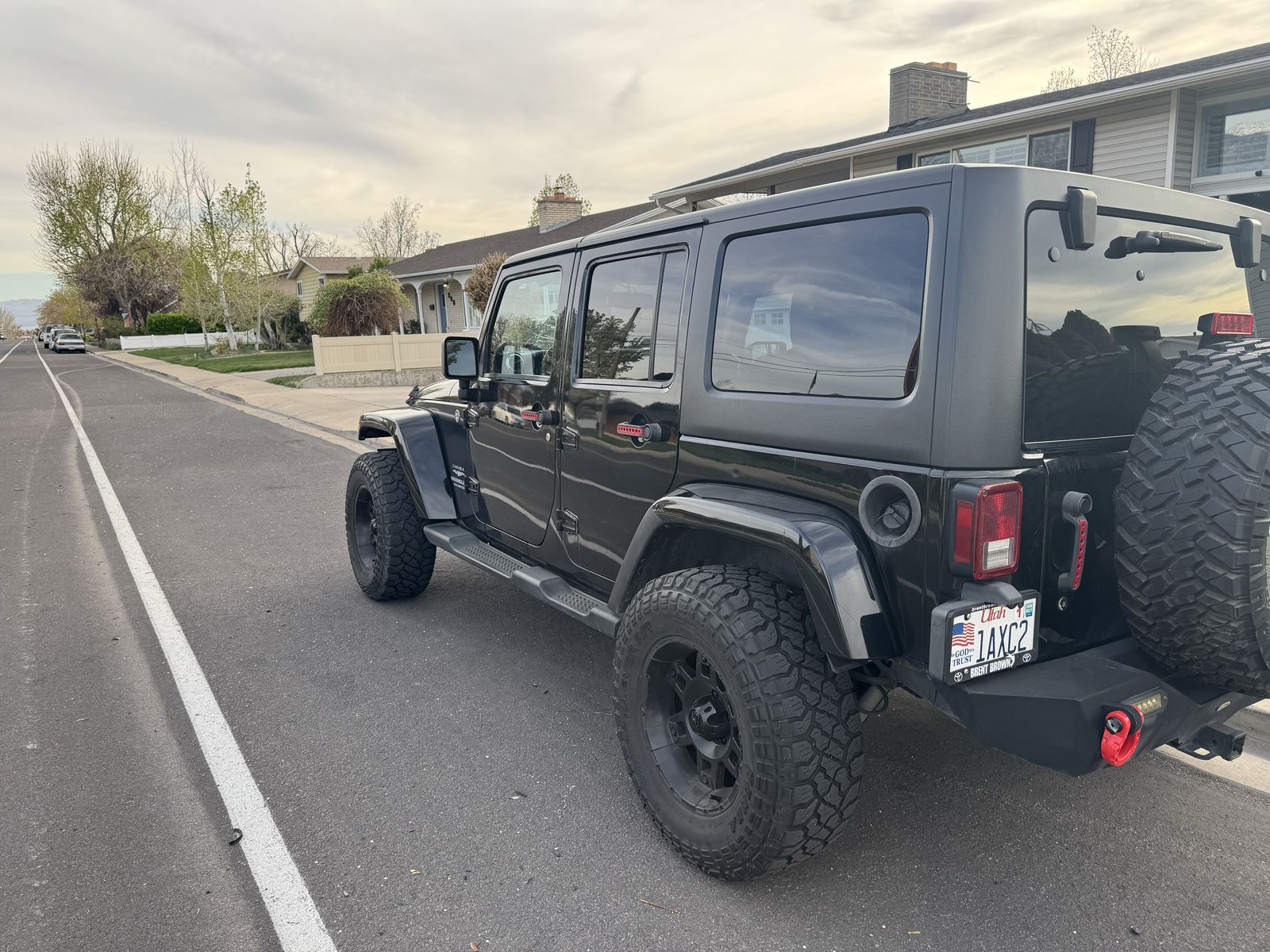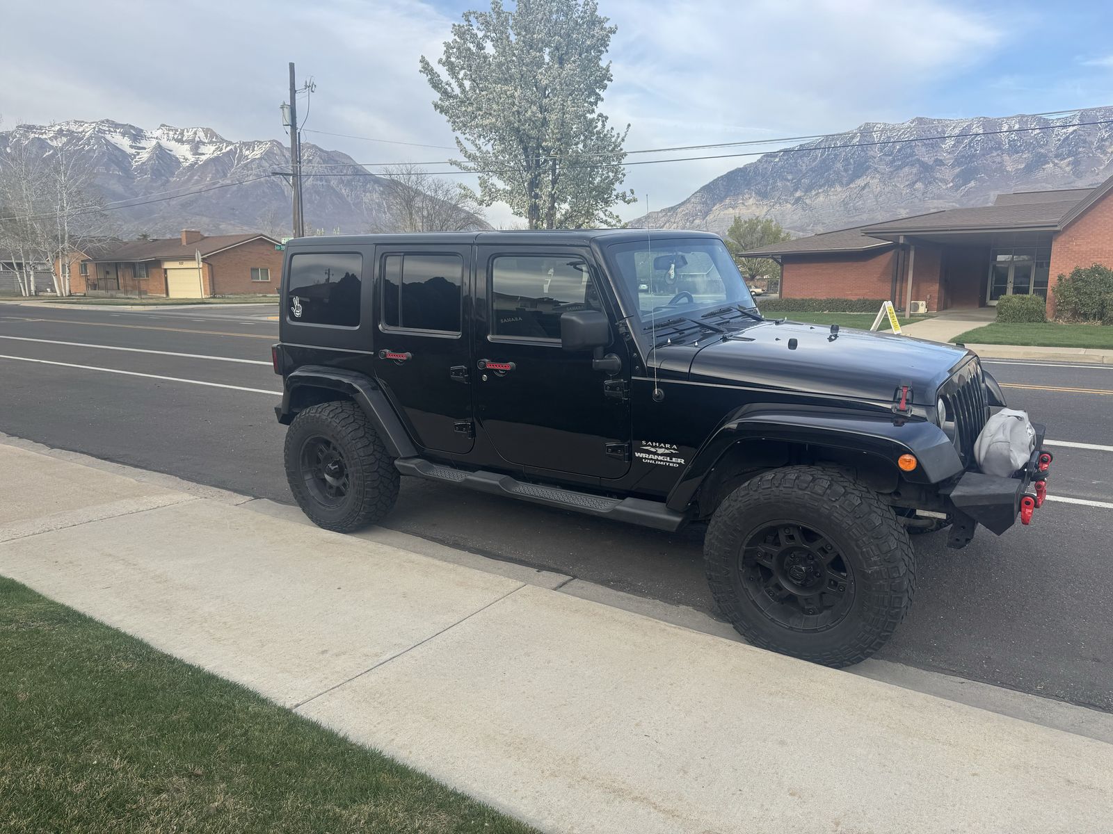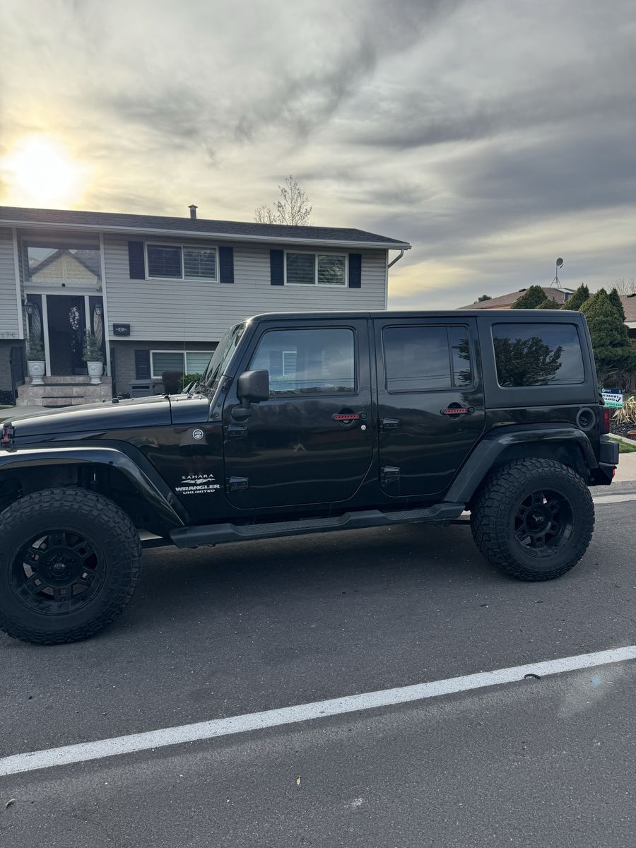2013 Jeep Wrangler Unlimited Sahara 4x4 has power windows, locks, cruise, cold air conditioning, auto climate control, custom front bumper with winch and led lights, custom rear bumper with hitch.