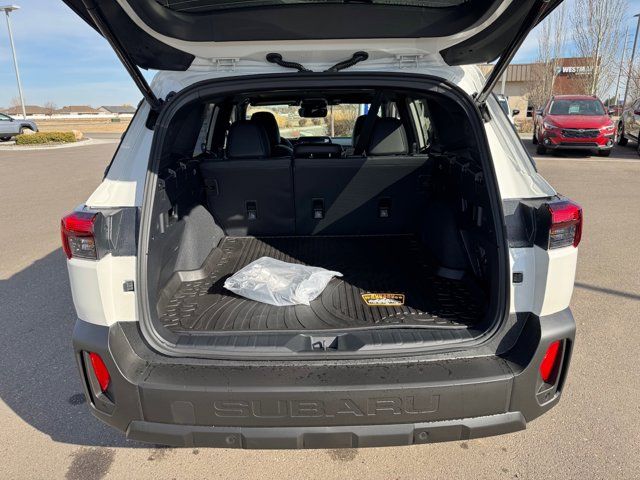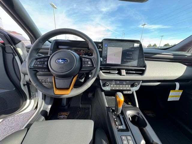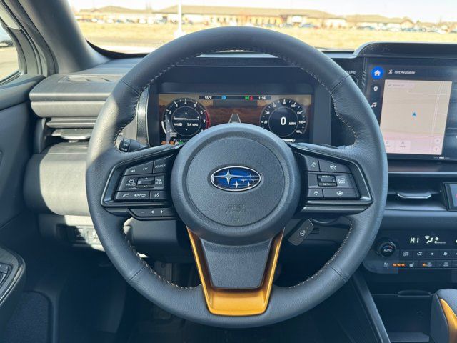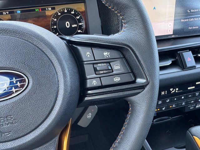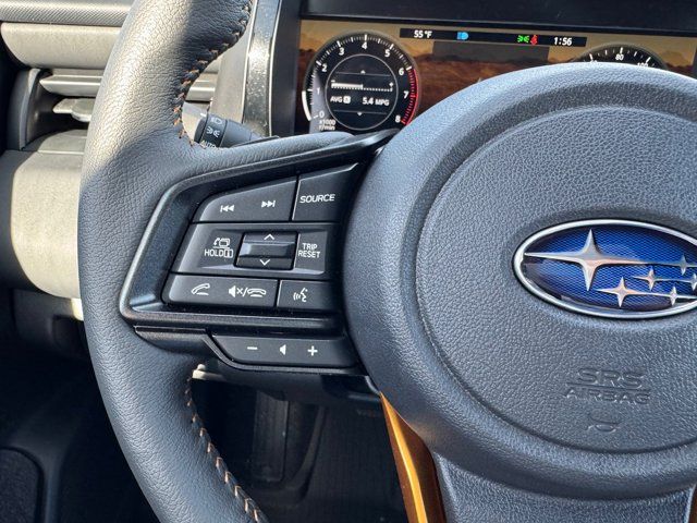 AERO CROSSBAR SET -inc: Part number SOA843X062,CRYSTAL WHITE PEARL,MOONROOF & NAV & SURROUND VIEW MONITOR & VENT SEATS -inc: Power Moonroof tilt up and internal retracting w/auto-open/close and laminated UV dark tinted glass Surround View Monitor Heated & Ventilated Front Bucket Seats 12-way power driver's seat w/4-way power lumbar and 2 position memory seat bottom cushion extension: forward length adjustment 8-way power front passenger seat height adjustable head restraints multi-purpose seatback pocket and whiplash reducing protection Radio: Subaru 12.1 Multimedia System w/Navigation AM/FM stereo HD Radio valet mode multi-touch gesture high resolution display screen voice activated controls voice activated navigation Bluetooth audio streaming and hands-free phone connectivity w/SMS text messaging (refer to subaru.com for cell phone compatibility) TomTom navigation software w/what3words smartphone integration for Android Auto and Apple CarPlay w/full screen view and wireless connection USB (CCU only) and Over The Air (OTA) audi,EXTERIOR & INTERIOR AUTO DIMMING HL MIRRORS -inc: Auto-Dimming Mirror w/Compass & HomeLink (DISC) Part number H501SAN000 and H501SFN001 bulk kit bag Auto-Dimming Exterior Mirror w/Approach Light Part number J201SAR000,SLATE BLACK NAPPA LEATHER UPHOLSTERY -inc: anodized copper stitching,Turbocharged,All Wheel Drive,Power Steering,ABS,4-Wheel Disc Brakes,Brake Assist,Brake Actuated Limited Slip Differential,Aluminum Wheels,Tires - Front All-Terrain,Tires - Rear All-Terrain,Conventional Spare Tire,Heated Mirrors,Power Mirror(s),Integrated Turn Signal Mirrors,Rear Defrost,Privacy Glass,Intermittent Wipers,Variable Speed Intermittent Wipers,Rain Sensing Wipers,Rear Spoiler,Remote Trunk Release,Power Liftgate,Power Door Locks,Daytime Running Lights,Automatic Headlights,Headlights-Auto-Leveling,LED Headlights,Fog Lamps,Automatic Highbeams,AM/FM Stereo,Premium Sound System,Satellite Radio,MP3 Capability,Bluetooth Connection,Telematics,Auxiliary Audio Input,HD Radio,WiFi Hotspot,Smart Device Integration,Requires Subscription,MP3 Capability,Steering Wheel Audio Controls,Bluetooth Connection,Power Driver Seat,Bucket Seats,Heated Front Seat(s),Driver Adjustable Lumbar,Pass-Through Rear Seat,Heated Rear Seat(s),Rear Bench Seat,Adjustable Steering Wheel,Trip Computer,Power Windows,WiFi Hotspot,Leather Steering Wheel,Heated Steering Wheel,Keyless Entry,Power Door Locks,Keyless Start,Keyless Entry,Power Door Locks,Cruise Control,Adaptive Cruise Control,Climate Control,Multi-Zone A/C,A/C,Driver Vanity Mirror,Passenger Vanity Mirror,Driver Illuminated Vanity Mirror,Passenger Illuminated Visor Mirror,Floor Mats,Cargo Shade,Keyless Start,Smart Device Integration,Power Windows,Power Door Locks,Trip Computer,Security System,Immobilizer,Cruise Control Steering Assist,Traction Control,Stability Control,Traction Control,Front Side Air Bag,Telematics,Requires Subscription,Rear Parking Aid,Blind Spot Monitor,Cross-Traffic Alert,Rear Collision Mitigation,Lane Departure Warning,Lane Keeping Assist,Lane Departure Warning,Front Collision Mitigation,Driver Monitoring,Evasion Assist,Tire Pressure Monitor,Driver Air Bag,Passenger Air Bag,Front Head Air Bag,Rear Head Air Bag,Passenger Air Bag Sensor,Knee Air Bag,Child Safety Locks,Back-Up Camera