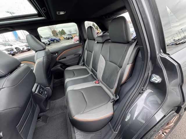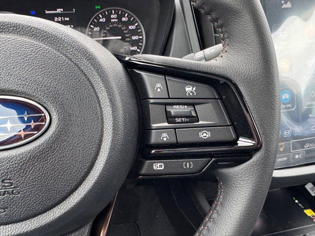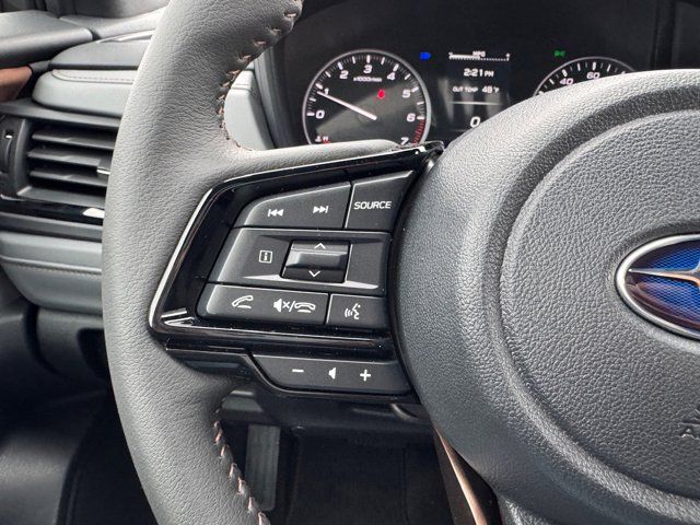 SPLASH GUARDS -inc: Part number J101SSL000,GRAY SPORT STARTEX UPHOLSTERY -inc: brown stitching,HARMAN/KARDON SPEAKER SYSTEM & PWR REAR GATE & RAB -inc: Reverse Automatic Braking (RAB) System off indicator audible warning off indicator and malfunction warning indicator harman/kardon Speaker System 11 speakers subwoofer and 576 watt equivalent maximum output amplifier Power Rear Gate automatic close and height memory hands-free foot activation sensor hand pressure sensing automatic close and illuminated close and lock switch SI-Drive Dual-Mode Engine Performance Management intelligent mode and sport sharp mode,MAGNETITE GRAY METALLIC,EXTERIOR & INTERIOR AUTO DIMMING HL MIRRORS -inc: Auto-Dimming Mirror w/Compass & HomeLink Part number H501SAN000 Auto-Dimming Exterior Mirror w/Approach Light Part number J201SFN001,All Wheel Drive,Power Steering,ABS,4-Wheel Disc Brakes,Brake Assist,Brake Actuated Limited Slip Differential,Aluminum Wheels,Tires - Front Performance,Tires - Rear Performance,Temporary Spare Tire,Sun/Moonroof,Generic Sun/Moonroof,Panoramic Roof,Heated Mirrors,Power Mirror(s),Integrated Turn Signal Mirrors,Rear Defrost,Privacy Glass,Intermittent Wipers,Variable Speed Intermittent Wipers,Rear Spoiler,Power Door Locks,Daytime Running Lights,Automatic Headlights,Headlights-Auto-Leveling,LED Headlights,Automatic Highbeams,Fog Lamps,AM/FM Stereo,Satellite Radio,MP3 Capability,Steering Wheel Audio Controls,Bluetooth Connection,Auxiliary Audio Input,HD Radio,Smart Device Integration,Requires Subscription,MP3 Capability,Bluetooth Connection,Power Driver Seat,Bucket Seats,Heated Front Seat(s),Driver Adjustable Lumbar,Pass-Through Rear Seat,Rear Bench Seat,Adjustable Steering Wheel,Trip Computer,Power Windows,WiFi Hotspot,Leather Steering Wheel,Keyless Entry,Power Door Locks,Keyless Entry,Power Door Locks,Keyless Start,Cruise Control,Adaptive Cruise Control,Climate Control,Multi-Zone A/C,A/C,Premium Synthetic Seats,Driver Vanity Mirror,Passenger Vanity Mirror,Driver Illuminated Vanity Mirror,Passenger Illuminated Visor Mirror,Floor Mats,Cargo Shade,Keyless Start,Smart Device Integration,Power Door Locks,Power Windows,Trip Computer,Security System,Immobilizer,Cruise Control Steering Assist,Traction Control,Stability Control,Traction Control,Front Side Air Bag,Front Collision Mitigation,Driver Monitoring,Telematics,Requires Subscription,Blind Spot Monitor,Cross-Traffic Alert,Lane Departure Warning,Lane Keeping Assist,Lane Departure Warning,Evasion Assist,Tire Pressure Monitor,Driver Air Bag,Passenger Air Bag,Front Head Air Bag,Rear Head Air Bag,Passenger Air Bag Sensor,Knee Air Bag,Child Safety Locks,Back-Up Camera
