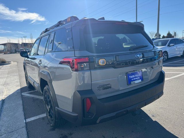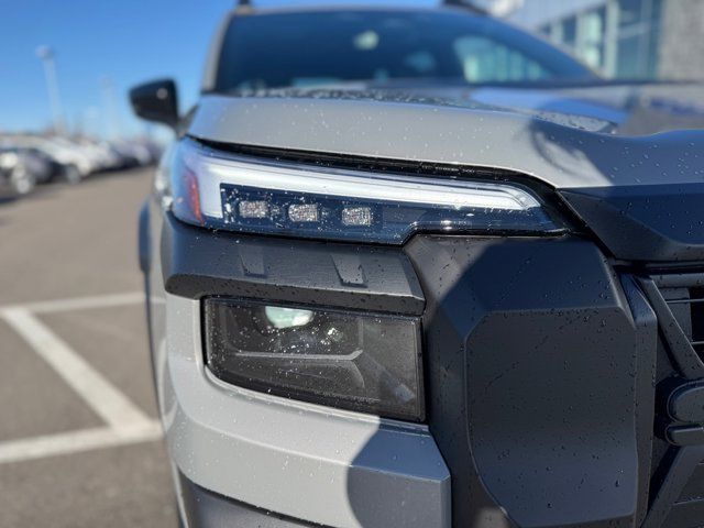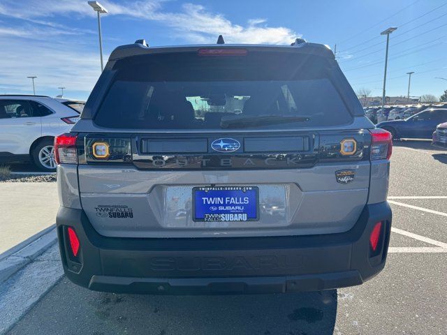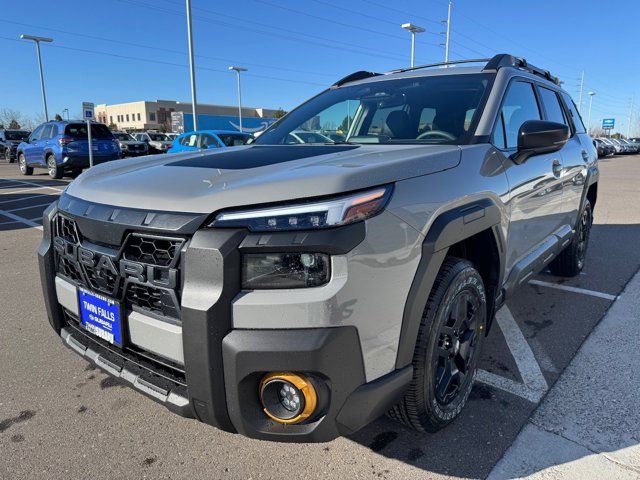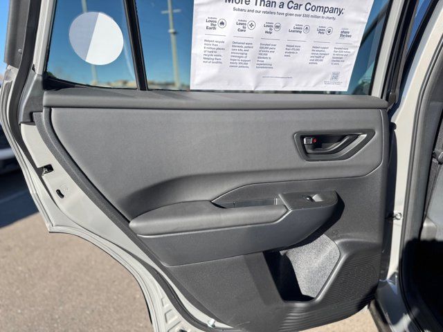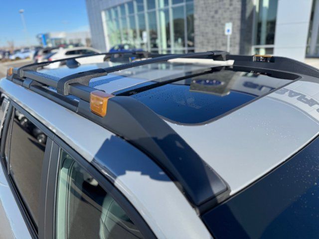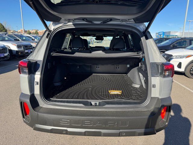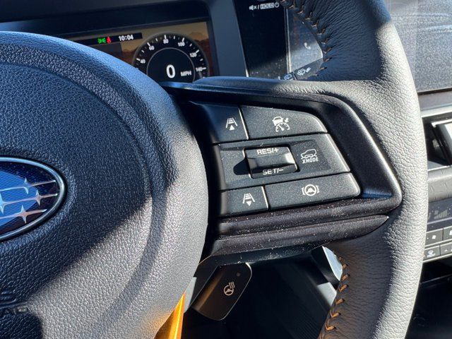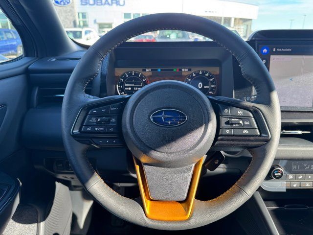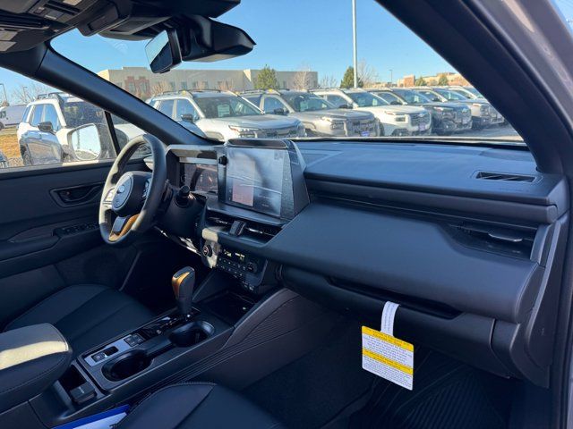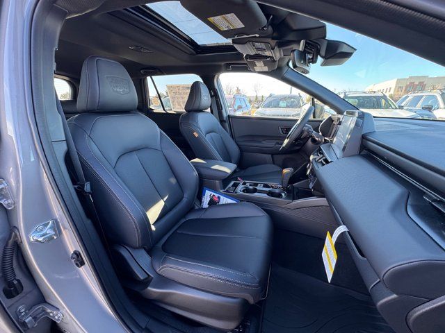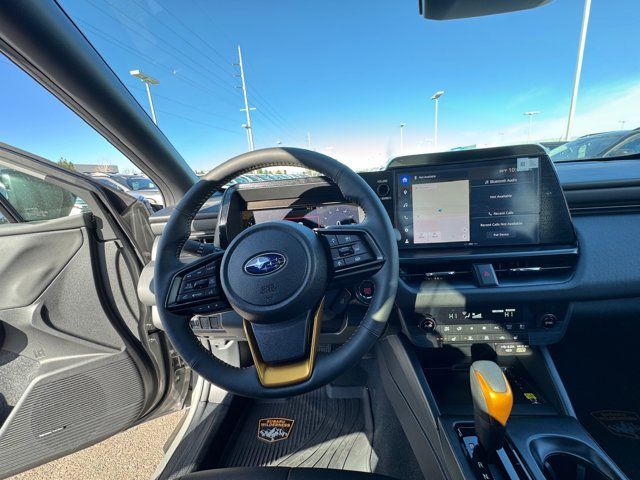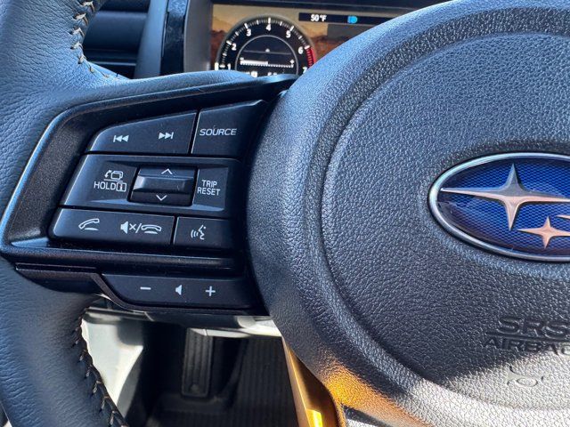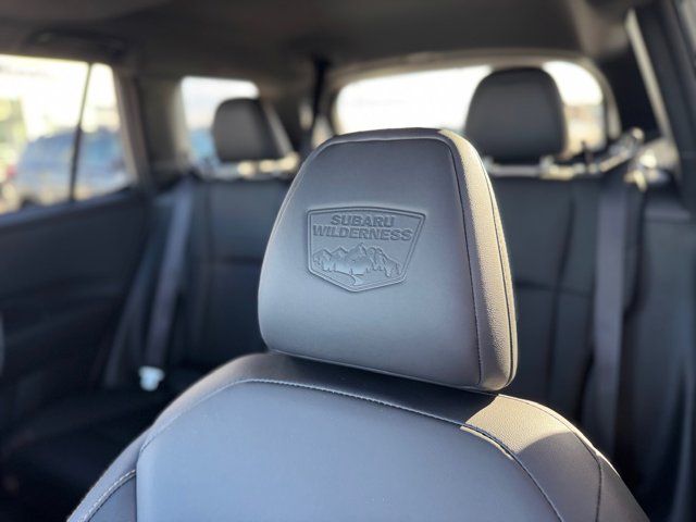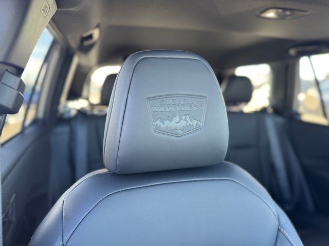 EXTERIOR/INTERIOR AUTO DIMMING HL MIRRORS -inc: Auto-Dimming Exterior Mirror w/Approach Light Part number J201SAR000 Auto-Dimming Mirror w/Compass & HomeLink Part number H501SFN001 and H501SAN000,MOONROOF & NAVIGATION & SURROUND VIEW MONITOR -inc: Power Moonroof tilt up and internal retracting w/auto-open/close and laminated UV dark tinted glass Surround View Monitor Radio: Subaru 12.1 Multimedia System w/Navigation AM/FM stereo HD Radio valet mode multi-touch gesture high resolution display screen voice activated controls voice activated navigation Bluetooth audio streaming and hands-free phone connectivity w/SMS text messaging (refer to subaru.com for cell phone compatibility) TomTom navigation software w/what3words smartphone integration for Android Auto and Apple CarPlay w/full screen view and wireless connection USB (CCU only) and Over The Air (OTA) audio system update audio system hands-free phone and voice command talk steering wheel control switches 576 watt harman/kardon surround sound system w/12 speakers and 1 subwoofer illuminated USB-A and USB-C input/charge ports and SiriusXM w/360L (4 months free trial included/subscription required after),RIVER ROCK PEARL,AERO CROSSBAR SET -inc: Part number SOA843X062,BLACK STARTEX-TRIMMED UPHOLSTERY -inc: copper stitching and head restraints w/embossed Subaru Wilderness logo,SPLASH GUARDS -inc: Part number J101SAR300,Turbocharged,All Wheel Drive,Power Steering,ABS,4-Wheel Disc Brakes,Brake Assist,Brake Actuated Limited Slip Differential,Aluminum Wheels,Tires - Front All-Terrain,Tires - Rear All-Terrain,Conventional Spare Tire,Heated Mirrors,Power Mirror(s),Integrated Turn Signal Mirrors,Rear Defrost,Privacy Glass,Intermittent Wipers,Variable Speed Intermittent Wipers,Rain Sensing Wipers,Rear Spoiler,Remote Trunk Release,Power Liftgate,Power Door Locks,Daytime Running Lights,Automatic Headlights,Headlights-Auto-Leveling,LED Headlights,Fog Lamps,Automatic Highbeams,AM/FM Stereo,Premium Sound System,Satellite Radio,MP3 Capability,Bluetooth Connection,Telematics,Auxiliary Audio Input,HD Radio,WiFi Hotspot,Smart Device Integration,Requires Subscription,MP3 Capability,Steering Wheel Audio Controls,Bluetooth Connection,Power Driver Seat,Bucket Seats,Heated Front Seat(s),Driver Adjustable Lumbar,Pass-Through Rear Seat,Heated Rear Seat(s),Rear Bench Seat,Adjustable Steering Wheel,Trip Computer,Power Windows,WiFi Hotspot,Leather Steering Wheel,Heated Steering Wheel,Keyless Entry,Power Door Locks,Keyless Start,Keyless Entry,Power Door Locks,Cruise Control,Adaptive Cruise Control,Climate Control,Multi-Zone A/C,A/C,Premium Synthetic Seats,Driver Vanity Mirror,Passenger Vanity Mirror,Driver Illuminated Vanity Mirror,Passenger Illuminated Visor Mirror,Floor Mats,Cargo Shade,Keyless Start,Smart Device Integration,Power Windows,Power Door Locks,Trip Computer,Security System,Immobilizer,Cruise Control Steering Assist,Traction Control,Stability Control,Traction Control,Front Side Air Bag,Telematics,Requires Subscription,Rear Parking Aid,Blind Spot Monitor,Cross-Traffic Alert,Rear Collision Mitigation,Lane Departure Warning,Lane Keeping Assist,Lane Departure Warning,Front Collision Mitigation,Driver Monitoring,Evasion Assist,Tire Pressure Monitor,Driver Air Bag,Passenger Air Bag,Front Head Air Bag,Rear Head Air Bag,Passenger Air Bag Sensor,Knee Air Bag,Child Safety Locks,Back-Up Camera
