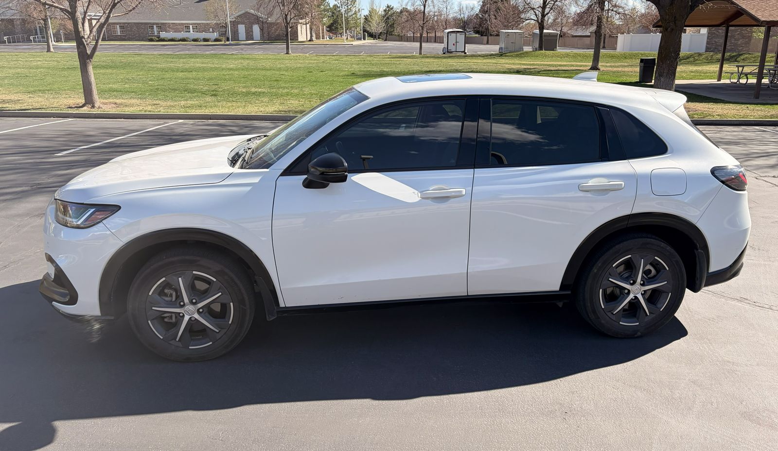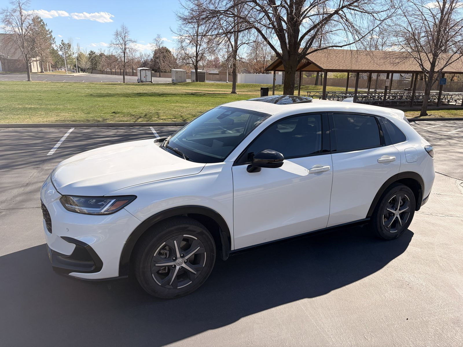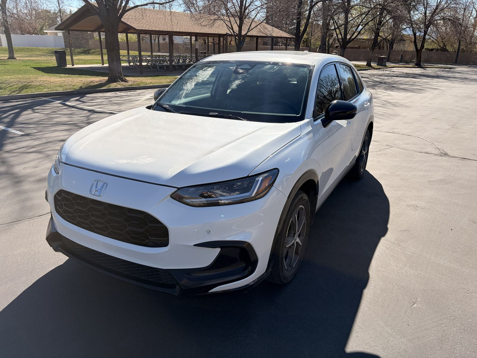 The 2023 Honda HR-V EX-L includes a 158-horsepower, 2.0-liter four-cylinder engine, leather-trimmed seats, a 9-inch touchscreen with wireless Apple CarPlay and Android Auto, and a wireless phone charger. Key standard features for the EX-L trim include heated front seats, 17-inch alloy wheels, and the Honda Sensing® suite of driver-assistance technologies.