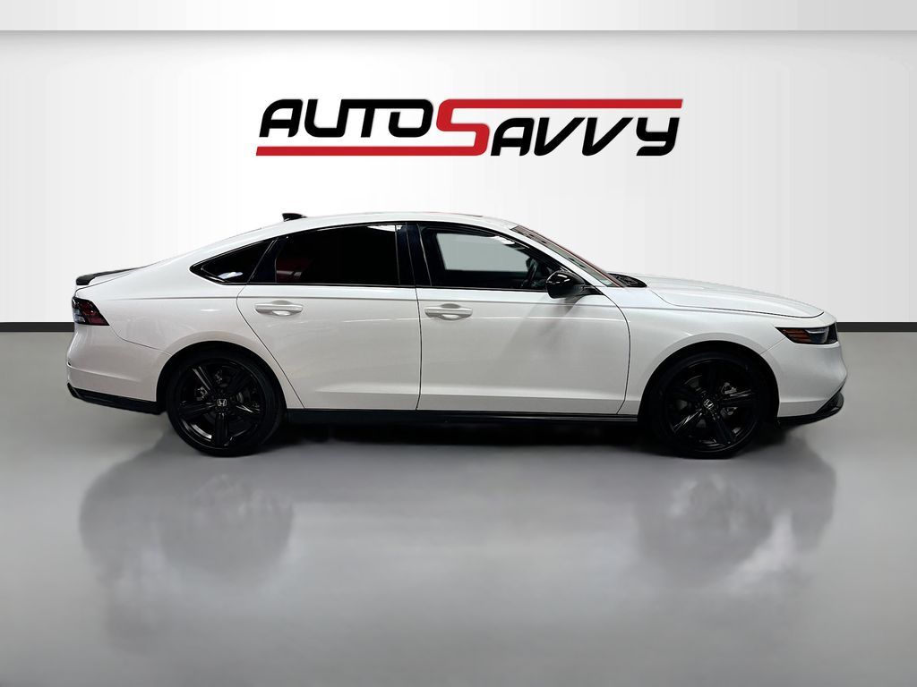 Discover the 2025 Honda Accord Hybrid Sport at AutoSavvy Woods Cross, a sleek and efficient sedan designed for the modern driver. With a low mileage of just 13,000, this vehicle promises longevity and reliability. The Accord Hybrid is powered by a 2L I-4 gasoline engine with 146 horsepower, delivering an impressive 46 MPG in the city and 41 MPG on the highway. Its Platinum White Pearl exterior is complemented by a sophisticated black interior featuring cloth front seat upholstery. Enjoy premium features like a 12.3-inch touchscreen display, Apple CarPlay, Android Auto, and a wireless charging pad, ensuring a connected and convenient driving experience. The vehicle also boasts a sunroof, heated front seats, and dual-zone climate control for added comfort. The current status of the title is branded, reflecting AutoSavvy's commitment to transparency and quality. This 2025 Honda Accord Hybrid Sport is Savvy Certified, having undergone a comprehensive inspection to ensure top-tier performance and reliability. Enjoy peace of mind with our 4-month/4,500 Mile Warranty, providing added security for your investment. Visit AutoSavvy Woods Cross today to experience the perfect blend of efficiency, technology, and style that the 2025 Honda Accord Hybrid Sport offers. Discover the AutoSavvy difference, where every vehicle is crafted to exceed your expectations.