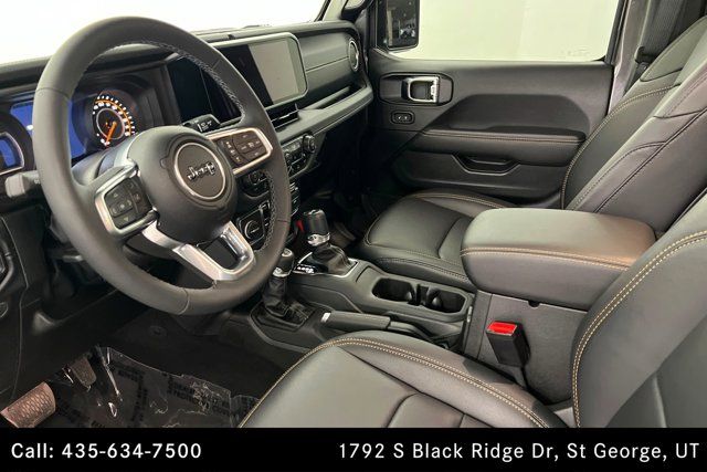 SIDE STEPS,GRANITE CRYSTAL METALLIC CLEARCOAT,WHEELS: 18 X 7.5 MACHINE/PAINTED GRAY (STD),MOPAR ALL-WEATHER FLOOR MATS,ENGINE: 2.0L I4 DOHC DI TURBO W/ESS (STD),TRANSMISSION: 8-SPEED AUTOMATIC (850RE) (STD),QUICK ORDER PACKAGE 22G SAHARA -inc: Engine: 2.0L I4 DOHC DI Turbo w/ESS Transmission: 8-Speed Automatic (850RE),BLACK MCKINLEY TRIMMED SEATS -inc: Hard Seat Back Leather Wrapped Shift Knob Power Adjust 8-Way Driver Seat Power 4-Way Passenger Lumbar Adjust Power Adjust 8-Way Front Passenger Seat Leather Wrapped Park Brake Handle Power 4-Way Driver Lumbar Adjust,SAHARA POPULAR EQUIPMENT GROUP -inc: SiriusXM Radio Service Blind Spot & Cross Path Detection Rear View Auto Dim Mirror For More Info Call 800-643-2112 Side Steps Integrated Voice Command w/Bluetooth GPS Navigation SiriusXM w/360L Connected Travel & Traffic Services 12.3 Touchscreen Display Alpine Premium Audio System Integrated Off-Road Camera Disassociated Touchscreen Display HD Radio Radio: Uconnect 5 Nav w/12.3 Display #1 Seat Foam Cushion Auto High Beam Headlamp Control Universal Garage Door Opener ParkSense Rear Park Assist System,BODY COLOR 3-PIECE HARD TOP -inc: Freedom Panel Storage Bag Rear Window Defroster Rear Window Wiper/Washer,TIRES: 255/70R18 ALL SEASON (STD),RADIO: UCONNECT 5 NAV W/12.3 DISPLAY,ALPINE PREMIUM AUDIO SYSTEM,FRONT LICENSE PLATE BRACKET,Turbocharged,Four Wheel Drive,Power Steering,ABS,4-Wheel Disc Brakes,Brake Assist,Brake Actuated Limited Slip Differential,Aluminum Wheels,Conventional Spare Tire,Tow Hooks,Tow Hooks,Heated Mirrors,Power Mirror(s),Privacy Glass,Intermittent Wipers,Variable Speed Intermittent Wipers,Rollover Protection Bars,Convertible Soft Top,Power Door Locks,Daytime Running Lights,Automatic Headlights,LED Headlights,Fog Lamps,AM/FM Stereo,Satellite Radio,Bluetooth Connection,Requires Subscription,MP3 Capability,Steering Wheel Audio Controls,Auxiliary Audio Input,Bluetooth Connection,Driver Adjustable Lumbar,Heated Front Seat(s),Driver Adjustable Lumbar,Pass-Through Rear Seat,Rear Bench Seat,Adjustable Steering Wheel,Trip Computer,Power Windows,Heated Steering Wheel,Keyless Entry,Power Door Locks,Keyless Start,Keyless Entry,Power Door Locks,Cruise Control,Adaptive Cruise Control,Climate Control,Multi-Zone A/C,A/C,Bucket Seats,Driver Vanity Mirror,Passenger Vanity Mirror,Driver Illuminated Vanity Mirror,Passenger Illuminated Visor Mirror,Floor Mats,Smart Device Integration,Remote Engine Start,Keyless Start,Remote Engine Start,Smart Device Integration,Requires Subscription,Smart Device Integration,WiFi Hotspot,Smart Device Integration,Power Windows,Power Door Locks,Trip Computer,Security System,Immobilizer,Traction Control,Stability Control,Traction Control,Front Side Air Bag,Telematics,Requires Subscription,Front Collision Mitigation,Tire Pressure Monitor,Driver Air Bag,Passenger Air Bag,Front Head Air Bag,Rear Head Air Bag,Passenger Air Bag Sensor,Child Safety Locks,Back-Up Camera