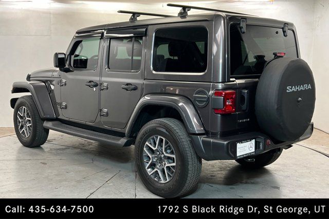 This 2025 Jeep Wrangler Sahara is the perfect combination of iconic Jeep styling, everyday comfort, and legendary off-road capability. Designed for those who want both rugged performance and refined features, the Sahara stands out as one of the most well-rounded trims in the Wrangler lineup.Under the hood, it comes equipped with a responsive 2.0L turbocharged engine producing 270 horsepower and 295 lb-ft of torque, paired with an 8-speed automatic transmission and Jeep’s proven 4x4 system. Whether you're tackling trails or cruising on the highway, it delivers confident performance and versatility with up to 3,500 lbs of towing capacity.Odometer is 16219 miles below market average!Clean CARFAX.Here at Mercedes-Benz of St. George we take pride in our pre-owned vehicles, from Certified Mercedes-Benz to any other manufacture car! We keep the standard high while doing full inspections and fresh services on every single vehicle we have. Our customer needs come first, while also using advanced software to ensure you are getting the best value. Mercedes-Benz of St. George pre-owned vehicles are not only safe, but are top notch and mechanically ready to hit the road. The price for this vehicle as equipped excludes, License, Title, Registration Fees, State or Local Taxes. Please give us a call to schedule a test drive, or make an appointment with one of our Sales Consultants.