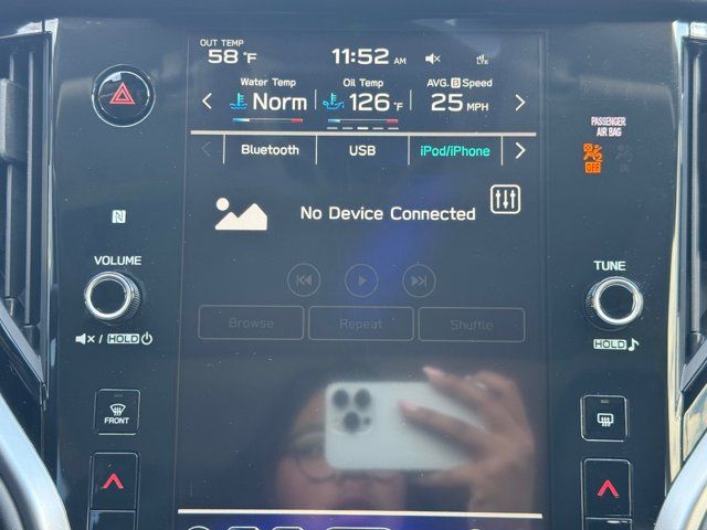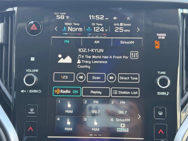 SPLASH GUARDS -inc: Part number J101SAN100,COSMIC BLUE PEARL,POWER MOONROOF & NAVIGATION & RAB -inc: Power Moonroof Reverse Automatic Braking (RAB) System,GRAY STARTEX-TRIMMED UPHOLSTERY -inc: green stitching,REAR SEAT BACK PROTECTOR -inc: Part number J501SAN222,CARGO NET -inc: Part number F551SAN000,Turbocharged,All Wheel Drive,Power Steering,ABS,4-Wheel Disc Brakes,Brake Assist,Brake Actuated Limited Slip Differential,Aluminum Wheels,Tires - Front All-Season,Tires - Rear All-Season,Conventional Spare Tire,Sun/Moonroof,Generic Sun/Moonroof,Heated Mirrors,Power Mirror(s),Integrated Turn Signal Mirrors,Rear Defrost,Privacy Glass,Intermittent Wipers,Variable Speed Intermittent Wipers,Rear Spoiler,Remote Trunk Release,Power Liftgate,Power Door Locks,Luggage Rack,Daytime Running Lights,Automatic Headlights,Headlights-Auto-Leveling,LED Headlights,Fog Lamps,Automatic Highbeams,AM/FM Stereo,Navigation System,Satellite Radio,MP3 Capability,Bluetooth Connection,Telematics,Auxiliary Audio Input,HD Radio,Smart Device Integration,Requires Subscription,MP3 Capability,Steering Wheel Audio Controls,Bluetooth Connection,Power Driver Seat,Power Passenger Seat,Bucket Seats,Heated Front Seat(s),Driver Adjustable Lumbar,Pass-Through Rear Seat,Heated Rear Seat(s),Rear Bench Seat,Adjustable Steering Wheel,Trip Computer,Power Windows,Telematics,Requires Subscription,Leather Steering Wheel,Keyless Entry,Power Door Locks,Keyless Entry,Power Door Locks,Keyless Start,Hands-Free Liftgate,Universal Garage Door Opener,Cruise Control,Adaptive Cruise Control,Climate Control,Multi-Zone A/C,A/C,Premium Synthetic Seats,Driver Vanity Mirror,Passenger Vanity Mirror,Driver Illuminated Vanity Mirror,Passenger Illuminated Visor Mirror,Auto-Dimming Rearview Mirror,Floor Mats,Cargo Shade,Keyless Start,Smart Device Integration,Smart Device Integration,Requires Subscription,Navigation System,Power Door Locks,Power Windows,Trip Computer,Security System,Immobilizer,Cruise Control Steering Assist,Traction Control,Stability Control,Traction Control,Front Side Air Bag,Lane Departure Warning,Lane Keeping Assist,Lane Departure Warning,Front Collision Mitigation,Driver Monitoring,Telematics,Requires Subscription,Blind Spot Monitor,Evasion Assist,Cross-Traffic Alert,Rear Collision Mitigation,Tire Pressure Monitor,Driver Air Bag,Passenger Air Bag,Front Head Air Bag,Rear Head Air Bag,Passenger Air Bag Sensor,Knee Air Bag,Child Safety Locks,Back-Up Camera