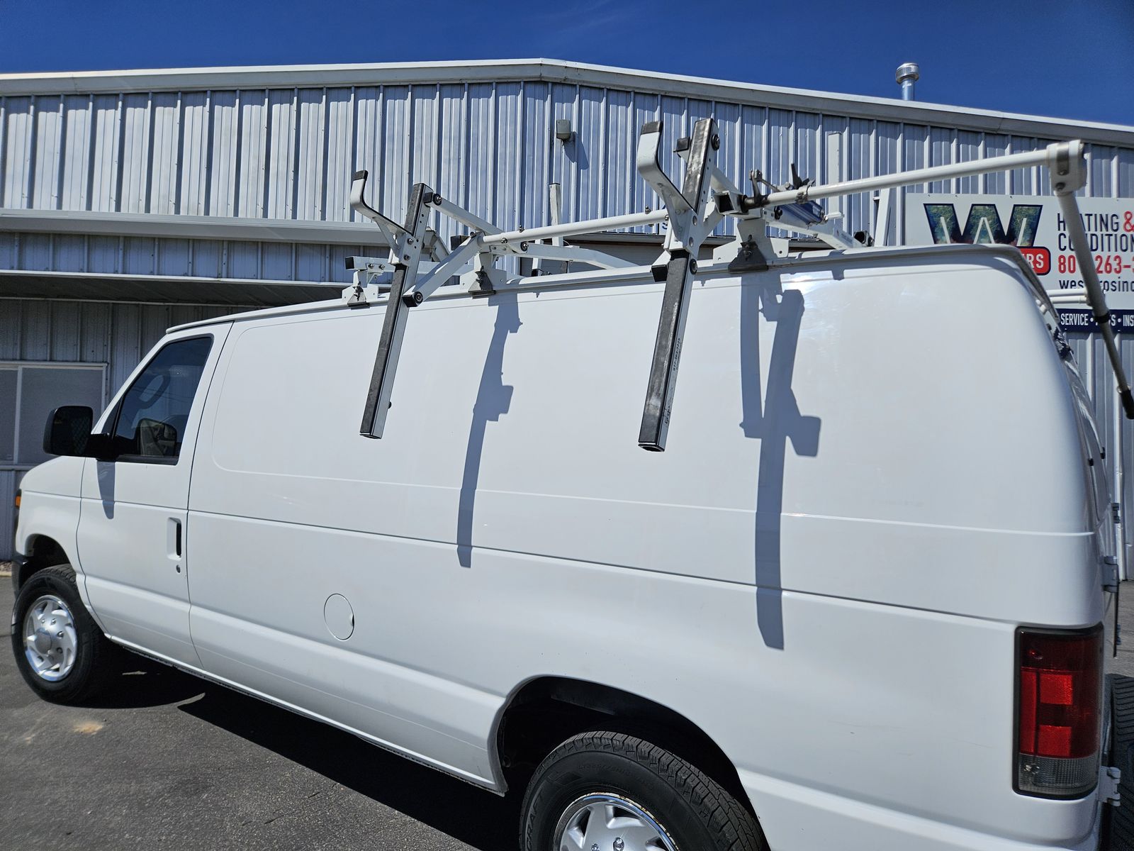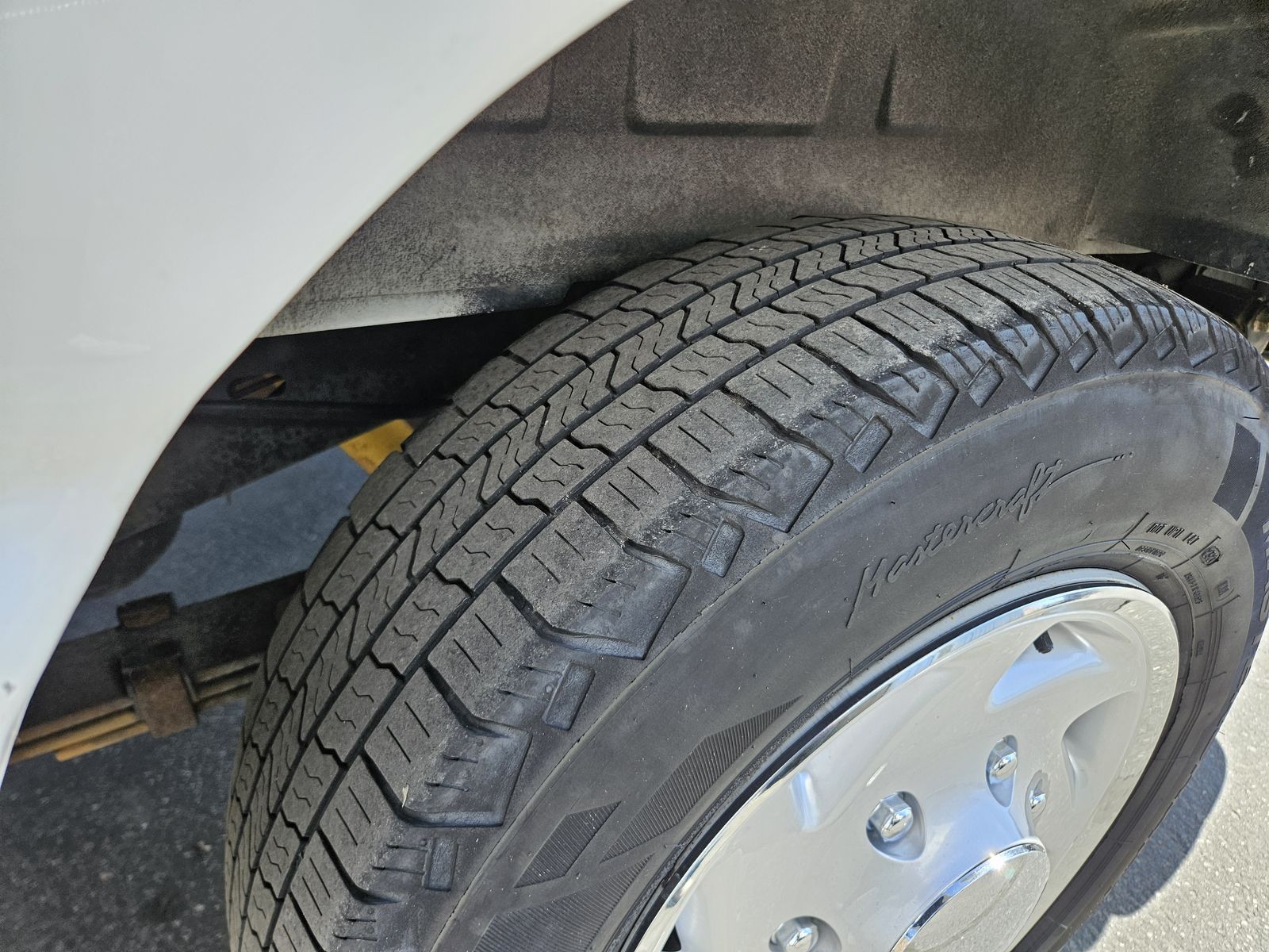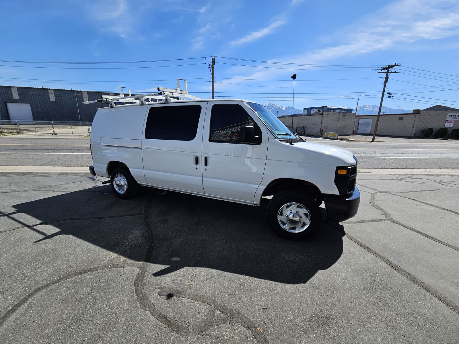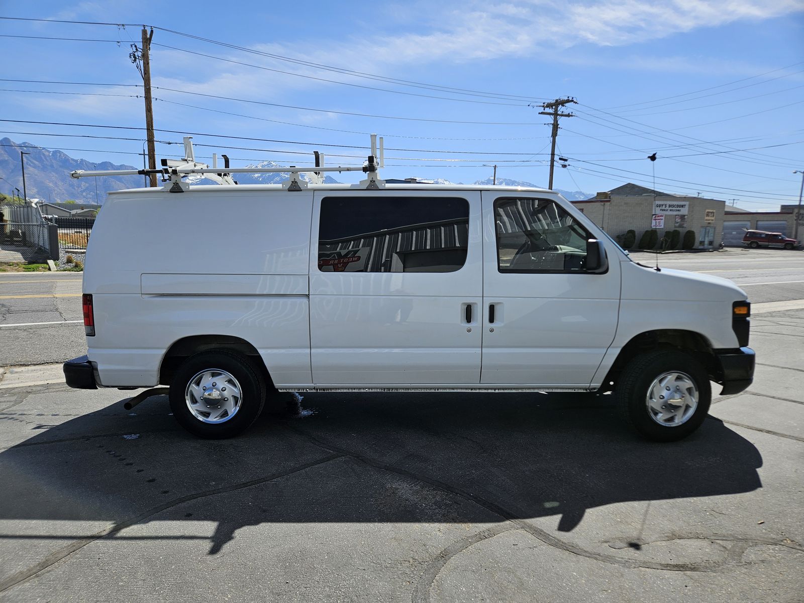 Good tires, shelving and partition, new battery, tinted windows, trailer hitch,