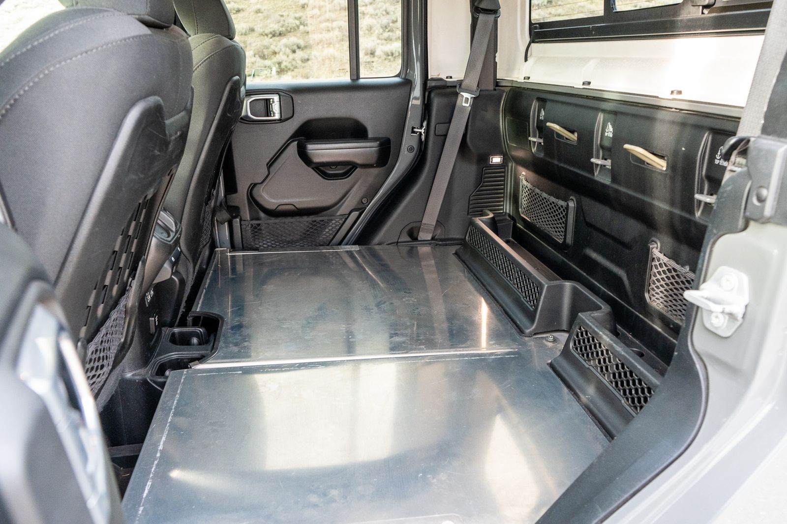 Rear seats have been removed to create a huge gear/storage area—perfect for tools, travel, or four legged adventure companions. The factory rear seats are included with the sale, giving you the flexibility to easily convert back to full passenger seating if desired.