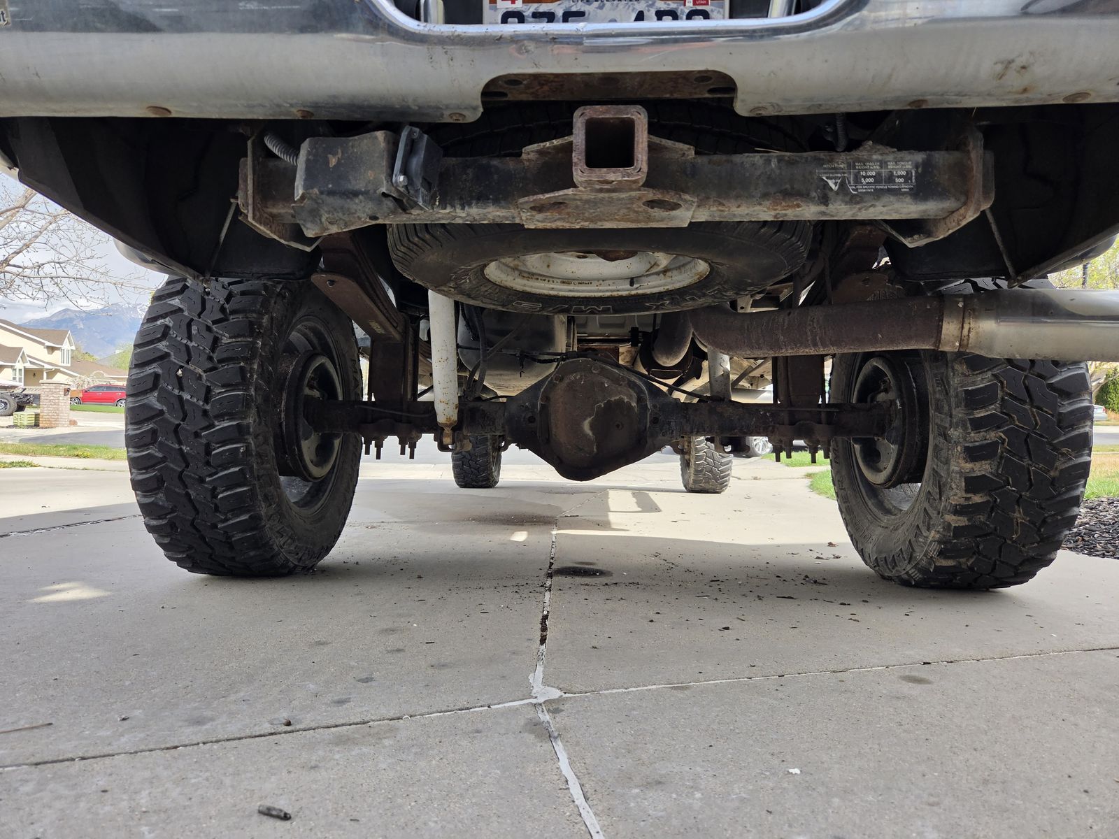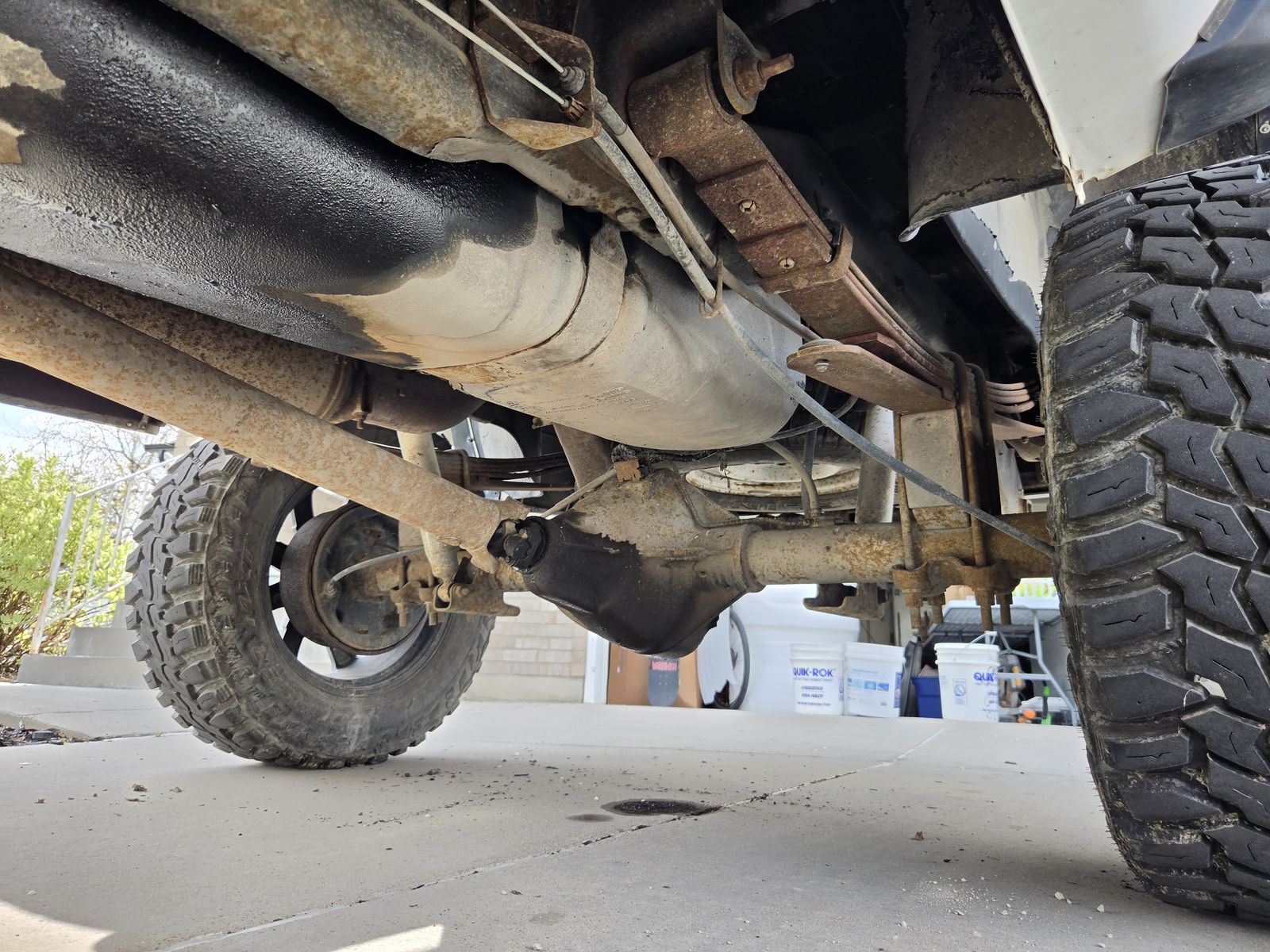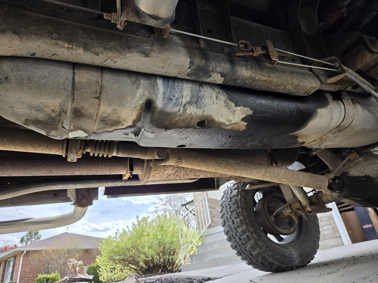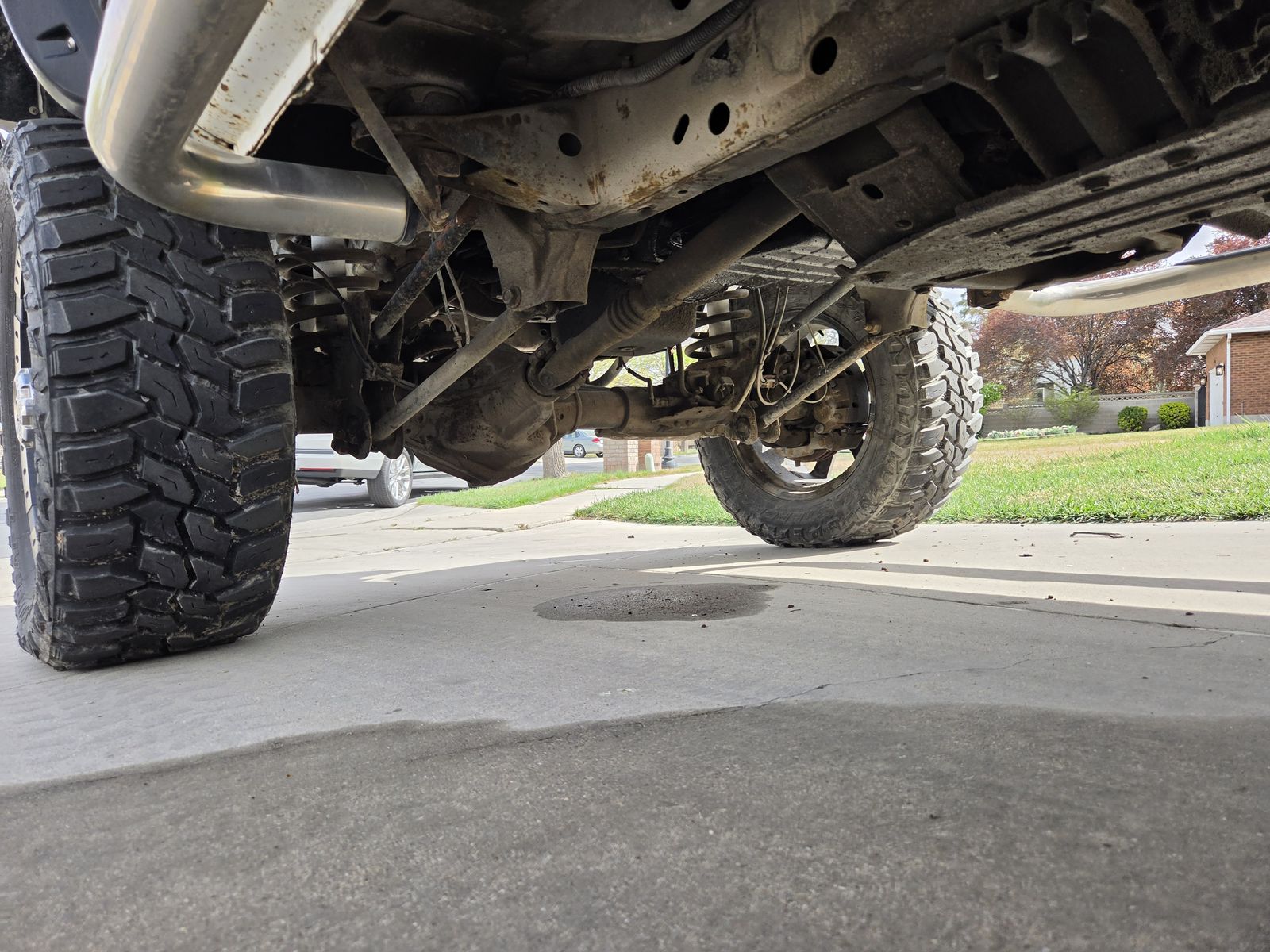 Leaking diesel, oil, and differential fluid.