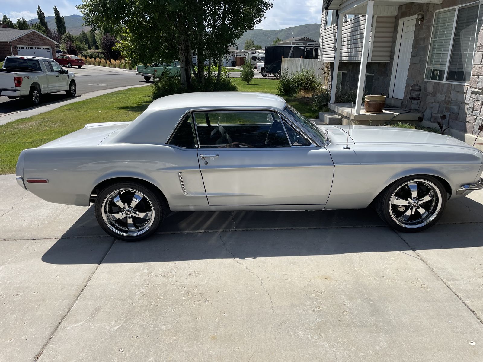 1968 Mustang California car . I purchased 22 years ago was a 6 cylinder car built in San Jose. I got the car with a 1990 5.0 liter with 60000 miles on it. Last owner put in a cam, dual exhaust, back dated with edelbrock intake. I had car stripped and painted.Installed new radiator pump, hose , fuel pump, fuel line, fuel sending unit , power front disc brakes, 5 lug rear 8 inch axle with new brakes,Wheel and tires, Carpet, seat covers , head liner, dash pad, dash bezel , custom auto sound radio with hands free and blue tooth , heater core , rear shocks, front and rear bumpers, head lights , windshield and all new washers system, power steering ramp and hose, battery, electric fan, blower motor. Edelbrock carb , trans out of 1966 GT. I know there more I am forgetting . I only got car done last year. $25000.00