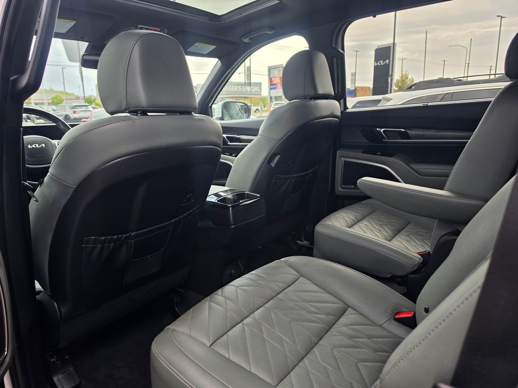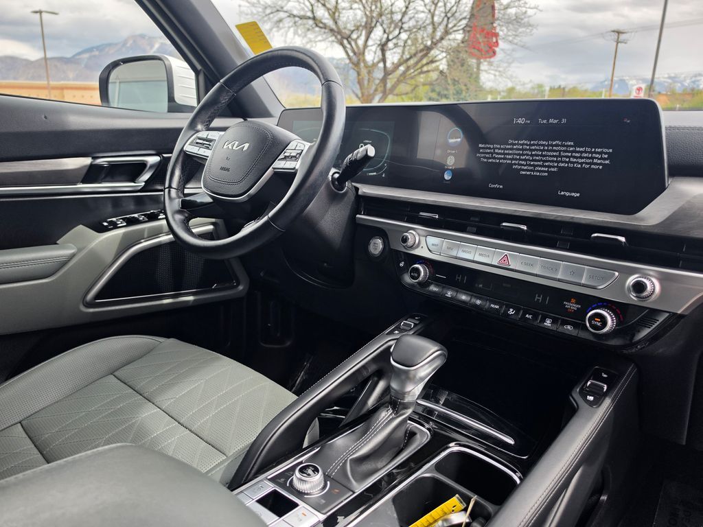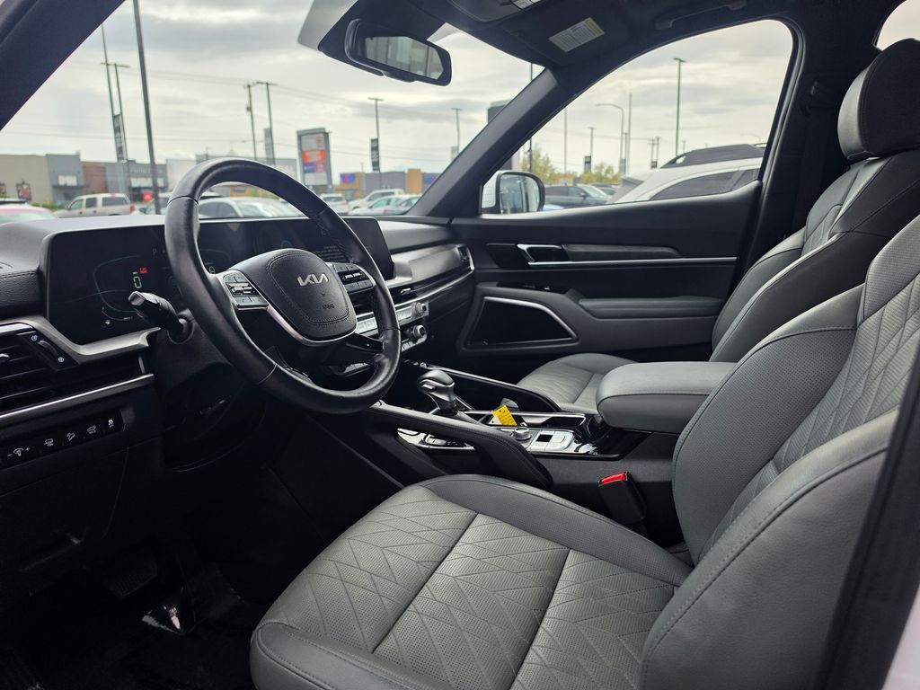 CARFAX One-Owner. Clean CARFAX. Certified. Glacial White Pearl 2024 Kia Telluride EX X-Line AWD 8-Speed Automatic 3.8L V6 DOHC Kia Certified Pre-Owned Certified, 3.648 Axle Ratio, 3rd row seats: split-bench, 4-Wheel Disc Brakes, 6 Speakers, ABS brakes, Air Conditioning, Alloy wheels, AM/FM radio: SiriusXM, Apple CarPlay & Android Auto, Auto High-beam Headlights, Auto-dimming Rear-View mirror, Automatic temperature control, Brake assist, Bumpers: body-color, Carpet Floor Mats, Compass, Delay-off headlights, Driver door bin, Driver vanity mirror, Dual front impact airbags, Dual front side impact airbags, Electronic Stability Control, Emergency communication system: 911 Connect, Exterior Parking Camera Rear, Four wheel independent suspension, Front anti-roll bar, Front Bucket Seats, Front Center Armrest, Front dual zone A/C, Front reading lights, Fully automatic headlights, Heated & Ventilated Front Bucket Seats, Heated door mirrors, Heated front seats, Heated steering wheel, Illuminated entry, Knee airbag, Leather Seat Trim, Leather Shift Knob, Leather steering wheel, Low tire pressure warning, Navigation System, Occupant sensing airbag, Outside temperature display, Overhead airbag, Overhead console, Panic alarm, Passenger door bin, Passenger vanity mirror, Power door mirrors, Power driver seat, Power Liftgate, Power moonroof, Power passenger seat, Power steering, Power windows, Radio data system, Radio: AM/FM Display Audio System, Rear air conditioning, Rear anti-roll bar, Rear audio controls, Rear reading lights, Rear side impact airbag, Rear window defroster, Rear window wiper, Reclining 3rd row seat, Remote keyless entry, Roof rack: rails only, Security system, Smart Key w/ Push Button and Remote Start, Speed control, Speed-sensing steering, Split folding rear seat, Spoiler, Steering wheel mounted audio controls, Tachometer, Telescoping steering wheel, Tilt steering wheel, Traction control, Trip computer, Turn signal indicator mirrors, Variably intermittent wipers, Ventilated front seats.